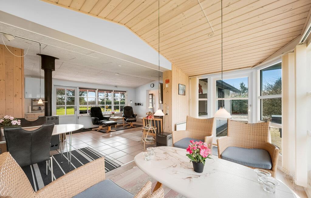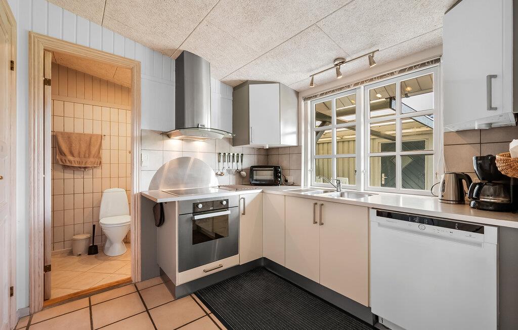 Velkommen til dette skønne hus, hvor I hurtigt finder jer godt til rette i den store, smagfulde opholdsstue med brændeovn og et komfortabelt sofahjørne. Brug det praktiske køkken til at lave ferieretterne sammen, for her har I gode rammer til de kulinariske udfoldelser. Bagefter kan I dække op til middag i karnappen eller nyde udsigten over haven med en kop kaffe om eftermiddagen.
