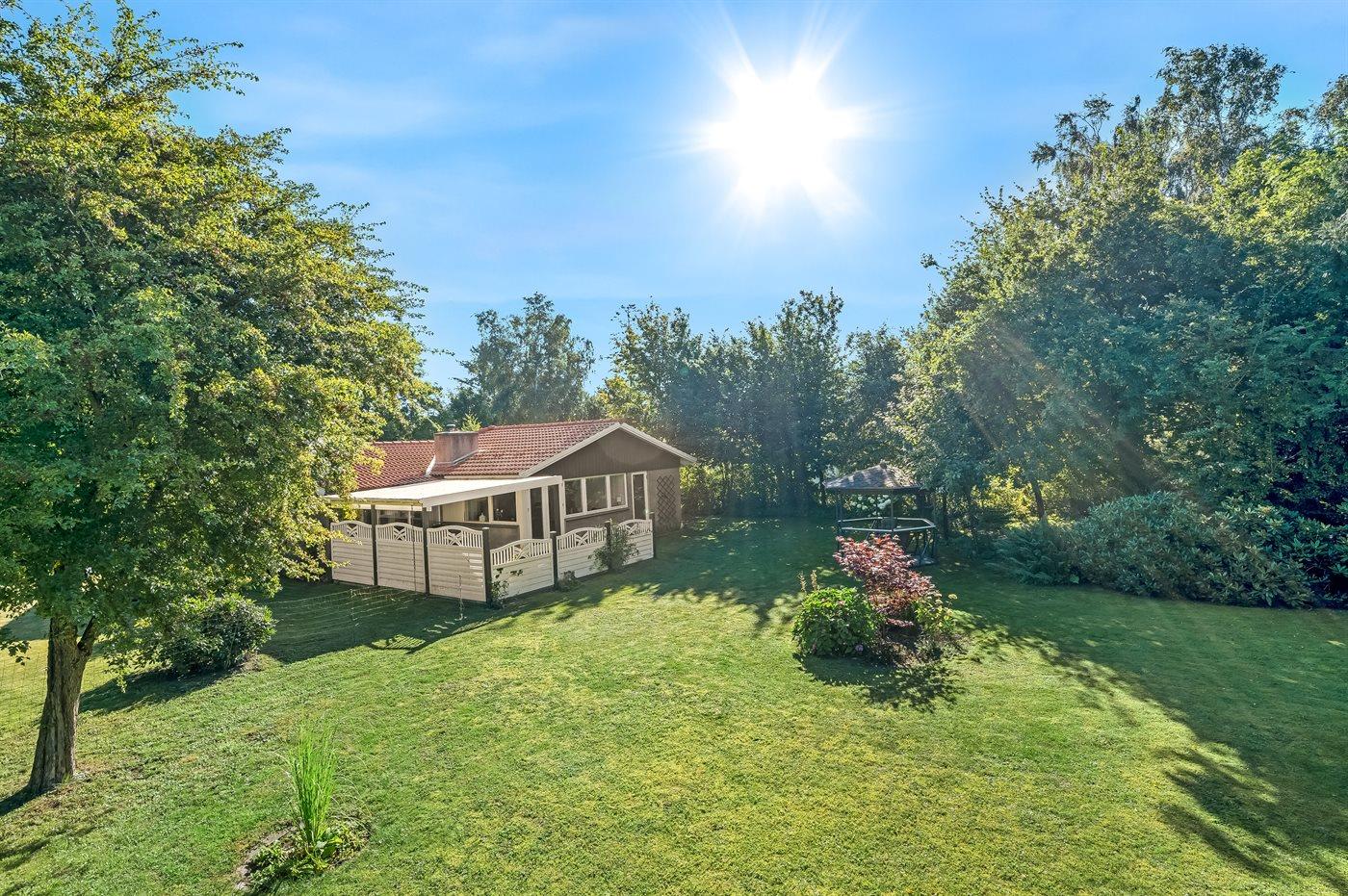 Hyggeligt sommerhus i 2. række ved Skaverup strand med stor have og overdækket terrasse.