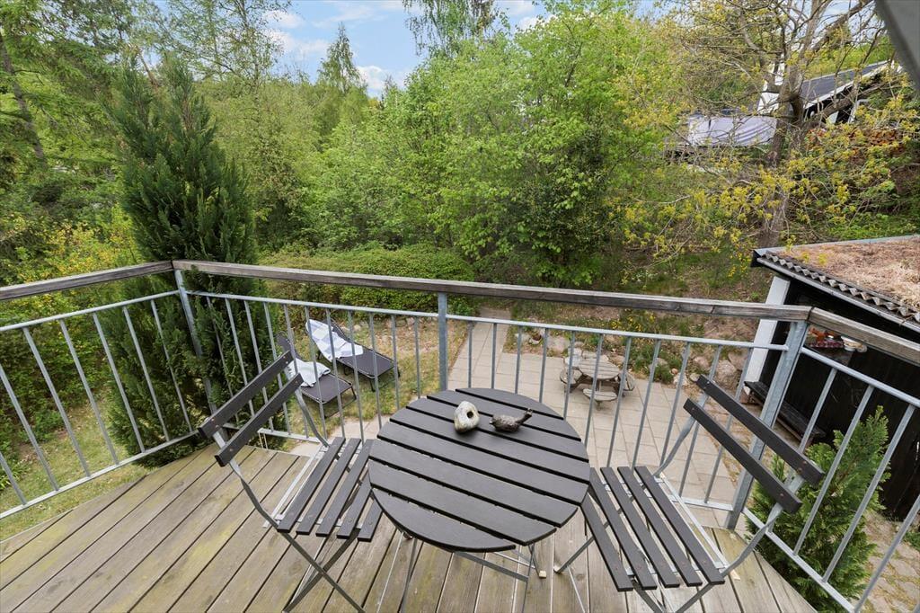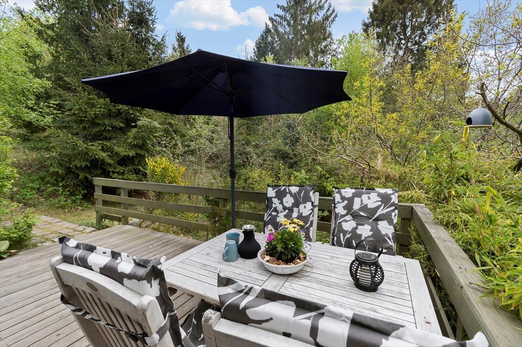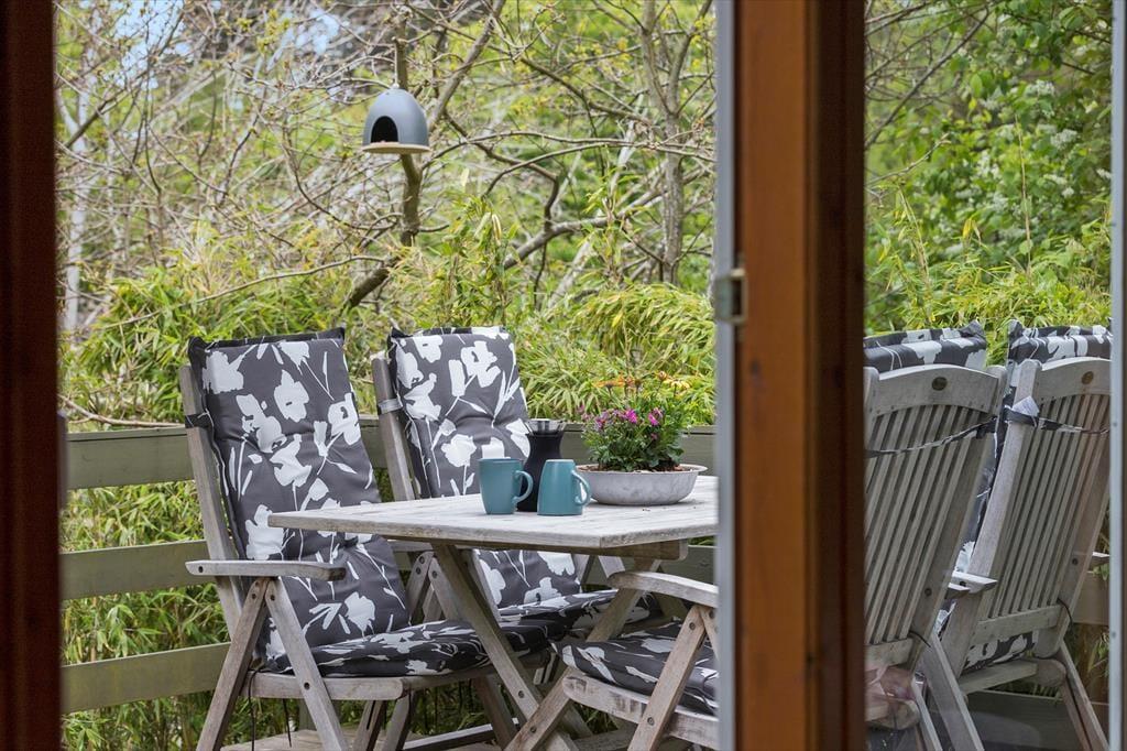Den ugenerte og lukkede grund indbyder til afslapning under åben himmel. Her finder du to solrige terrasser – én mod sydvest og én mod øst – samt balkonen på førstesalen. Uanset om du søger solens varme eller skyggefulde pauser, er der plads til at nyde de lange feriedage i fred og ro. Grunden er ideel til både børn og voksne, der ønsker at være udendørs, og du kan lade feriefreden sænke sig midt i de naturskønne omgivelser.