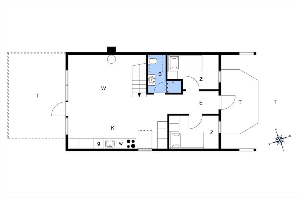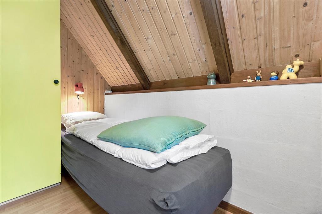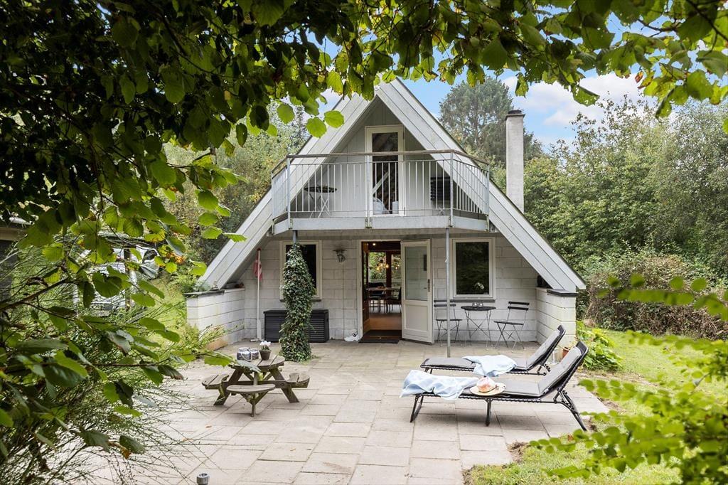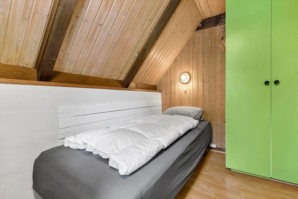 Dine skuldre sænker sig straks, når du træder indenfor i det hyggelige hus, der byder på afslappende atmosfære og hjemlig charme. Huset fordeler sig over to plan, hvor stueetagen indeholder et funktionelt køkken med spiseplads, der ligger i åben forbindelse med stuen. Her kan du nyde en god bog foran brændeovnens varme eller træde ud på den sydvestvendte terrasse direkte fra stuen. Stueetagen rummer også to soveværelser med enkeltsenge, en entré og et lyst badeværelse med bruser. På førstesalen finder du et soveværelse med dobbeltseng og udgang til en østvendt balkon – den perfekte ramme for morgenkaffen og morgensolen.