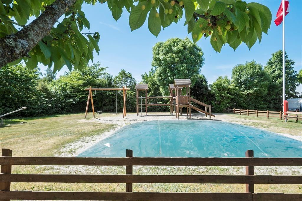 Når solen skinner, er det oplagt at flytte ferielivet ud i det fri. Her har I to overdækkede terrasser at vælge imellem, der ligger på hver sin side af huset – den ene terrasse har fjordkig, så det kan være en god grund til at vælge den. Der er god plads til at lege og spille bold på havens store græsplæne.