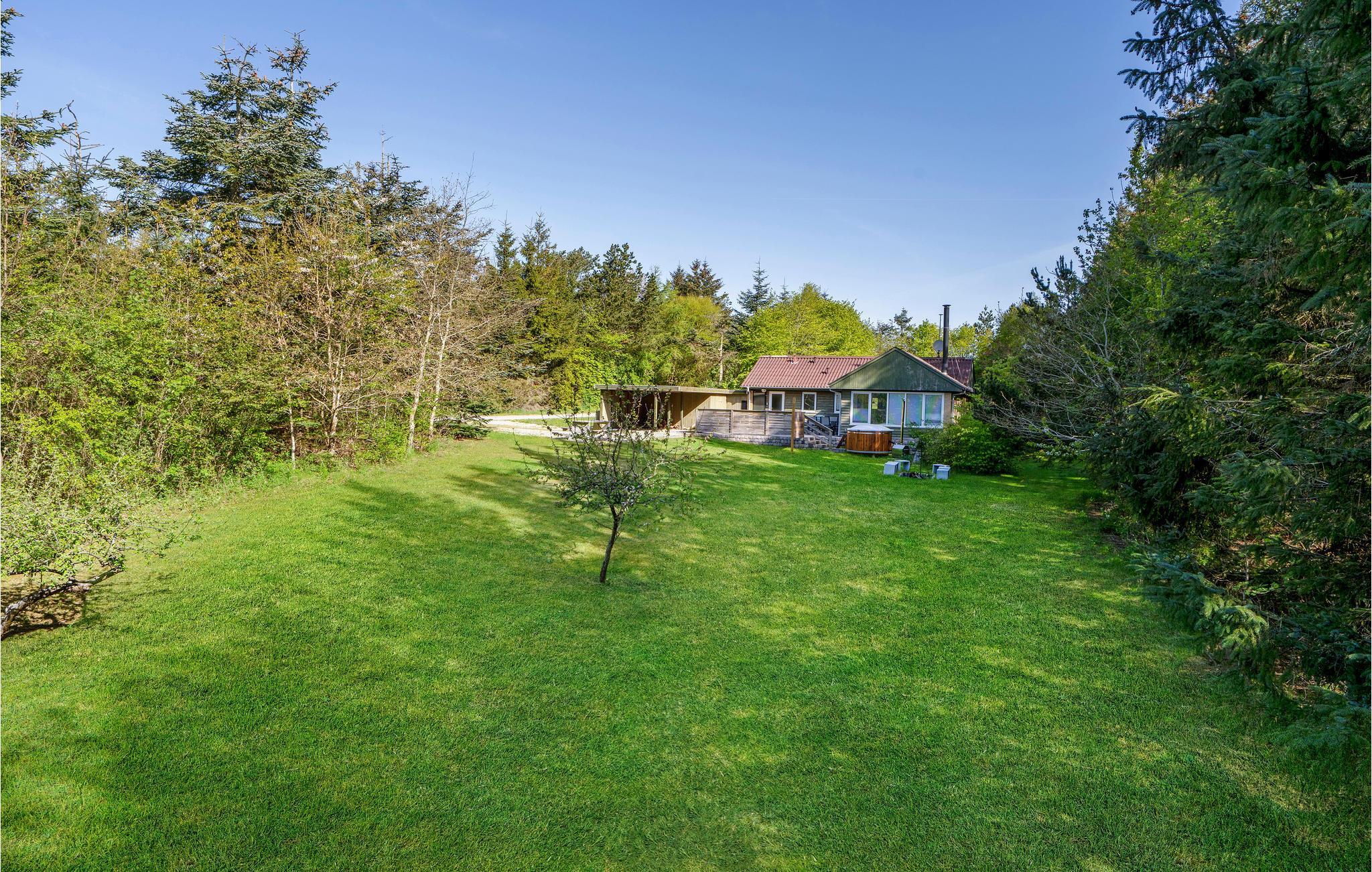 Hyggeligt feriehus ved Skibsted Fjord med stor grund, tæt på vand og skov, perfekt til rolig ferie i naturskønne omgivelser.