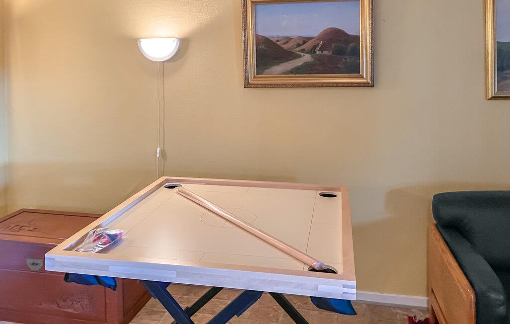 Dette hus udstråler en hyggelig atmosfære med masser af træ og varme farvetoner. Slap af på hemsen med en god bog, eller nyd udsigten gennem de store vinduer til den grønne natur. Spil bordfodbold eller bordtennis sammen og få nogle underholdende timer med familie eller venner. Tilbered lækre måltider i det store, veludstyrede køkken, og nyd samværet omkring bordet.