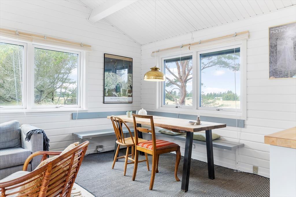 Der ligger kun huse på den ene side af den lille, lukkede Jupitervej, og det understreger fornemmelsen af ro og fred, at I kan kigge lige ud på det åbne landskab. Vil I udforske omgivelserne yderligere, kan I begive jer af sted til fods eller på cykel – for eksempel til Skiveren Strand, der ligger cirka en kilometer væk. Tversted Klitplantage er så stor, at I hver dag kan finde nye vandreruter og skønne steder at tage på skovtur, og hvis I vil have en oplevelse ud over det sædvanlige, kan I besøge Eagleworld få kilometer fra huset. En smuk køretur gennem den nordjyske klithede fører jer til Råbjerg Mile, og I kan også fortsætte videre nordpå til Skagen.