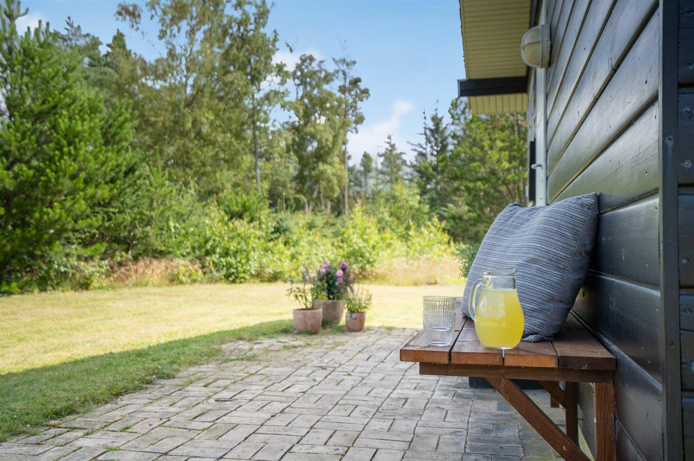 Ferieboligen er beliggende på en 2280 m² stor naturgrund. Der er 1500 m til havet. Nærmeste forretning er beliggende i en afstand af 1500 m. Til ferieboligen hører 10 m² terrasseareal. Desuden er der 10 m² overdækket terrasse. Parkering ved ferieboligen.