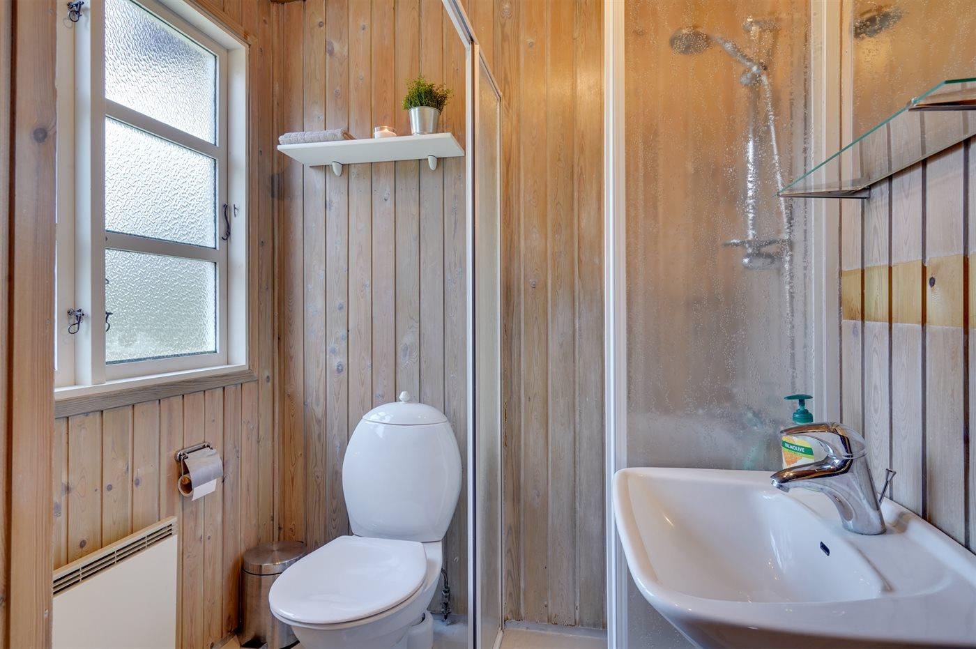 Der er 1 badeværelse med bruseniche og 1 toilet.
