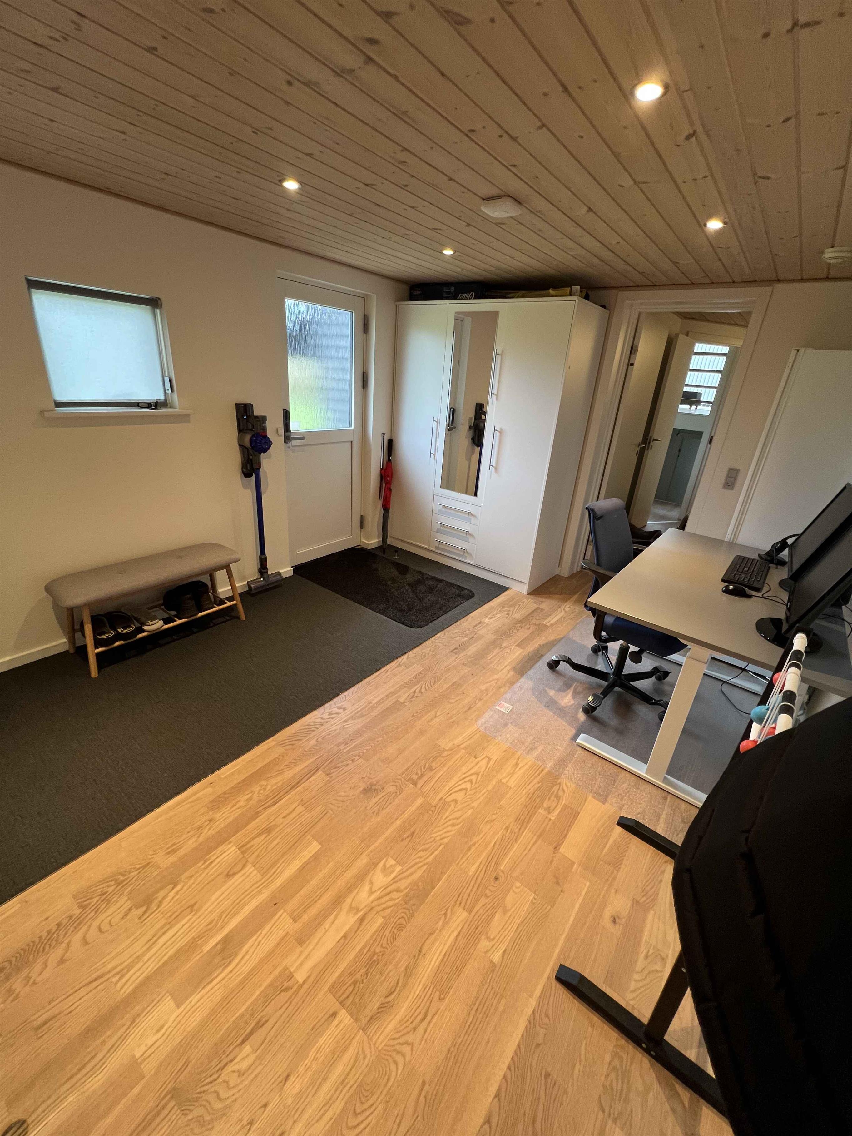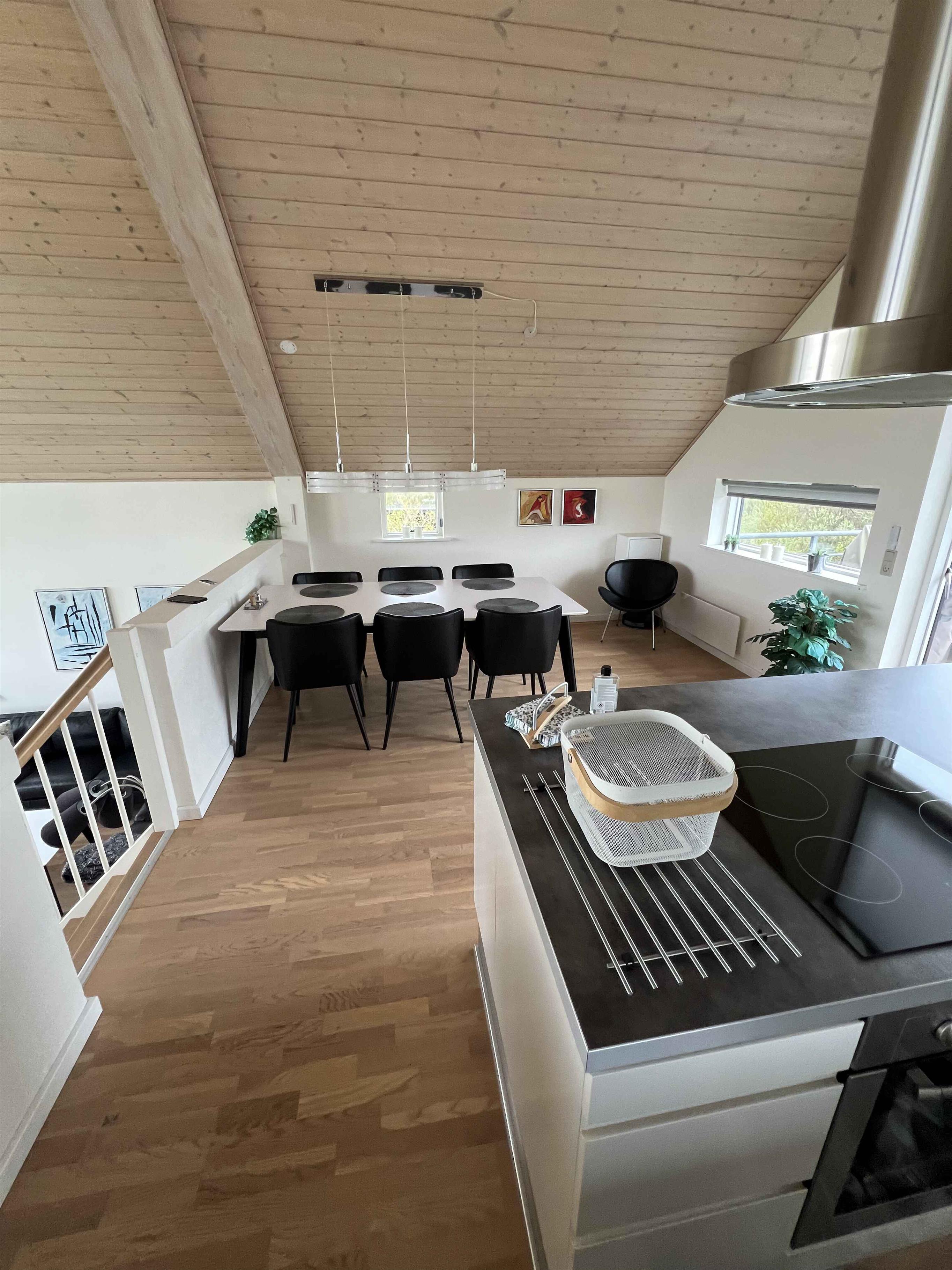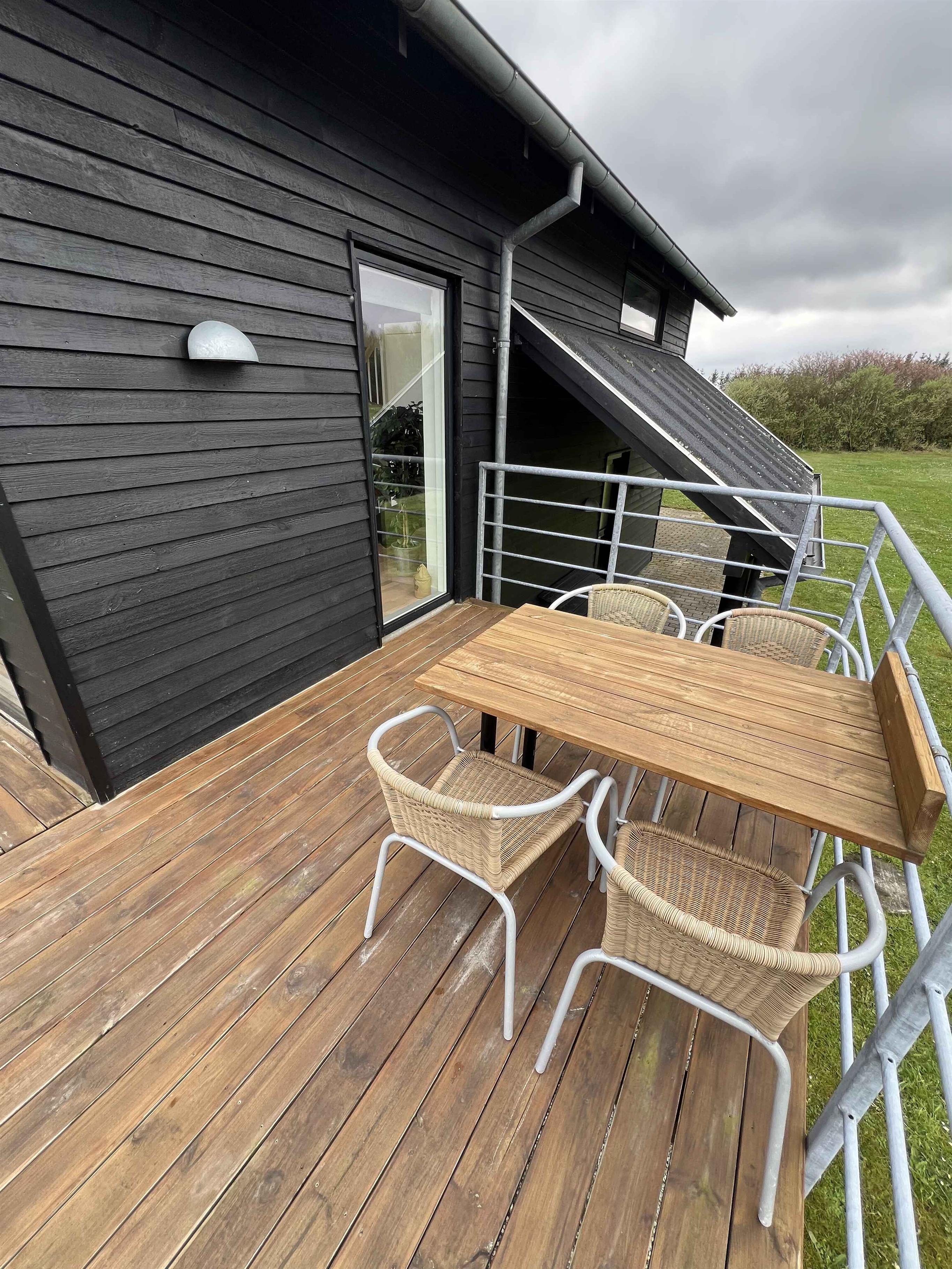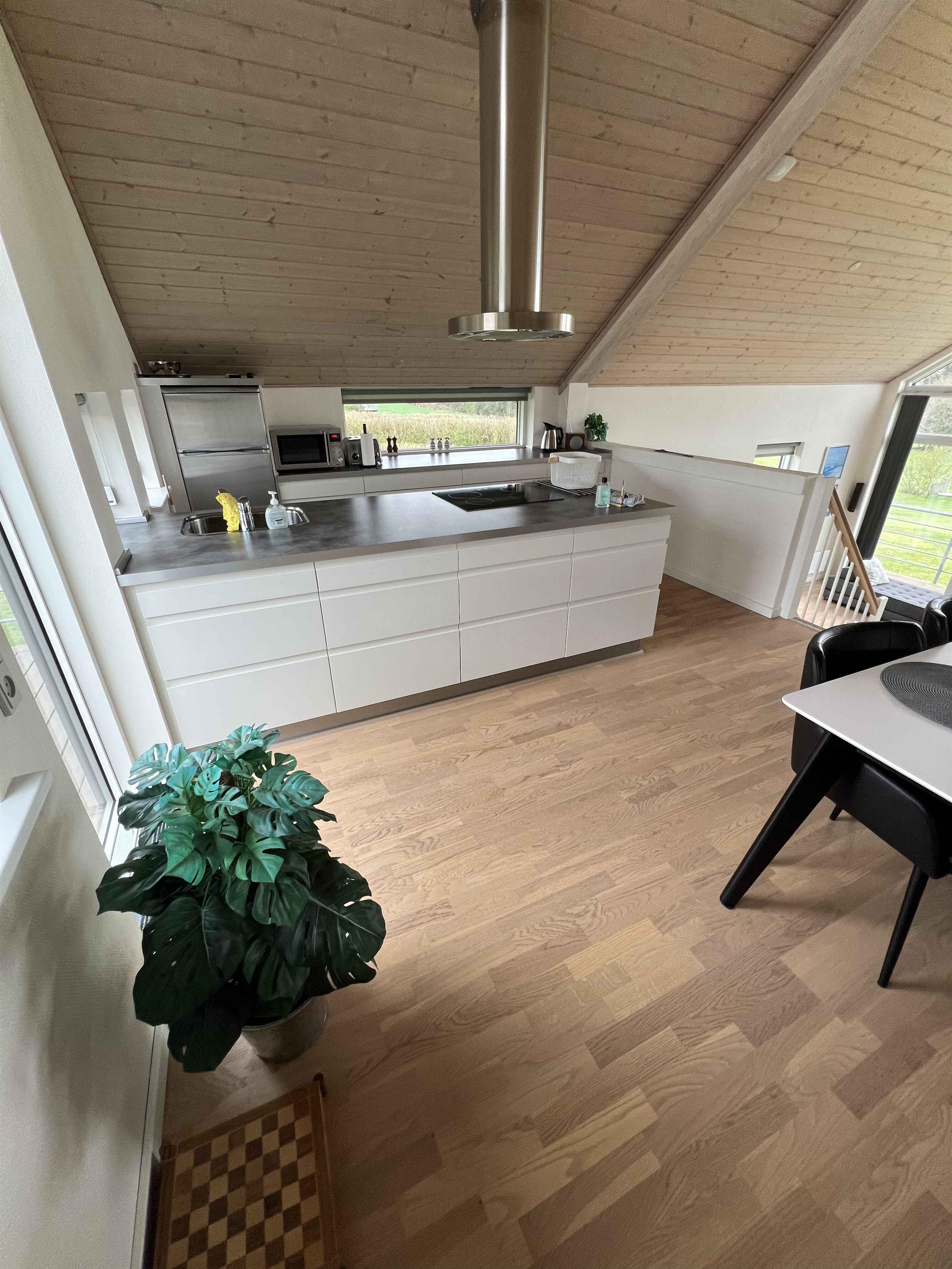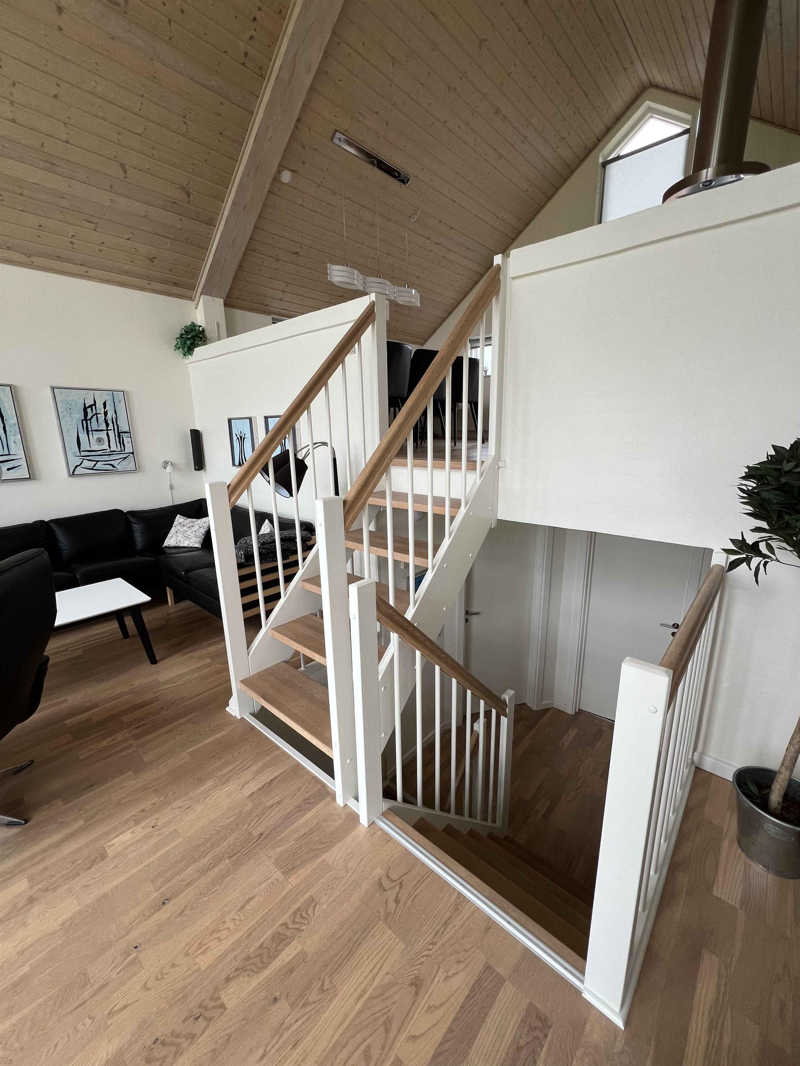 Super spændende sommerhus i 4 forskudte plan med fantastisk udsigt og flere træterrasser i forskellige niveauer. Tæt på smuk, fredfyldt natur og golf Drømmer du om en ferie i naturskønne og meget fredfyldte omgivelser med en fantastisk flot udsigt og en stor himmel? Så er dette sommerhus på 134 m² fordelt på 4 forskudte plan det perfekte valg for dig! Huset byder på en stor stue med panoramavinduer og svæveterrasser, et stort køkkenalrum i forbindelse hermed på niveauet over, med udsigt ud over stuen og en tilhørende 25 m² stor tagterrasse med et havebordbord med 6 pladser. I køkkenet eller på den tilhørende tagterrasse kan du nyde måltiderne med en betagende udsigt over landskabet, eller følge med i børnenes leg. I stueplan er der en lækker overdækket terasse med loungesofa og et mindre havebord med 4 pladser. Derudover byder huset på 3 soverum, 2 badeværelser samt et stort indgangs-/bagrum, hvor der bl.a. er optimale forhold, hvis du har behov for ”hjemmearbejde”. Her er der et elektrisk hævesænkebord, 2 skærme, headset mm. Desuden er der 65” OLED-TV i stuen samt TV i alle 3 soverum. Samtlige TV er udstyret med Chromecast/Google TV hvor du har mulighed for at caste fra din egne enheder. Og for børnene er der etableret legetårn med rutsjebane og gynger samt et fodbold-/håndboldmål. Derudover er der store græsarealer til leg og aktiviteter til både børn og voksne samt hunde. Lidt om området : Huset er beliggende i et meget fredfyldt og velplejet sommerhusområde tæt på golf og en stor skovplantage med vandrestier og mulighed for at køre på mountainbike. Et godt udgangspunkt for en ferie, hvor Ringkøbing Fjord, Skjern Å Naturpark og WoW Park er meget tæt på. Vesterhavet og Jyllands ParkZoo er en kort køretur på 30 minutter væk, og Legoland er 1 times kørsel væk. Indkøbsmuligheder og restauranter tager ca. 5-10 minutter i bil.