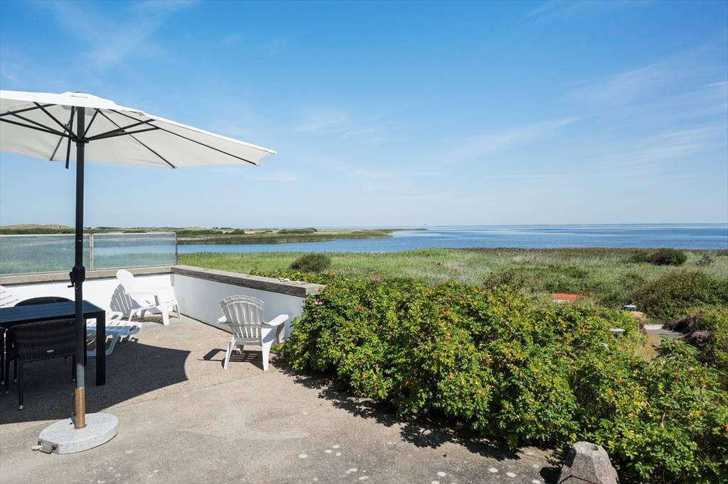 Dette feriehus ligger højt i landskabet og i første række til Ringkøbing Fjord, og derfor har I fra husets opholdsafdeling og den østvendte terrasse en uforlignelig panoramaudsigt til fjorden.