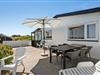 Skinner solen, kan måltiderne let rykkes ud på terrasserne, der smyger sig omkring huset mod alle verdenshjørner. Her kan I altid finde sol, skygge eller læ, og udsigten er uforlignelig, uanset om I sætter jer til rette på østsiden med morgenkaffen og ser solen stige, eller om I betragter solnedgangen på vestsiden med et godt glas vin. Naturgrunden glider flot ind i omgivelserne, der skråner ned mod vandkanten, og en smukkere og mere fredelig ramme om feriedagene skal I lede længe efter.