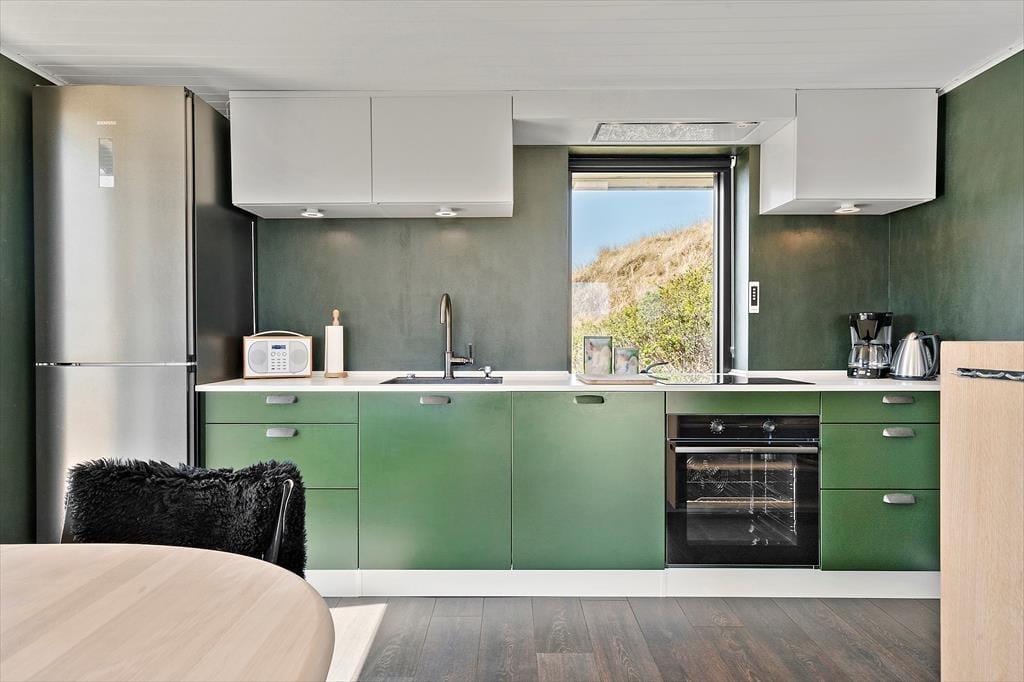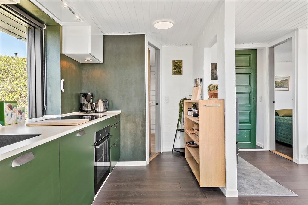 Huset er charmerende indrettet med flotte farvevalg, og et skønt lysindfald giver en lys og venlig atmosfære, mens brændeovnen og varmepumpen holder en god temperatur. Det lækre køkken er godt udstyret, og med opvaskemaskinen går rengøringen hurtigt og nemt. Køkkenet og stuen ligger i åben forbindelse, og stuen er indrettet med et spisebord og et sofaarrangement med tv, ligesom her er wi-fi. Badeværelset byder på bruseniche, vaskemaskine og gulvvarme, og med to soveværelser og sengepladser til tre personer er feriehuset ideelt til både den lille familie eller et par.