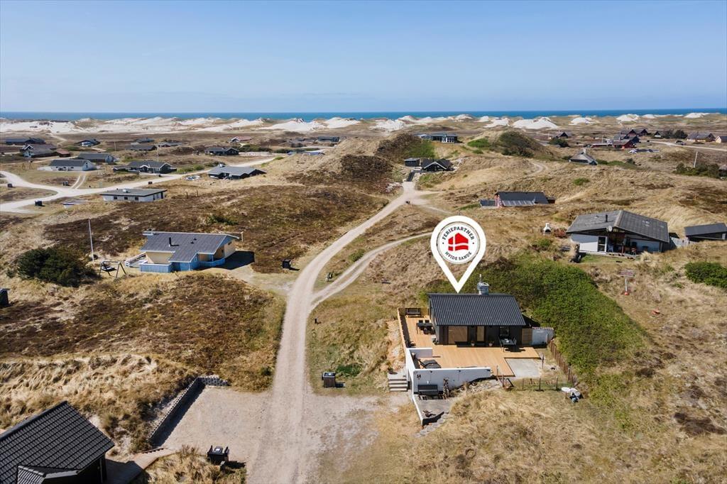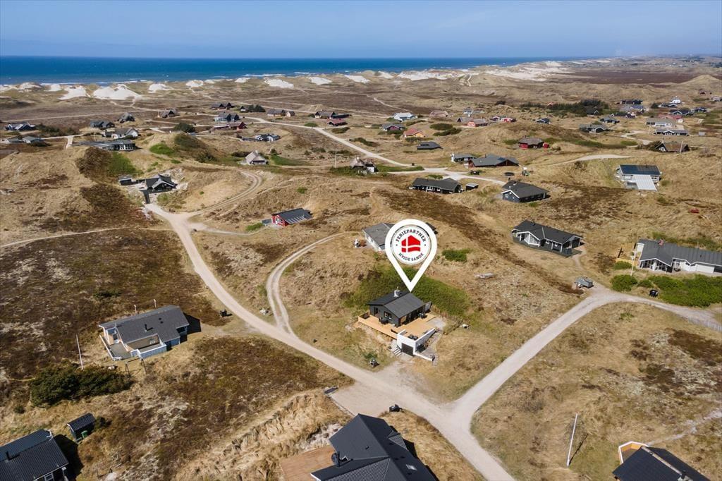 Feriehuset ligger på en lille, lukket vej i et hyggeligt sommerhusområde, der er omgivet af Skodbjerges skønne natur. Fem minutters gang fra adressen venter Vesterhavet, der inviterer til forfriskende dukkerter på de varme sommerdage og viser tænder i ydersæsonerne, når vestenvinden rusker. I modsatte retning venter Ringkøbing Fjord, hvor den idylliske Vinterleje Havn altid er et besøg værd. En cykelsti fører gennem klitlandskabet hele vejen fra Nymindegab til Søndervig, og her venter jer mange skønne udflugter i naturen, hvis I tager de tohjulede med. Fem kilometer fra adressen sælger købmanden i Bjerregaard frisk morgenbrød og dagligvarer, og i bil tager køreturen til butikkerne og spisestederne i Hvide Sande kun ti minutter. På Holmsland Klit findes også flere surfpladser, hvor I kan wind- eller kitesurfe.