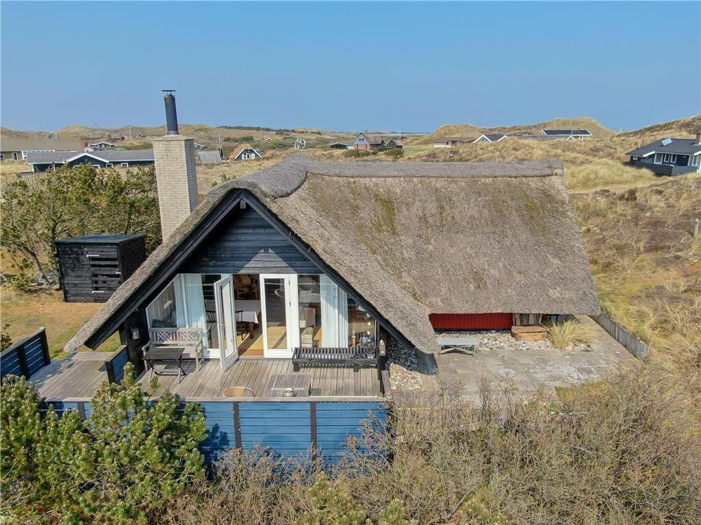 Dette charmerende, stråtækte træsommerhus er stedet for jer, hvis I vil koble helt af og bare nyde feriedagene i fred og ro helt uden forstyrrende elementer. Huset er simpelt, men komfortabelt indrettet, og udelivet kan nydes på det solvendte terrassemiljø eller fra udsigtsbænken på toppen af naturgrundens klit. Og trænger I til en frisk dukkert, har I blot fem minutters gang til stranden og Vesterhavet.