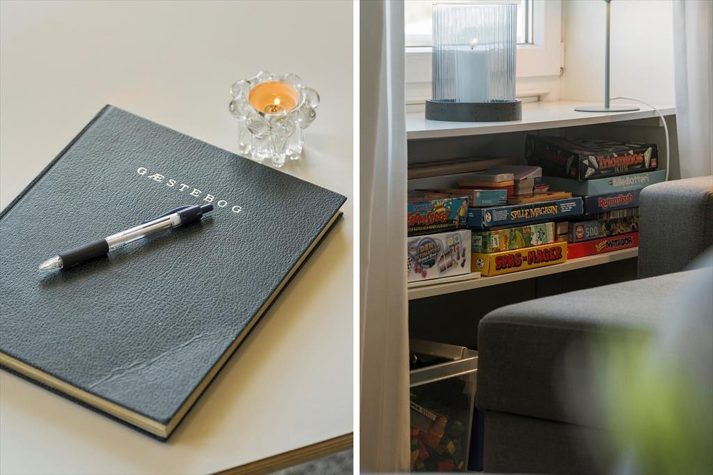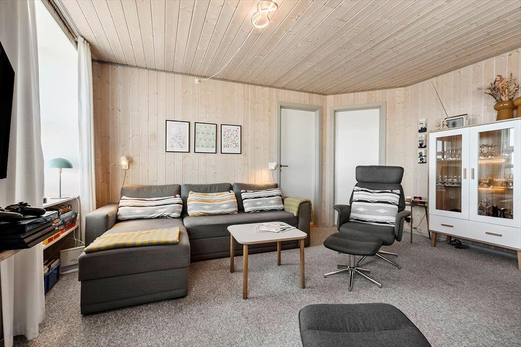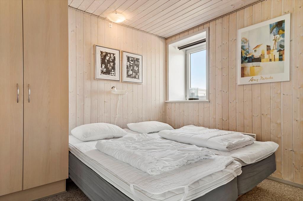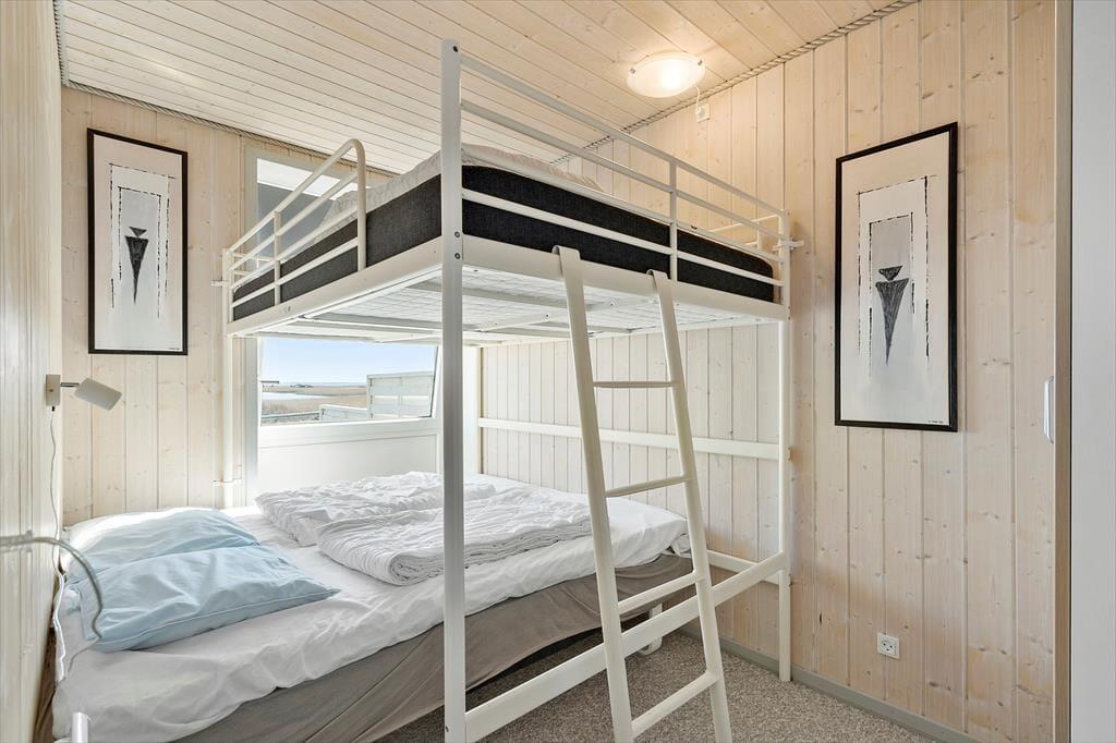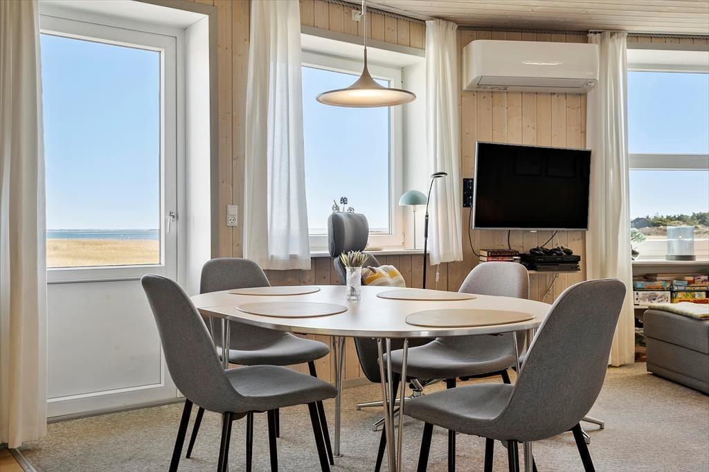 Indenfor byder lejligheden på et hyggeligt og indbydende miljø. Stuen og køkkenet er samlet i en åben løsning, hvor lyset strømmer ind gennem vinduerne og giver rummene en lys og luftig atmosfære. Her er det let at slappe af med en god bog, se en film eller nyde et måltid sammen ved spisebordet, mens udsigten over fjorden altid er til stede. De to soveværelser er komfortabelt indrettet, og begge med dobbeltsenge. Lejlighedens badeværelse er funktionelt og rummeligt. Alt i alt får du en ferielejlighed, hvor du både kan finde ro og hygge – et perfekt udgangspunkt for en ferie ved vestkysten.