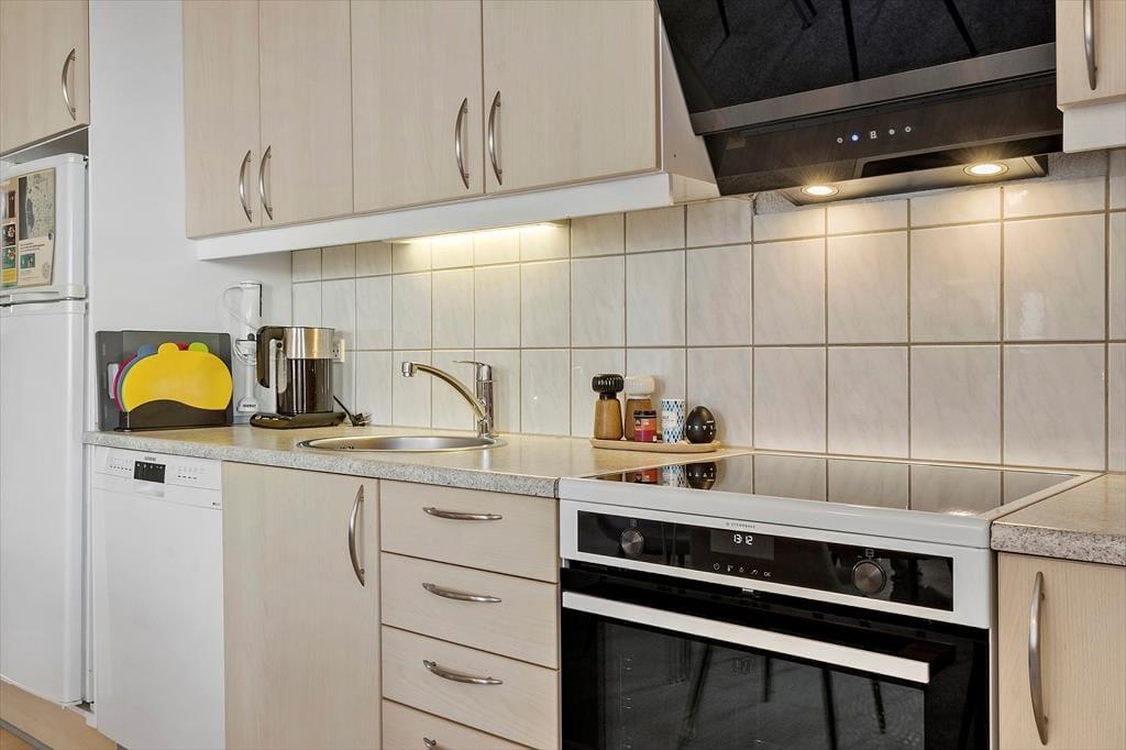 Lejligheden har ikke én, men to dejlige terrasser, som giver dig mulighed for at tilbringe tid både i sol og skygge. Den ene terrasse er perfekt til morgenkaffen, hvor du kan nyde den friske luft og den tidlige sol, mens den anden terrasse har udsigt over fjorden, hvilket gør den ideel til aftensmåltider og hyggestunder med familien. Begge terrasser er udstyret med egne havemøbler, så du nemt kan slappe af og nyde den friske havluft. Uanset om du foretrækker at slappe af i solen eller finde skygge under parasollen, så er der gode muligheder for udendørsliv i denne lejlighed.