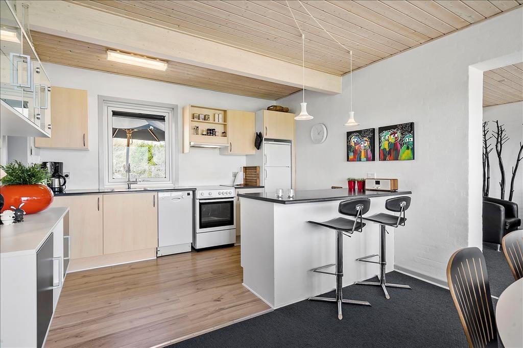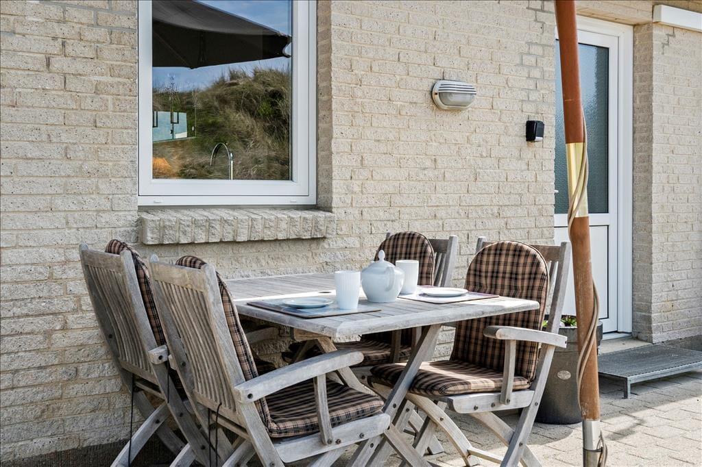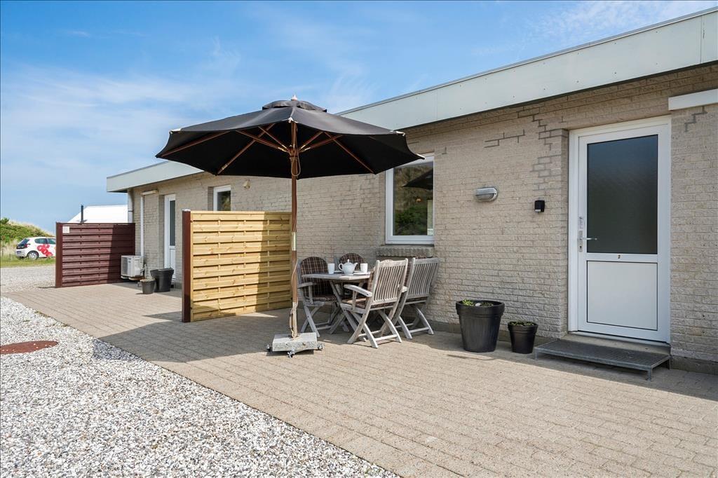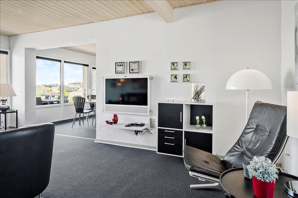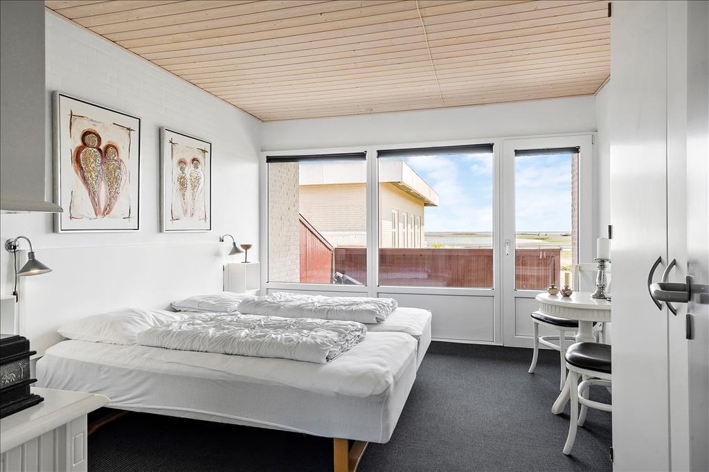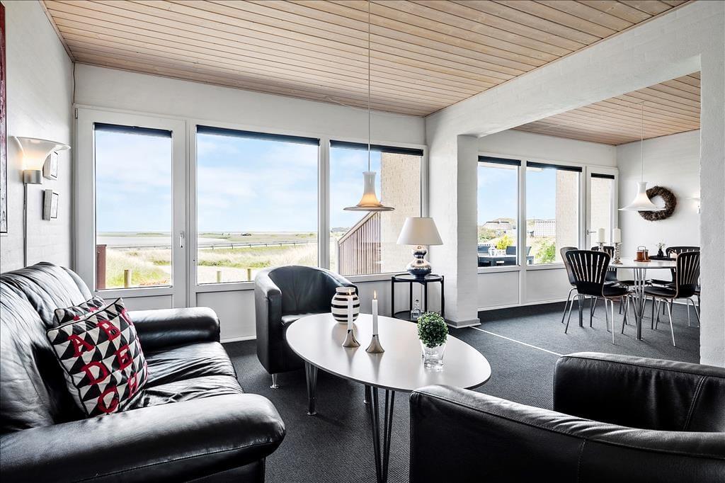 Denne store ferielejlighed på Holmsland Klit har en moderne indretning og en supergod planløsning, der gør den velegnet til to par. På begge sider af ejendommen kan I nyde solen på lejlighedens terrasser, og mod øst kommer terrasseafslapningen til at foregå med den flotteste panoramaudsigt over Ringkøbing Fjord.