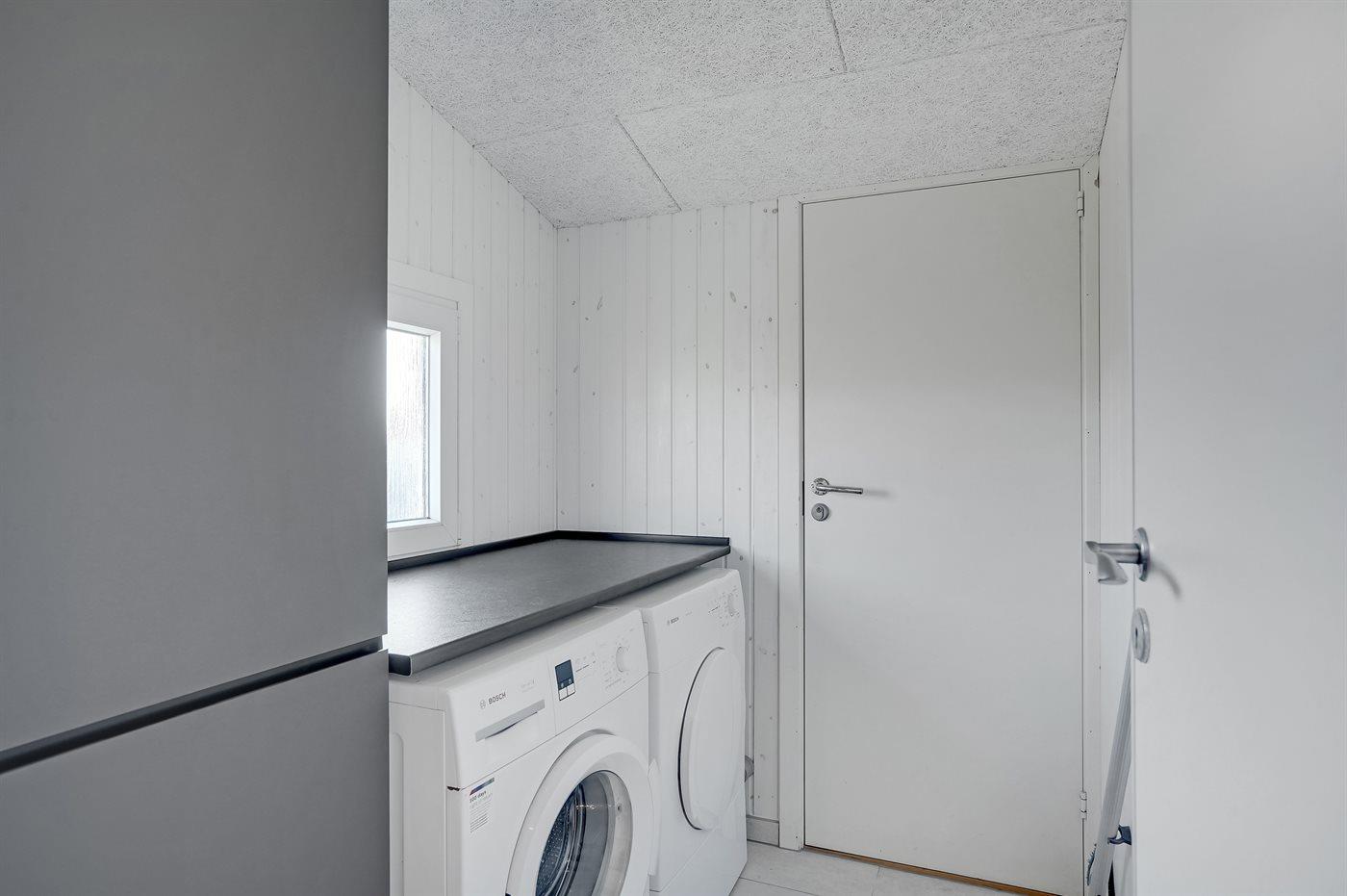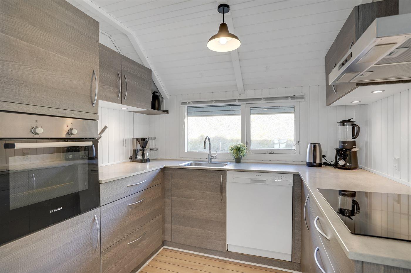 Køkkenet er udstyret med 1 køleskab. Der er 4 elkogeplader, bageovn, mikrobølgeovn samt opvaskemaskine.