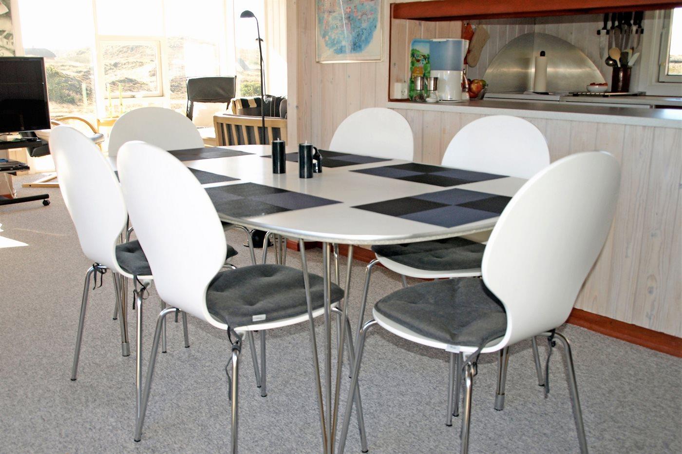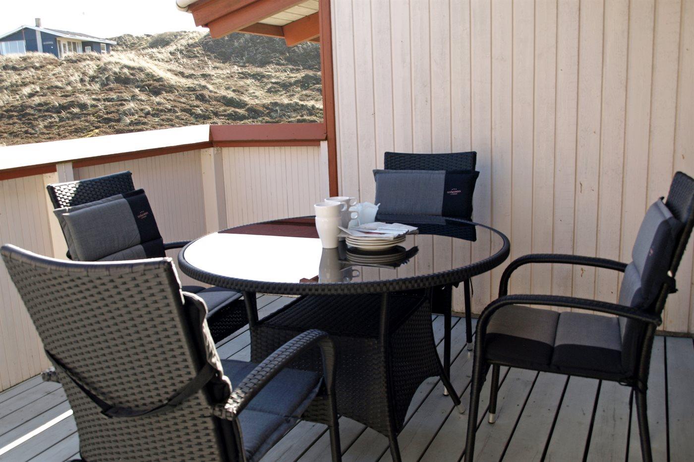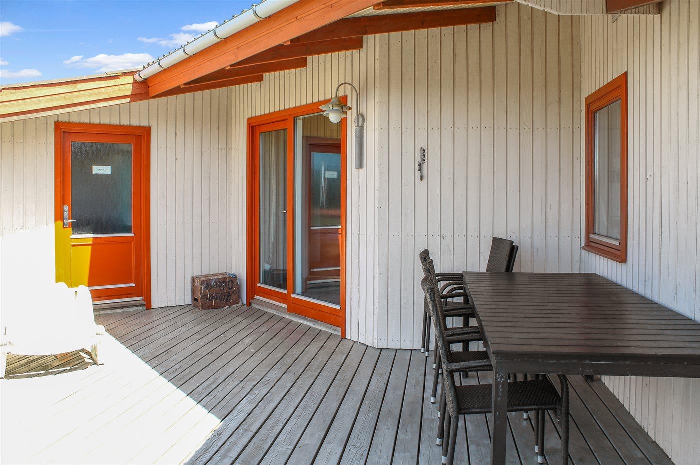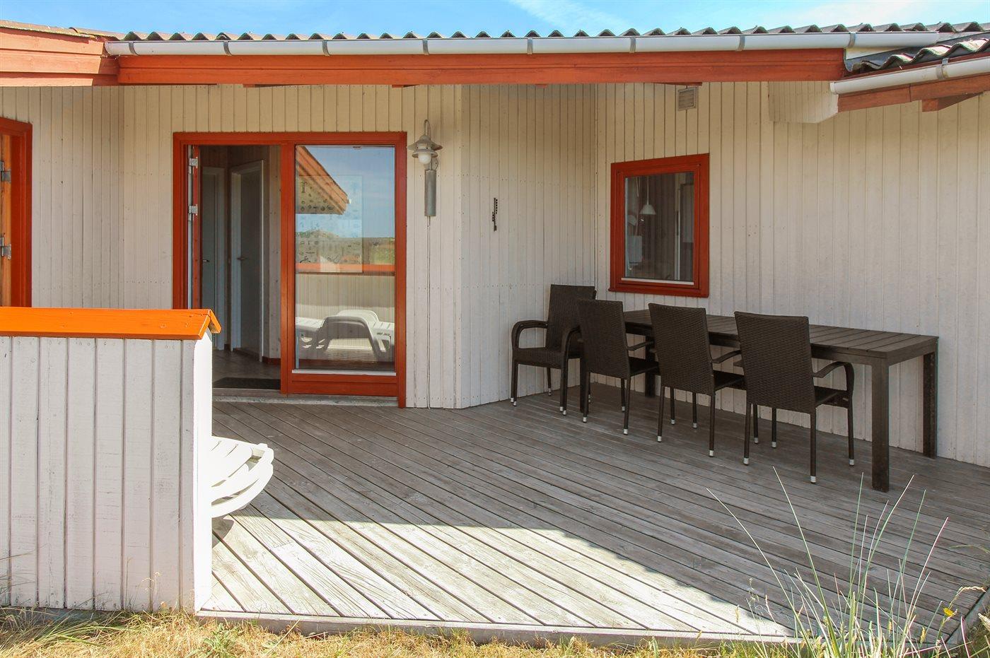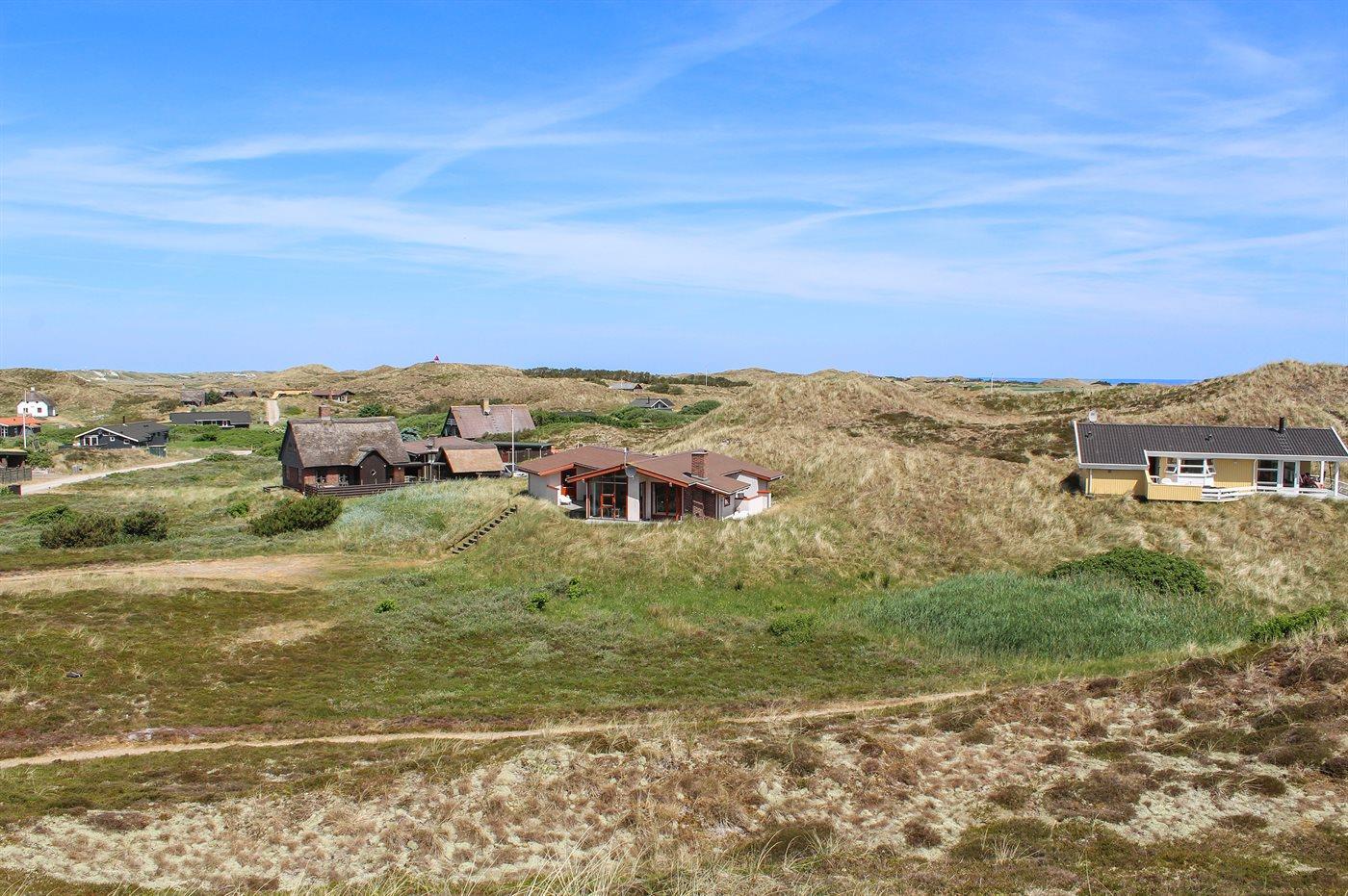 Ferieboligen er beliggende på en 3200 m² stor klitgrund. Der er 750 m til havet. Der er 250 m til fjorden. Nærmeste forretning er beliggende i en afstand af 2500 m. Til ferieboligen hører 65 m² terrasseareal. Desuden er der 10 m² overdækket terrasse. Der er to store vinduesparter med udsigt over området dels fra stuen dels fra det største af soveværelserne. Der er installeret stik til opladning af elbil. Type 2 stik. Med 11 kW ladeeffekt. Gratis parkering ved ferieboligen.