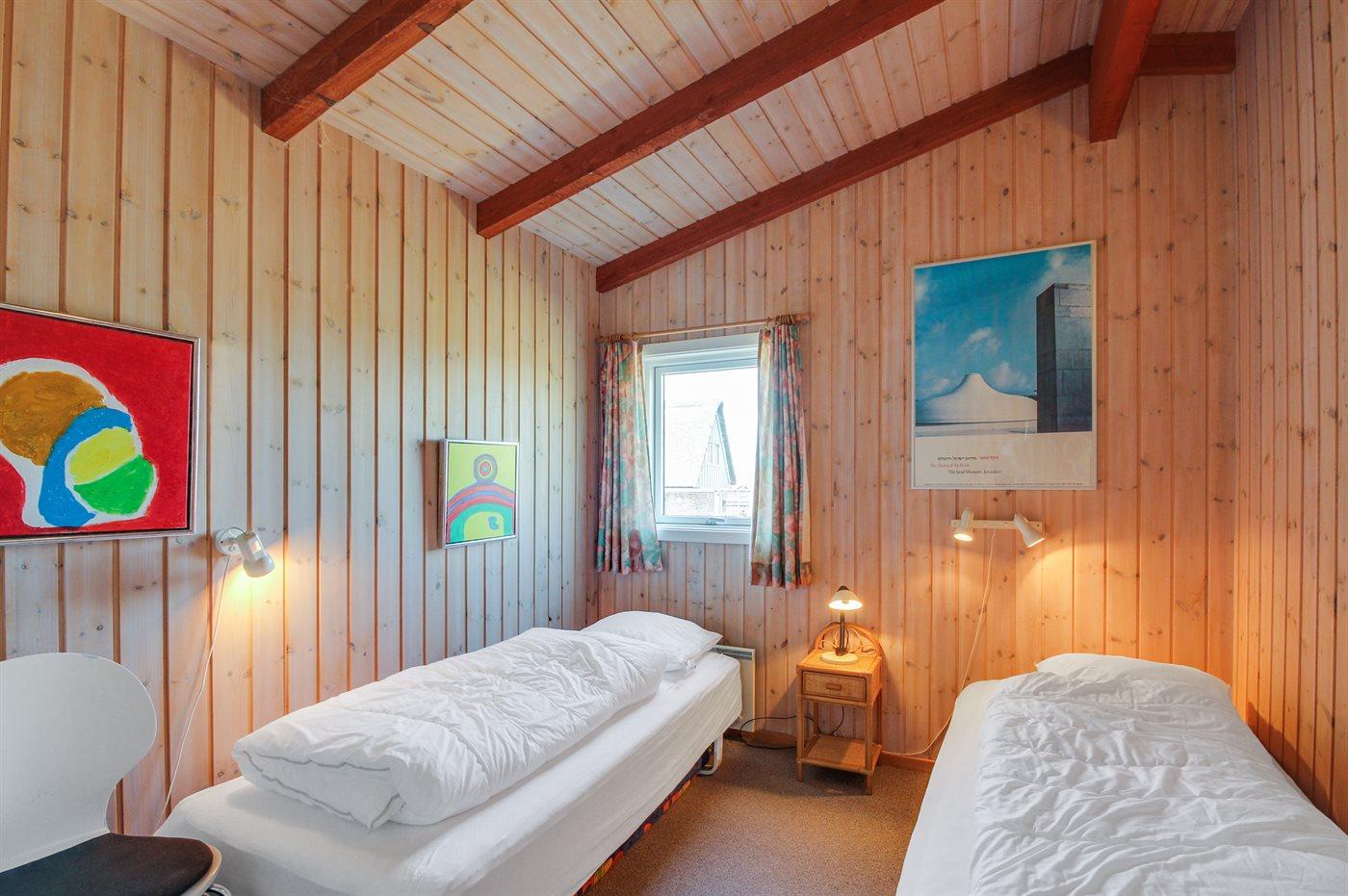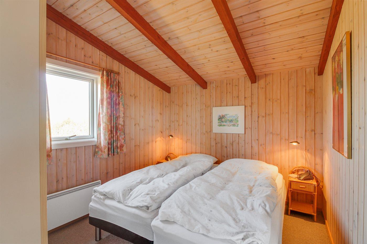 Der er i alt 3 soveværelser. Sovepladserne fordeler sig på: 4 sovepladser i dobbeltsenge. 2 sovepladser i enkeltsenge. I to af soverummene er der gulvtæppe. Der er egeplankegulve i stue, køkken og stort soveværelse.