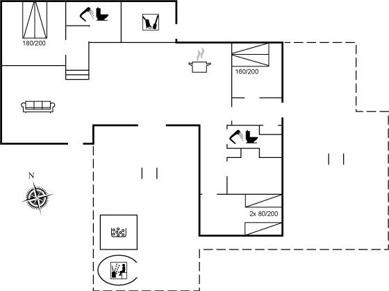 Der er i alt 3 soveværelser. Sovepladserne fordeler sig på: 4 sovepladser i dobbeltsenge. 2 sovepladser i enkeltsenge. Derudover er der 1 stk. barneseng.