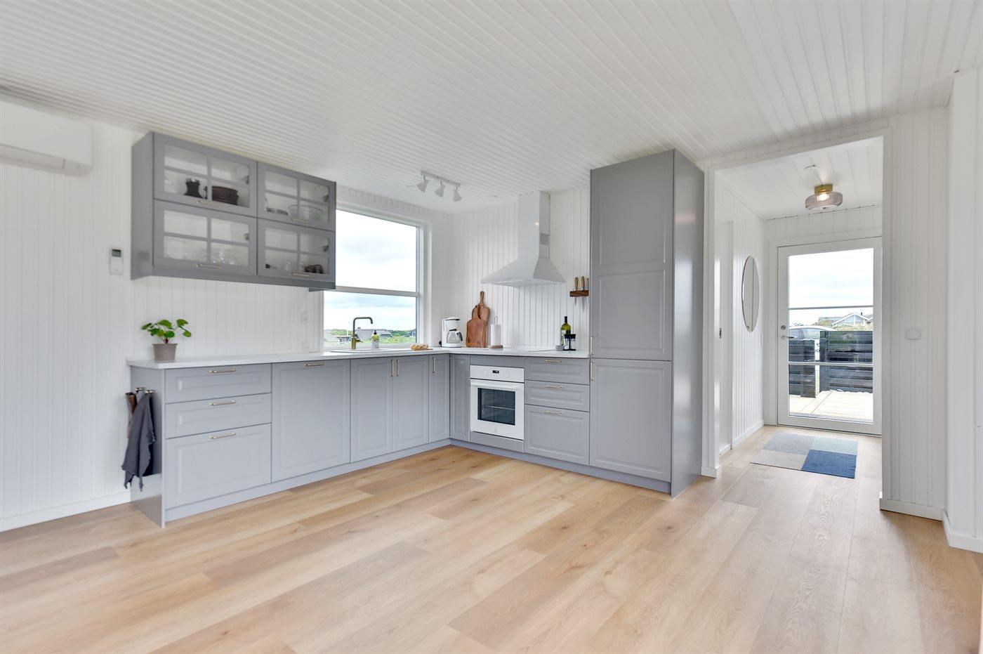 Køkkenet er udstyret med 1 køleskab. Der er 4 induktionskogeplader, varmluftovn, mikrobølgeovn samt opvaskemaskine. Der findes desuden en Nespresso kaffemaskine til kapsler.