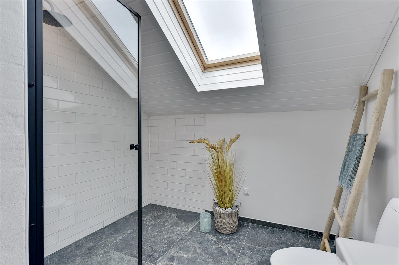 Der er 2 badeværelser med bruseniche og 2 toiletter. Der er gulvvarme på 2 badeværelser.