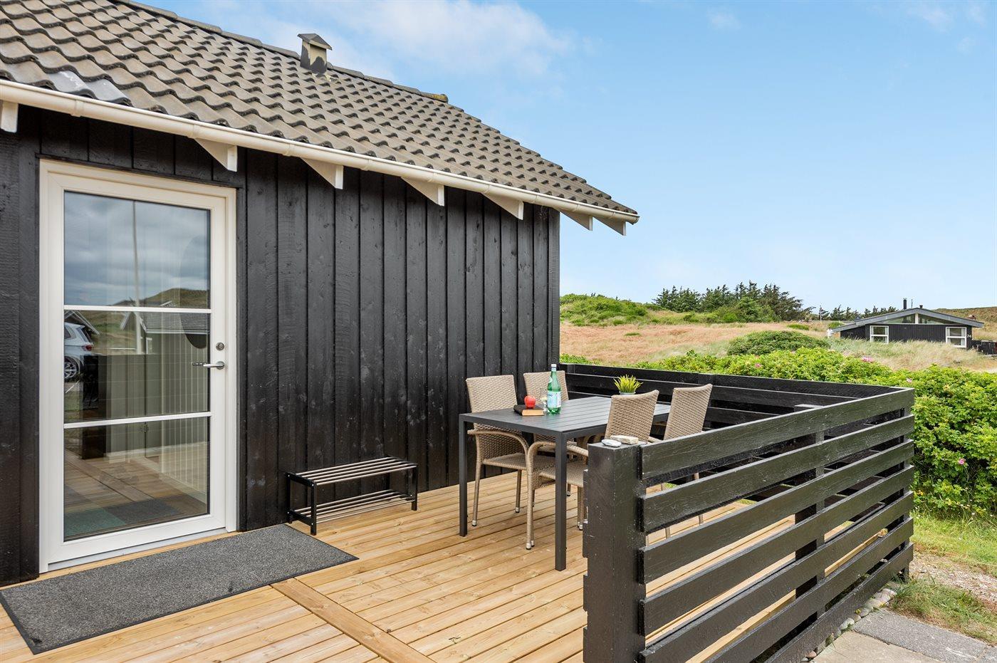 Ferieboligen er beliggende på en 4185 m² stor klitgrund. Der er 400 m til havet. Der er 5000 m til fjorden. Nærmeste forretning er beliggende i en afstand af 3800 m. Til ferieboligen hører 120 m² terrasseareal. Der er redskabsrum. Der ligger en legeplads i en afstand af 3800 m. Udendørs sauna. Parkering ved ferieboligen.