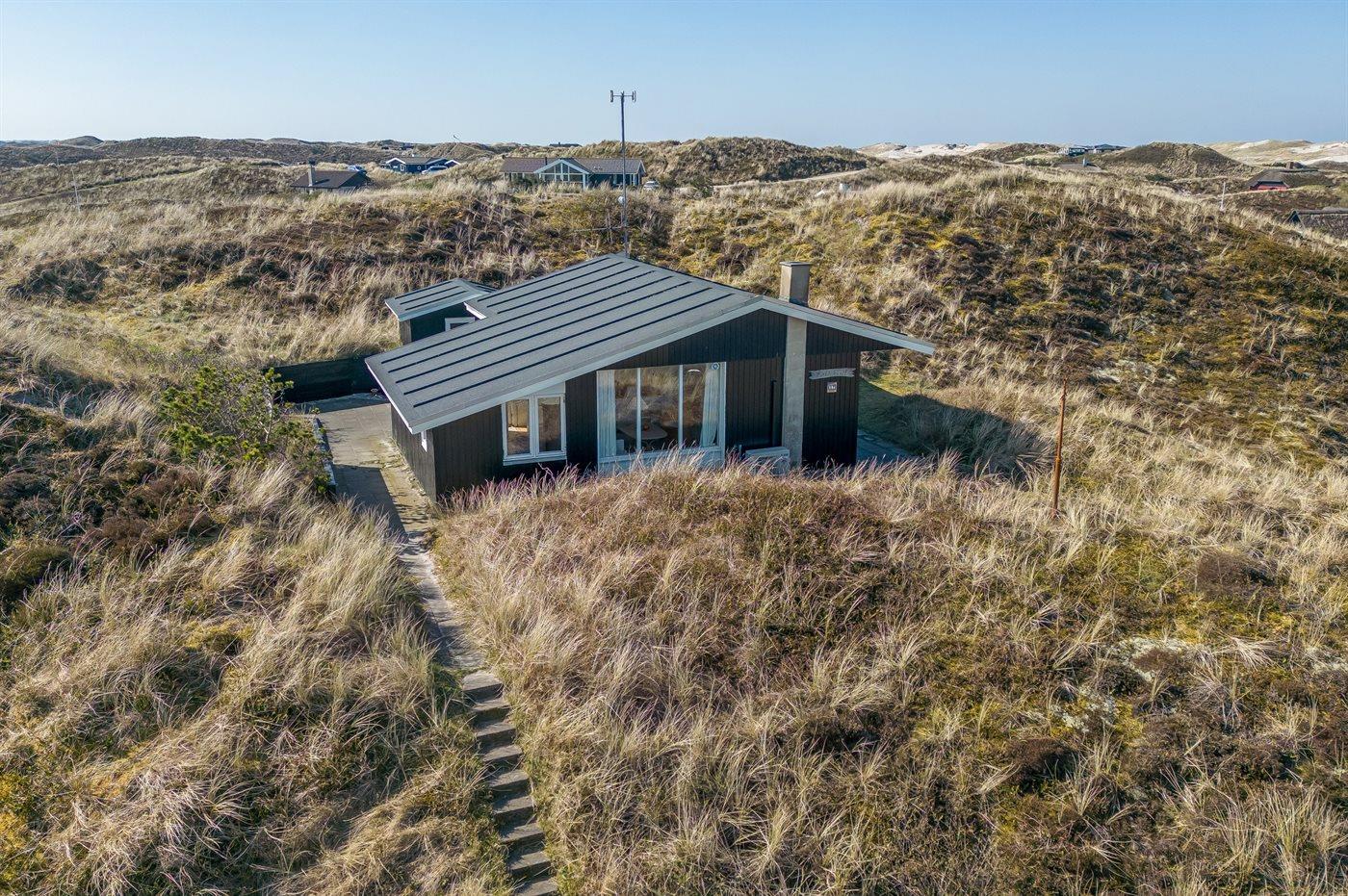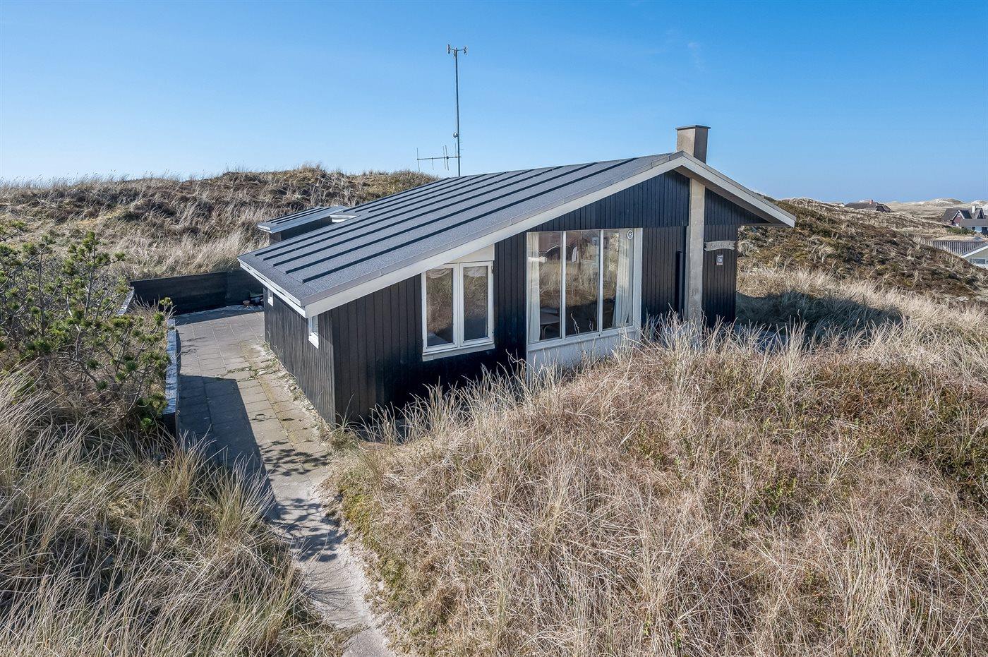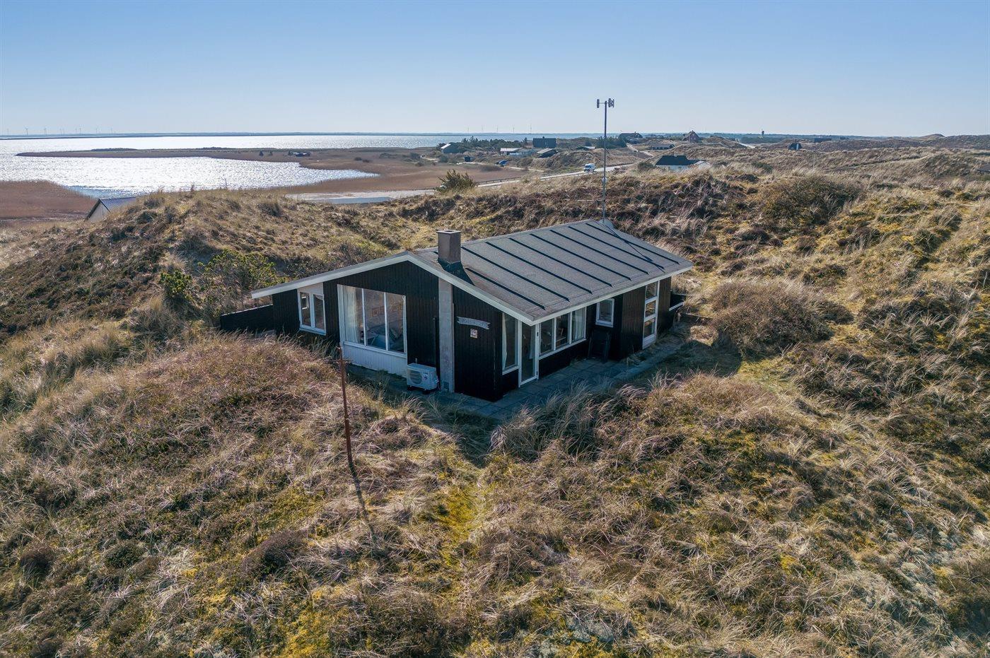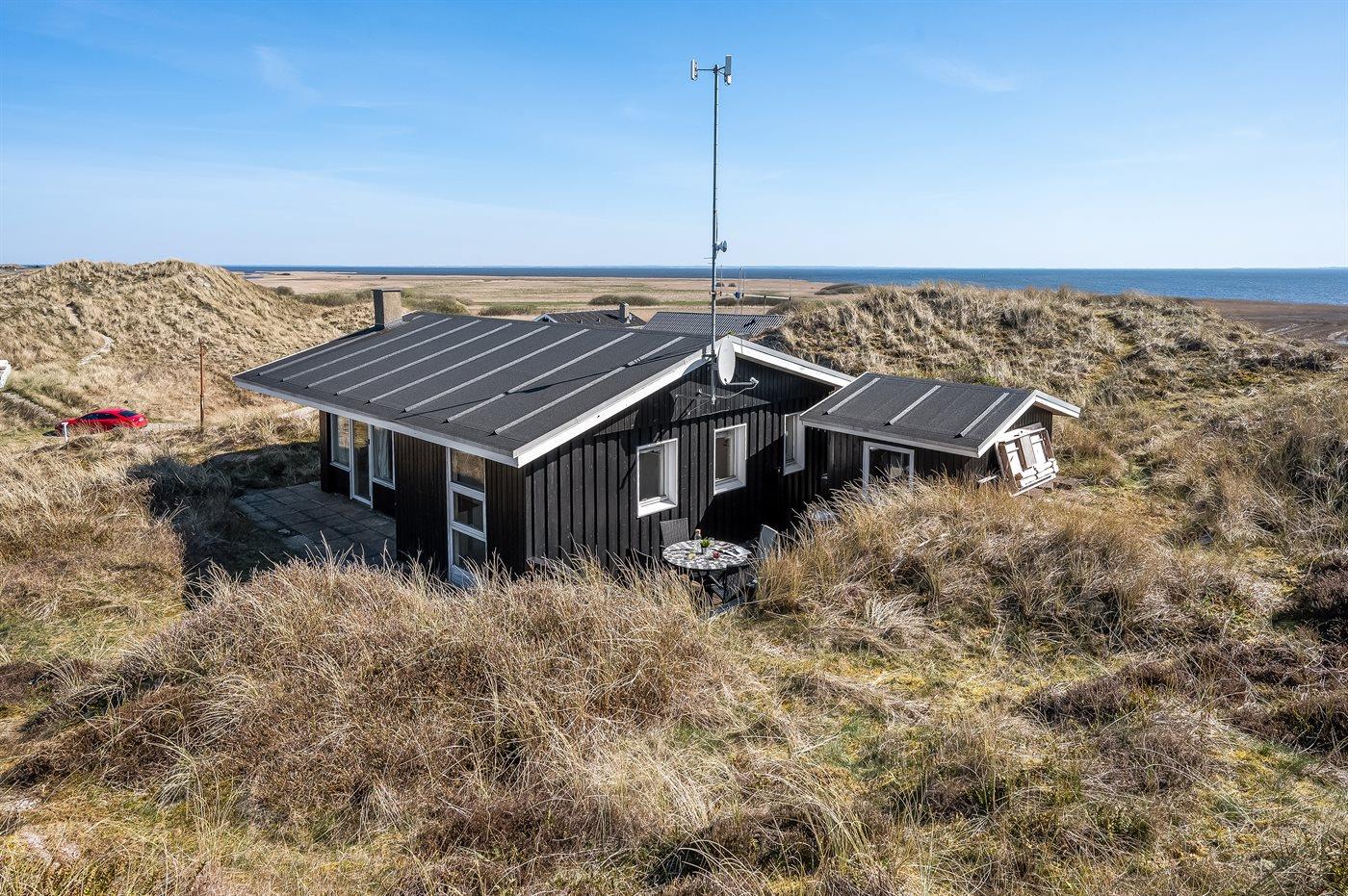 Hyggeligt sommerhus beliggende højt på en dejlig, meget stor og kuperet klitgrund. Der er udsigt over fjorden fra såvel hus som grund og havkig fra det højeste punkt på klitgrunden. Til huset hører åbent, ugenert terrasseareal.