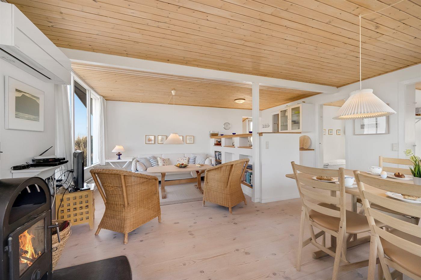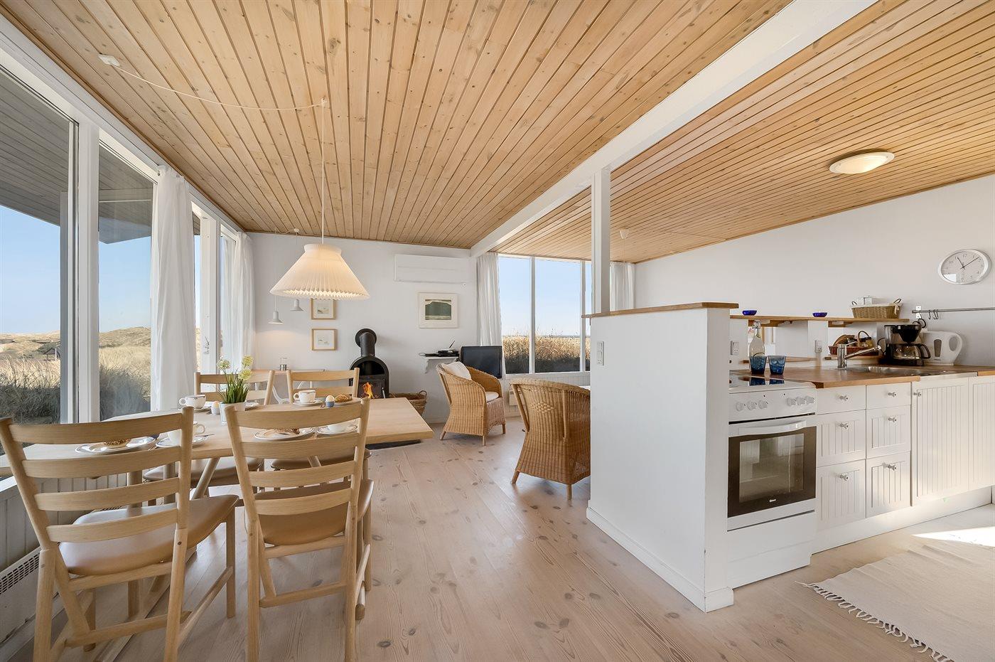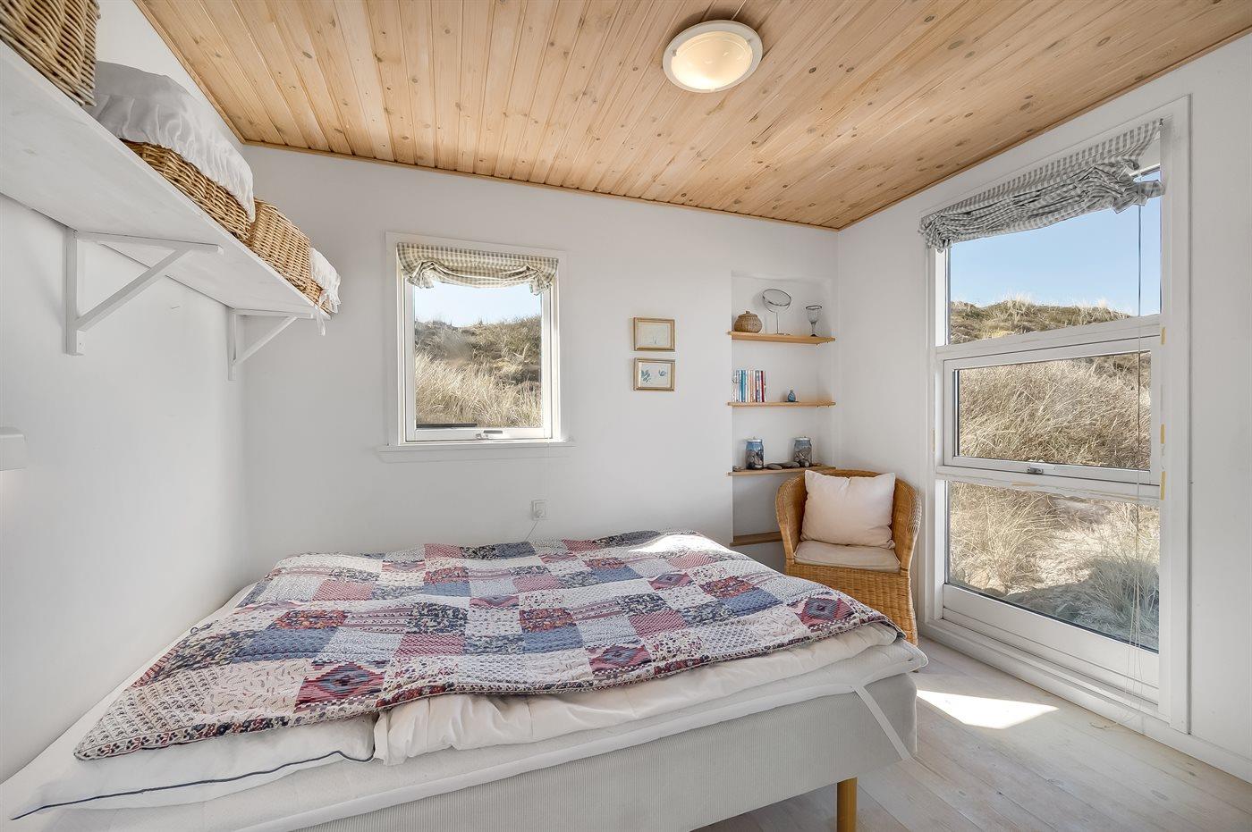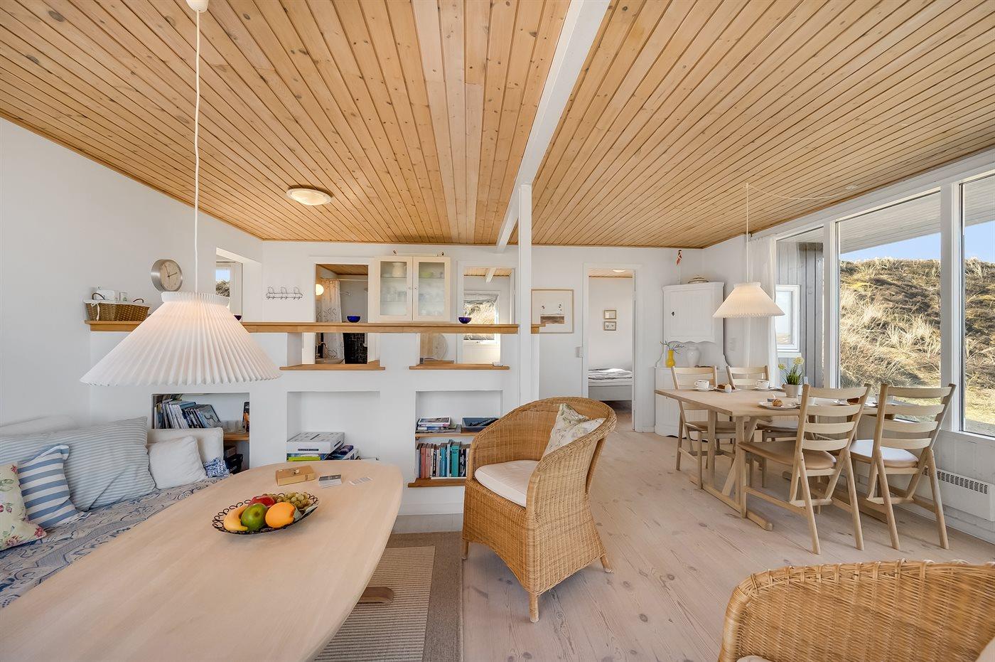 Hyggeligt sommerhus beliggende højt på en dejlig, meget stor og kuperet klitgrund. Der er udsigt over fjorden fra såvel hus som grund og havkig fra det højeste punkt på klitgrunden. Til huset hører åbent, ugenert terrasseareal.