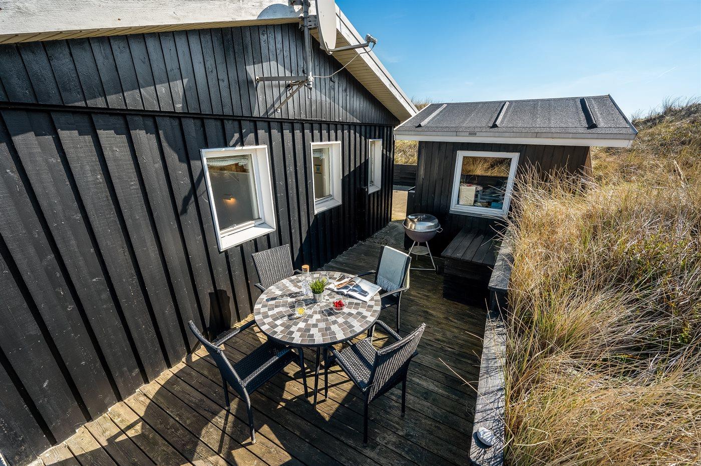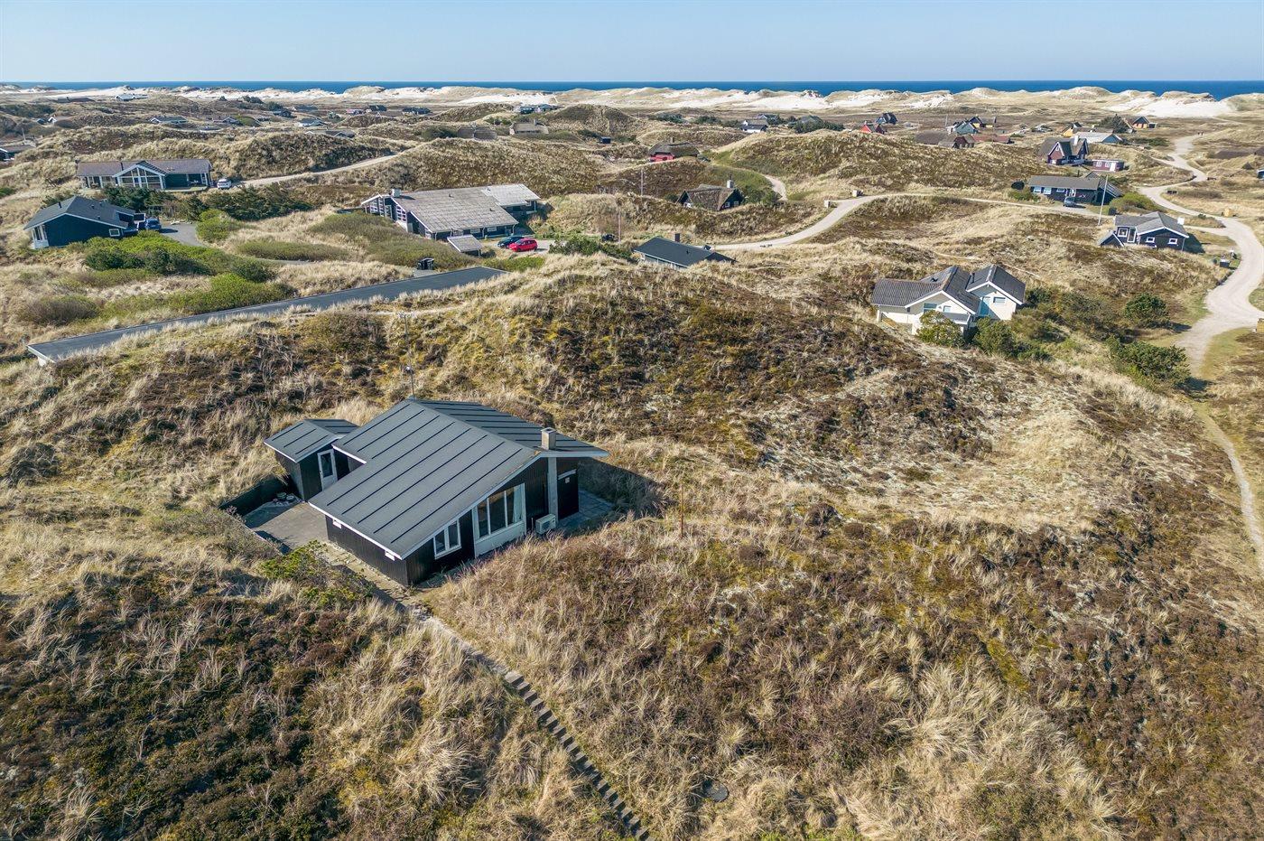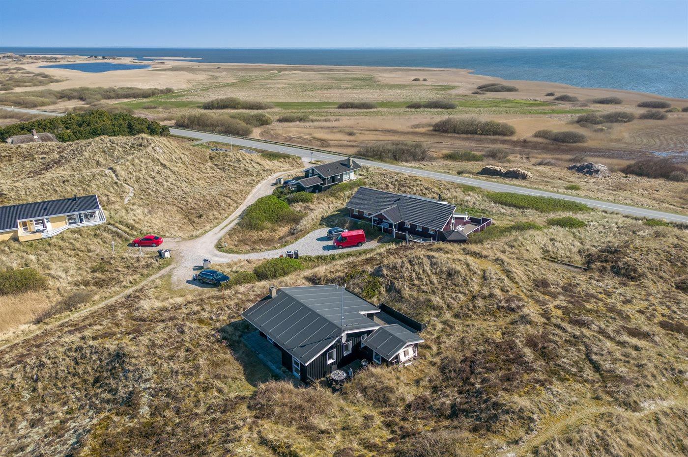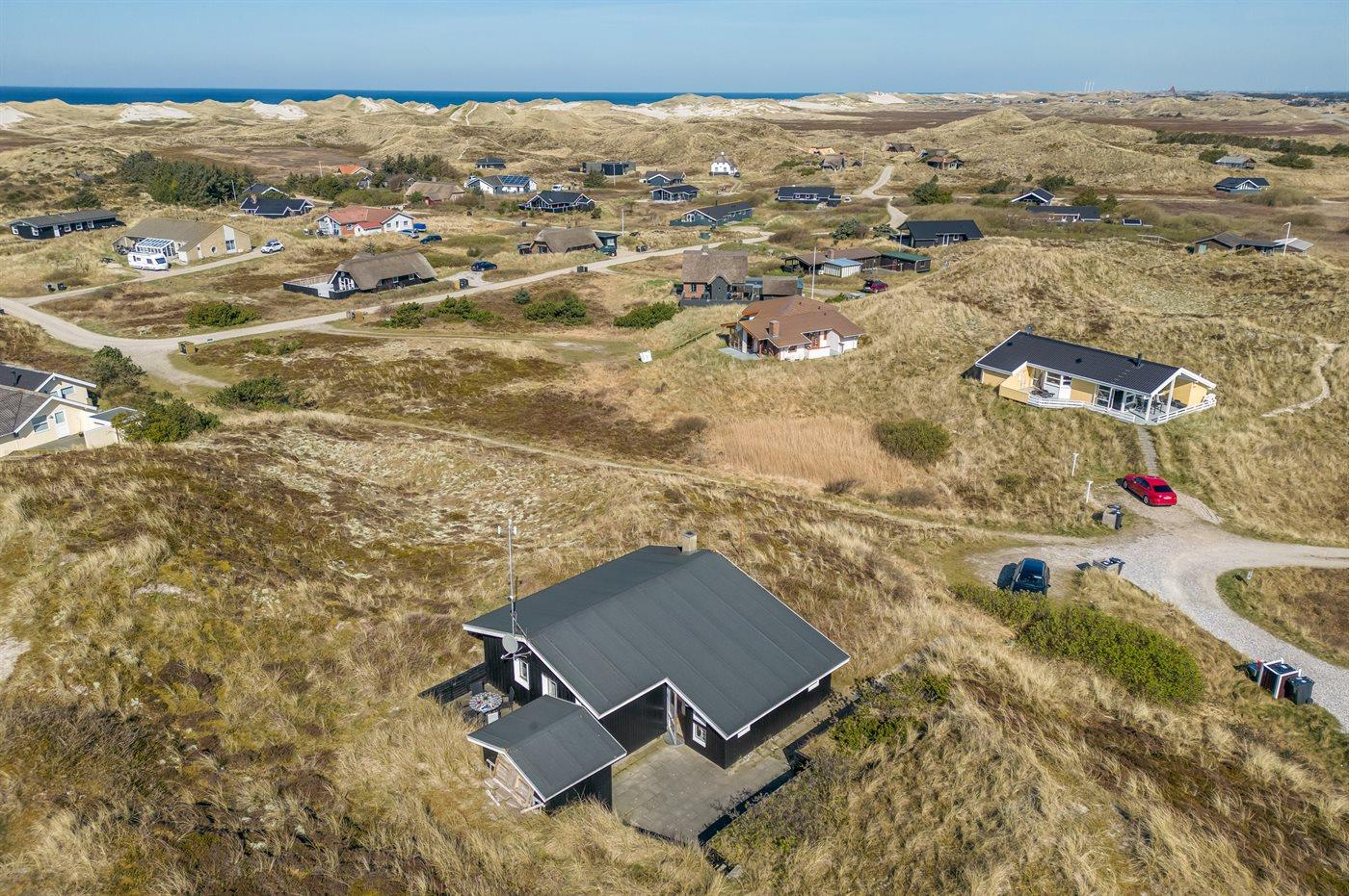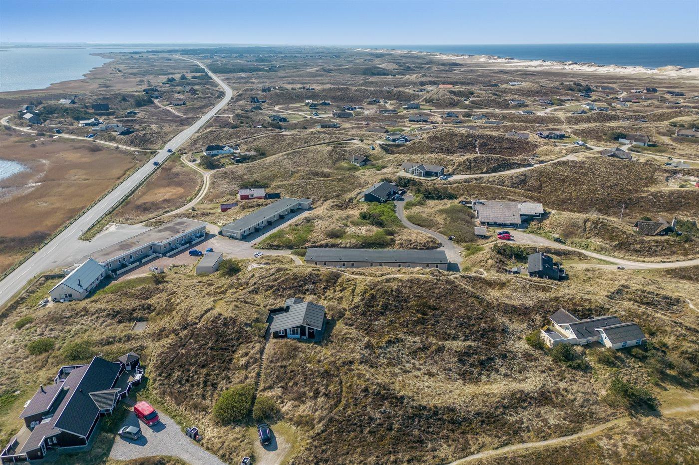 Ferieboligen er beliggende på en 2500 m² stor klitgrund. Der er 800 m til havet. Der er 200 m til fjorden. Nærmeste forretning er beliggende i en afstand af 1960 m. Til ferieboligen hører 45 m² terrasseareal. Der er redskabsrum. Parkering ved ferieboligen.