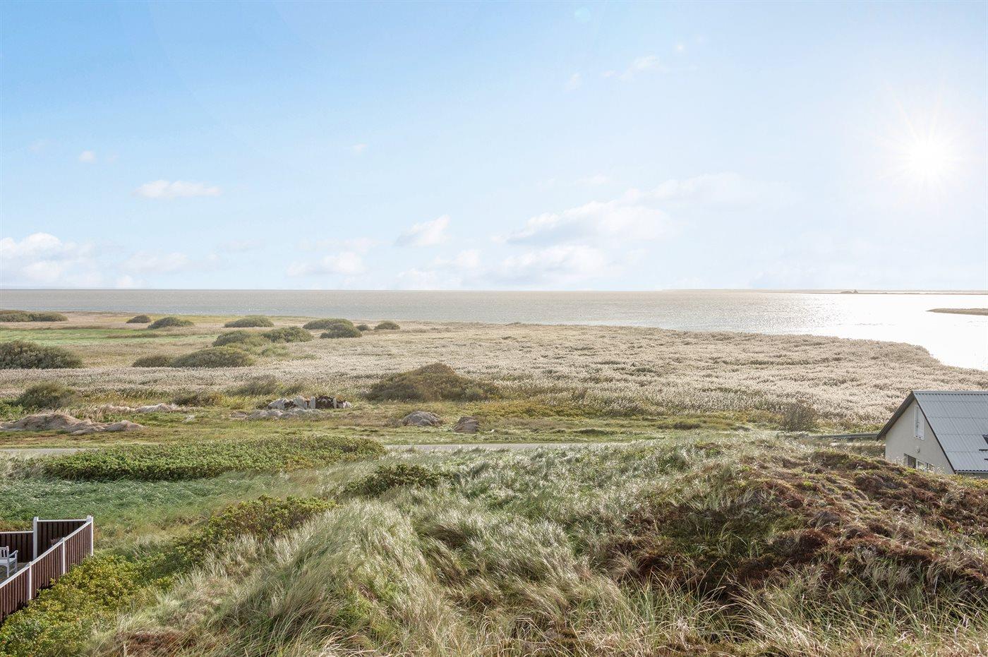 Hyggeligt sommerhus med fjordudsigt, stor klitgrund og ugenert terrasse nær Hvide Sande.