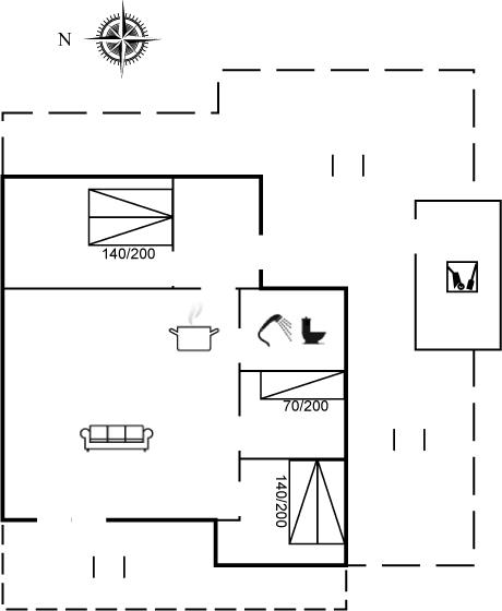 Der er i alt 3 soveværelser. Sovepladserne fordeler sig på: 4 sovepladser i dobbeltsenge. 1 soveplads i enkeltseng.