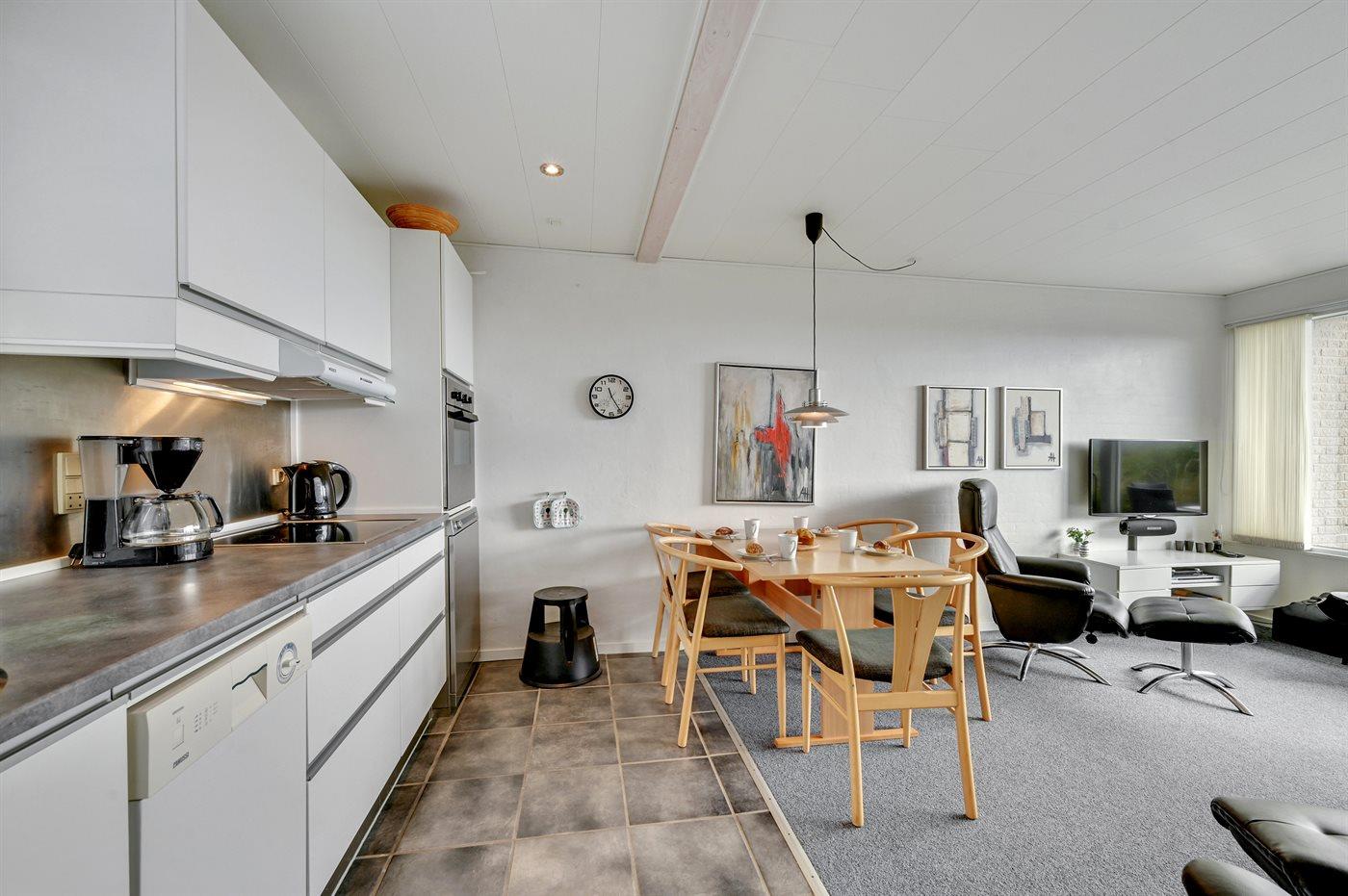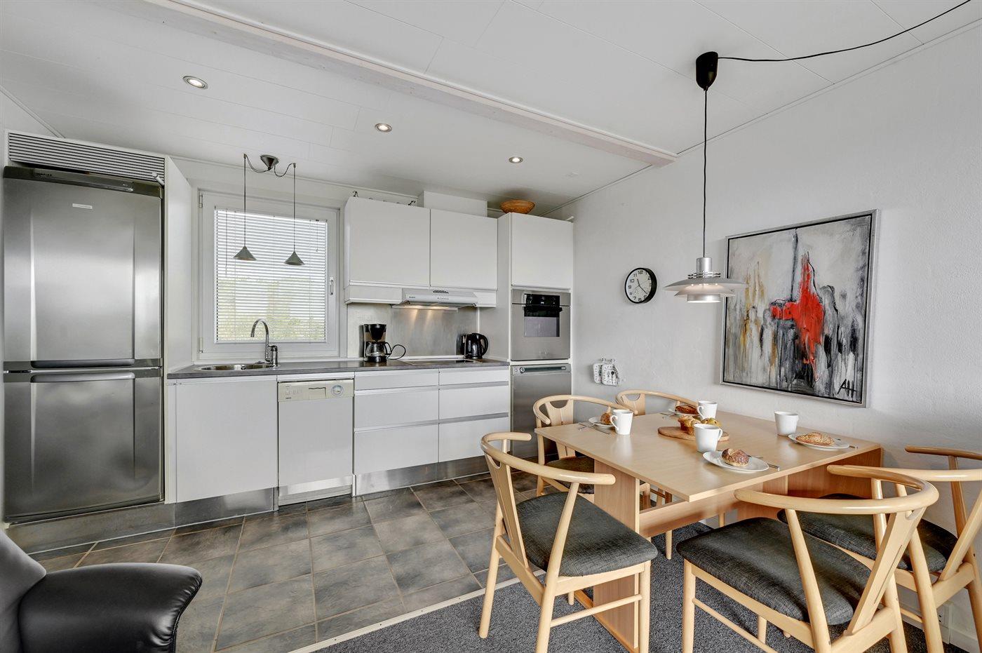 Køkkenet er udstyret med 1 køleskab. Der er 4 keramiske kogeplader, varmluftovn samt opvaskemaskine.