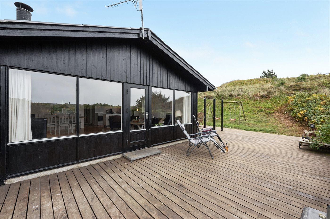 Ferieboligen er beliggende på en 2000 m² stor klitgrund. Der er 400 m til havet. Nærmeste forretning er beliggende i en afstand af 4500 m. Til ferieboligen hører 50 m² terrasseareal. Der er redskabsrum. Gynge. Parkering ved ferieboligen.