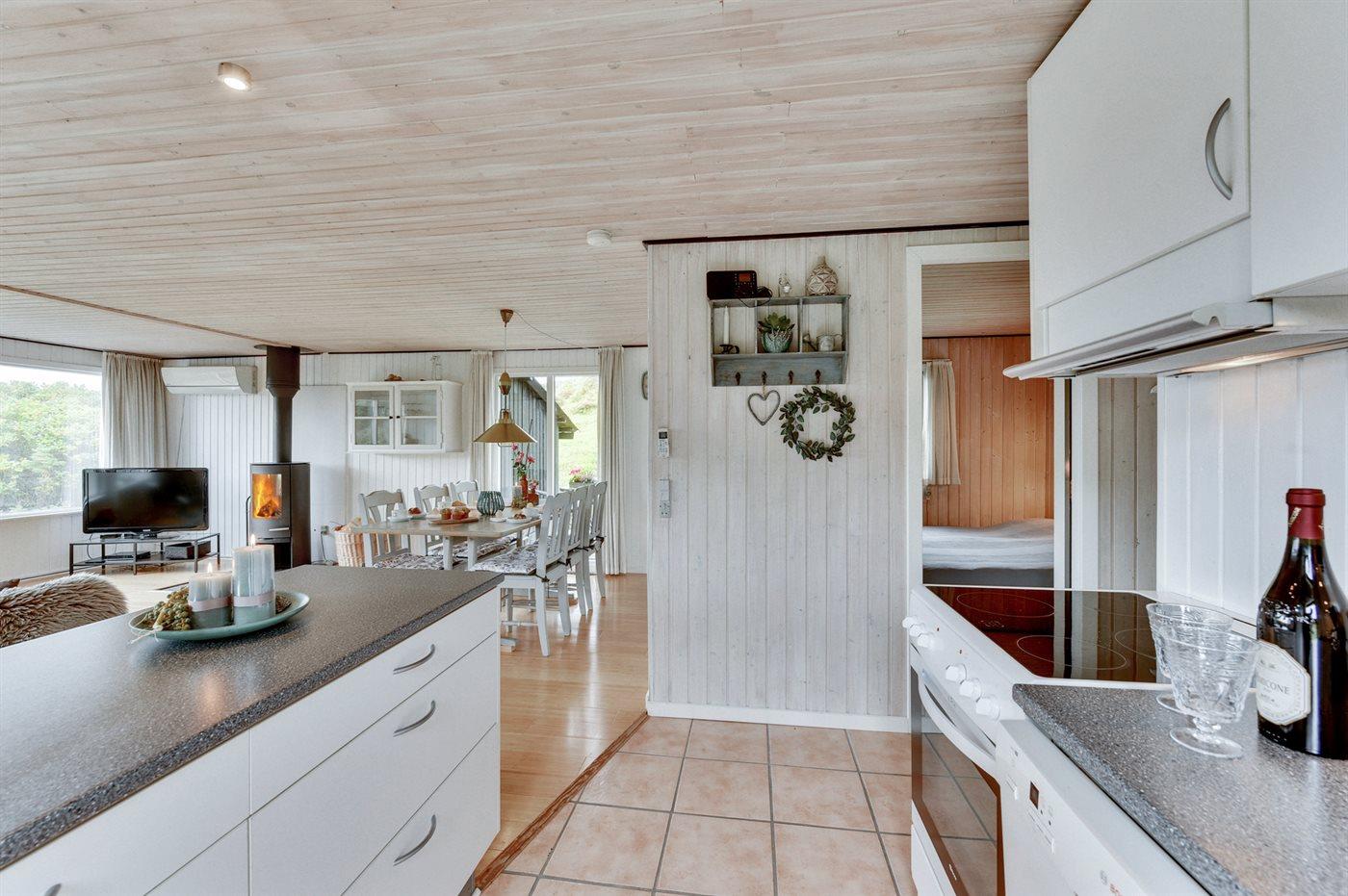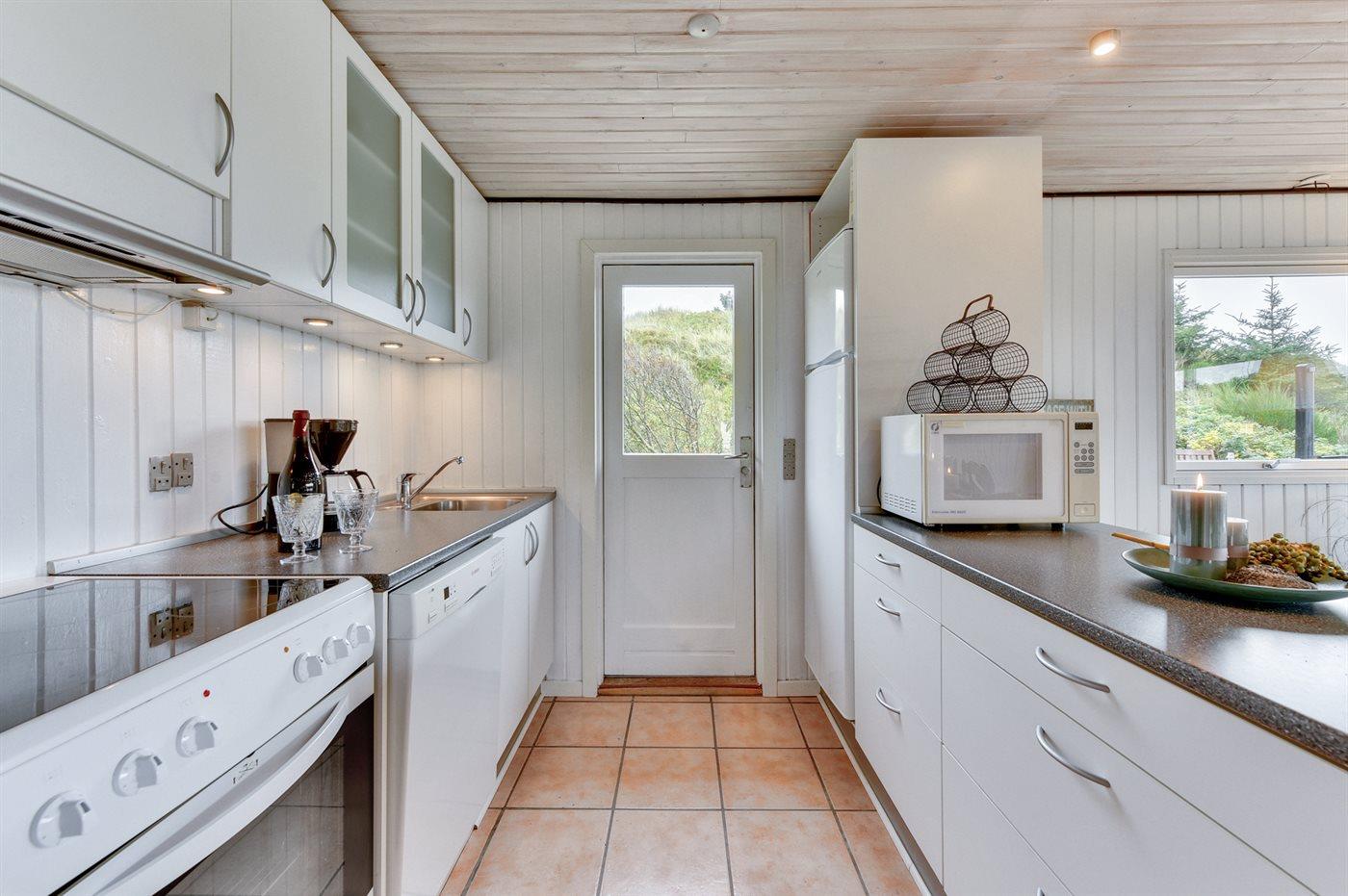 Køkkenet er udstyret med 1 køleskab. Der er 4 keramiske kogeplader, varmluftovn, mikrobølgeovn samt opvaskemaskine.
