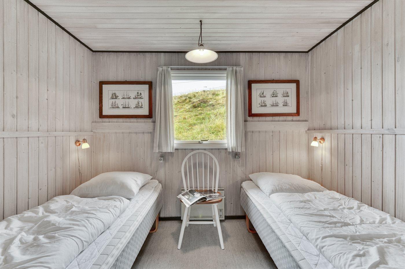 Der er i alt 3 soveværelser. Sovepladserne fordeler sig på: 2 sovepladser i dobbeltseng. 2 sovepladser i enkeltsenge. 2 sovepladser i køjeseng. 1 soveplads i sovesofa (enkelt). Derudover er der 1 stk. barneseng.