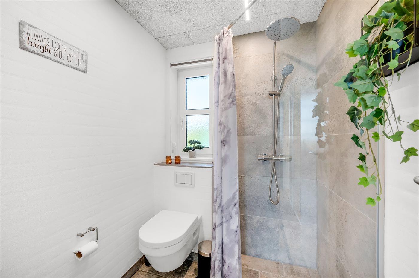 Der er 2 badeværelser med bruseniche og 2 toiletter. Der er gulvvarme på 2 badeværelser.. Badekar.
