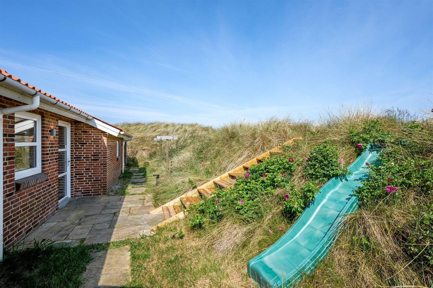 Ferieboligen er beliggende på en 2400 m² stor naturgrund. Der er 500 m til havet. Der er 500 m til fjorden. Nærmeste forretning er beliggende i en afstand af 2200 m. Til ferieboligen hører åbent terrasseareal. Rutchebane. Parkering ved ferieboligen.