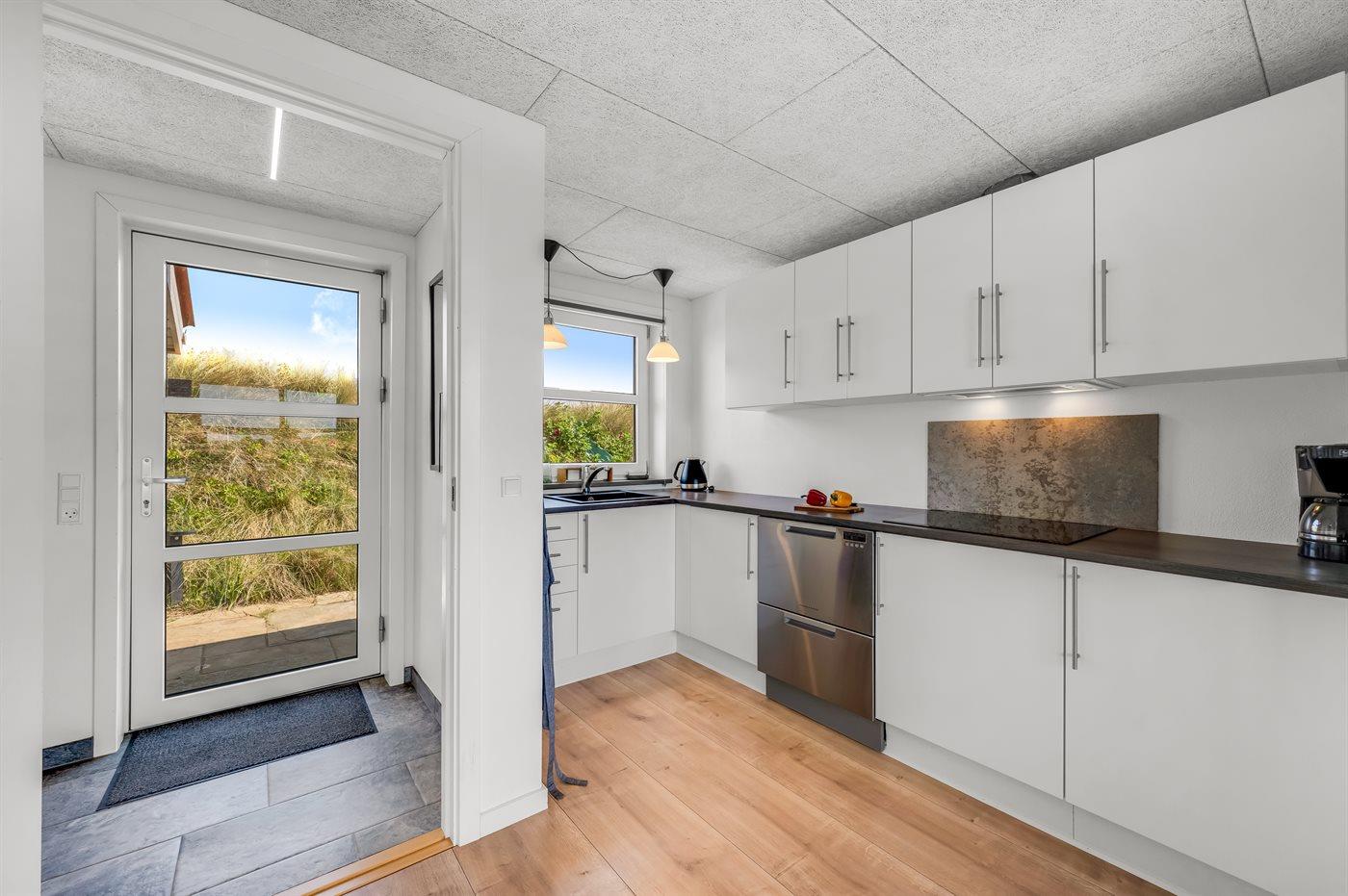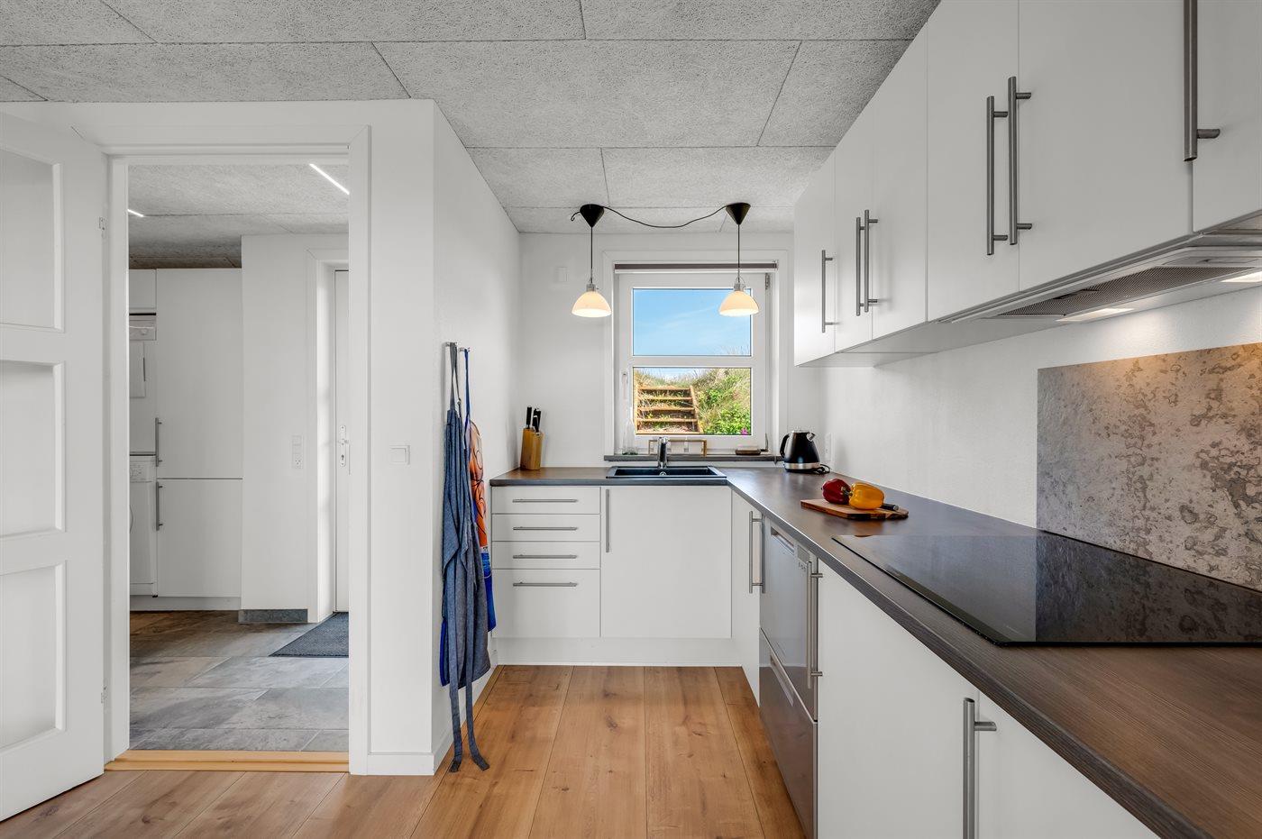 Køkkenet er udstyret med 1 køleskab. Der er 4 induktionskogeplader, varmluftovn, mikrobølgeovn samt opvaskemaskine.