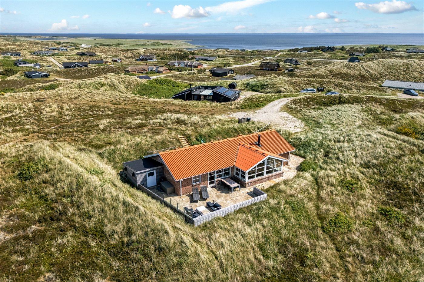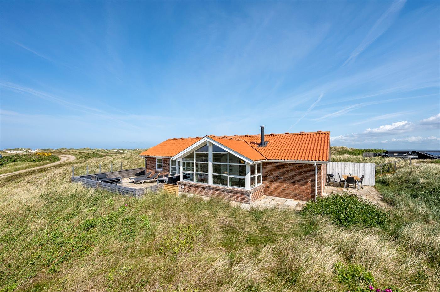 Skønt sommerhus på Vesterhavets klitter med fantastisk udsigt til hav, fjord og klitlandskab.