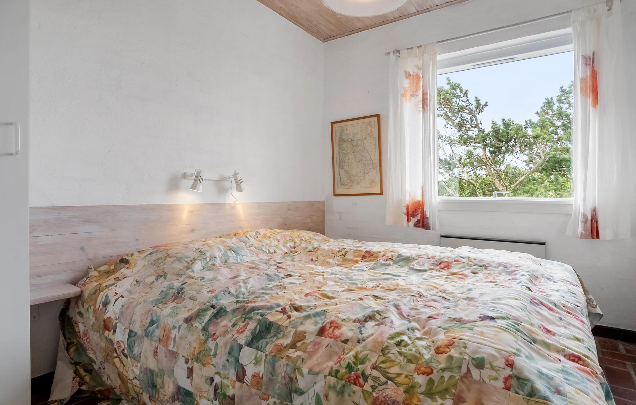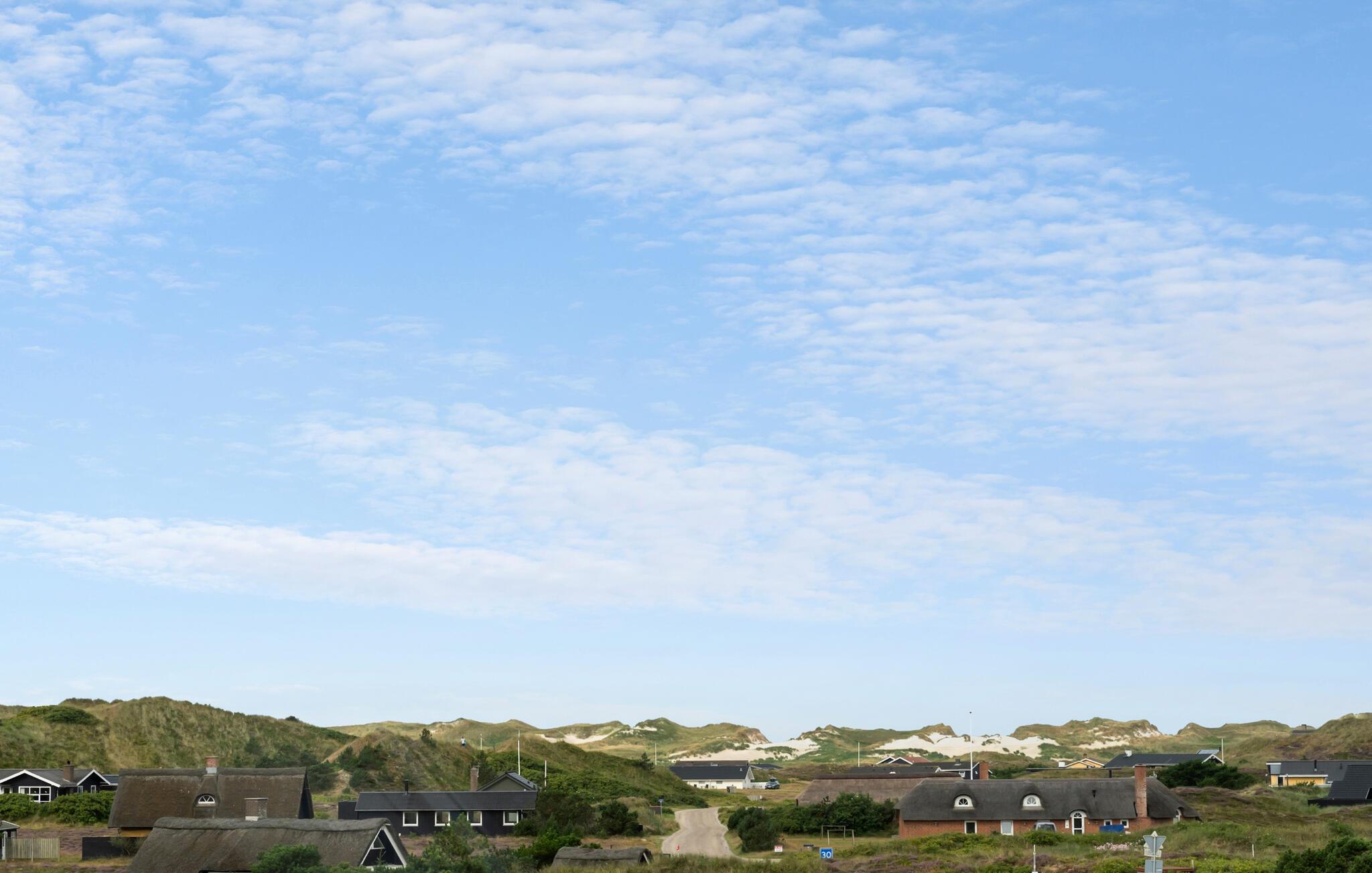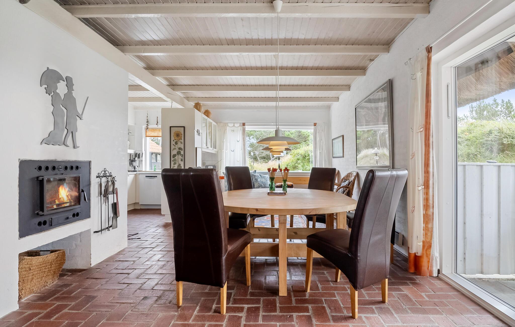 Tilbring en afslappende ferie i jeres indbydende feriehus, der på harmonisk vis kombinerer natur, ro og atmosfære. Huset byder på en betagende udsigt over det omkringliggende landskab og den nærliggende Ringkøbing Fjord. Hyg jer sammen ovenpå, hvor to komfortable sofaer med udsigt over de grønne områder venter på jer. Slap af foran fjernsynet, læs en god bog, eller nyd blot udsigten gennem panoramavinduet. Den lyse, åbne opholdsstue i stueetagen med pejs og spiseplads inviterer jer til at tilbringe tid sammen. Køkkenet er praktisk udstyret og byder på udsigt over klitterne.