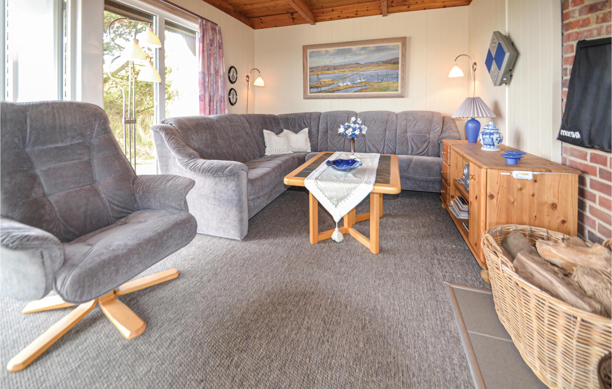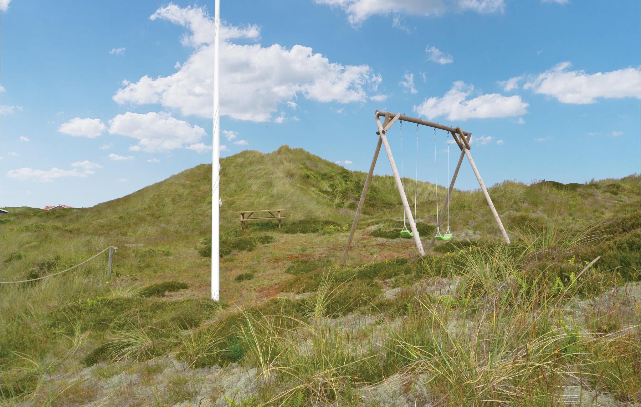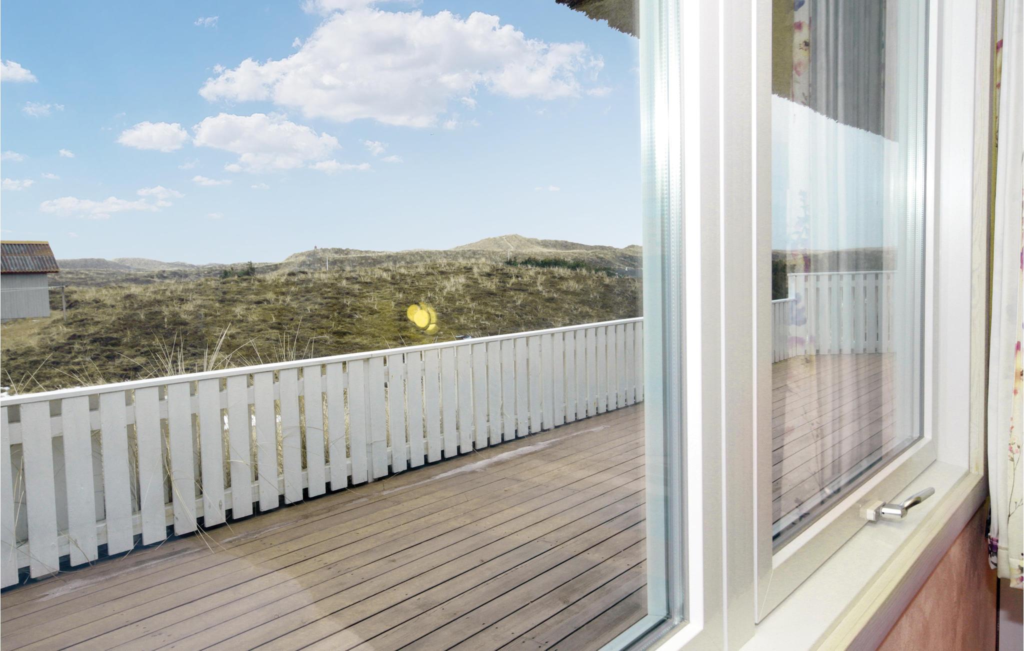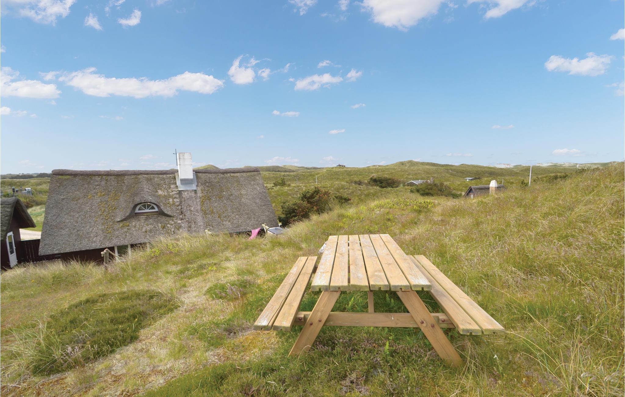 Nyd den helt fantastiske udsigt over land og fjord, fra grunden dette hyggelige stråtækte sommerhus ligger på i Skodbjerge. Området er et af de meget populære ved vestkysten nær det brusende hav, den skønne strand og de mange kystbyer med havne, restauranter, cafeer og meget andet. Her kan I dyrke mange former for fritidsaktiviteter: cykle, gå, løbe, wind- og kitsurfe - og bygge store slotte i det våde sand, samt naturligvis springe i bølgerne lige som I har lyst.