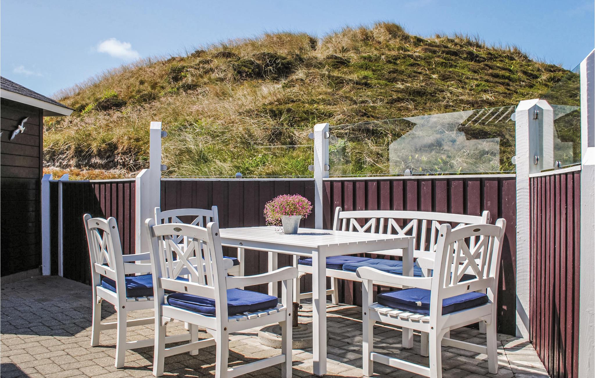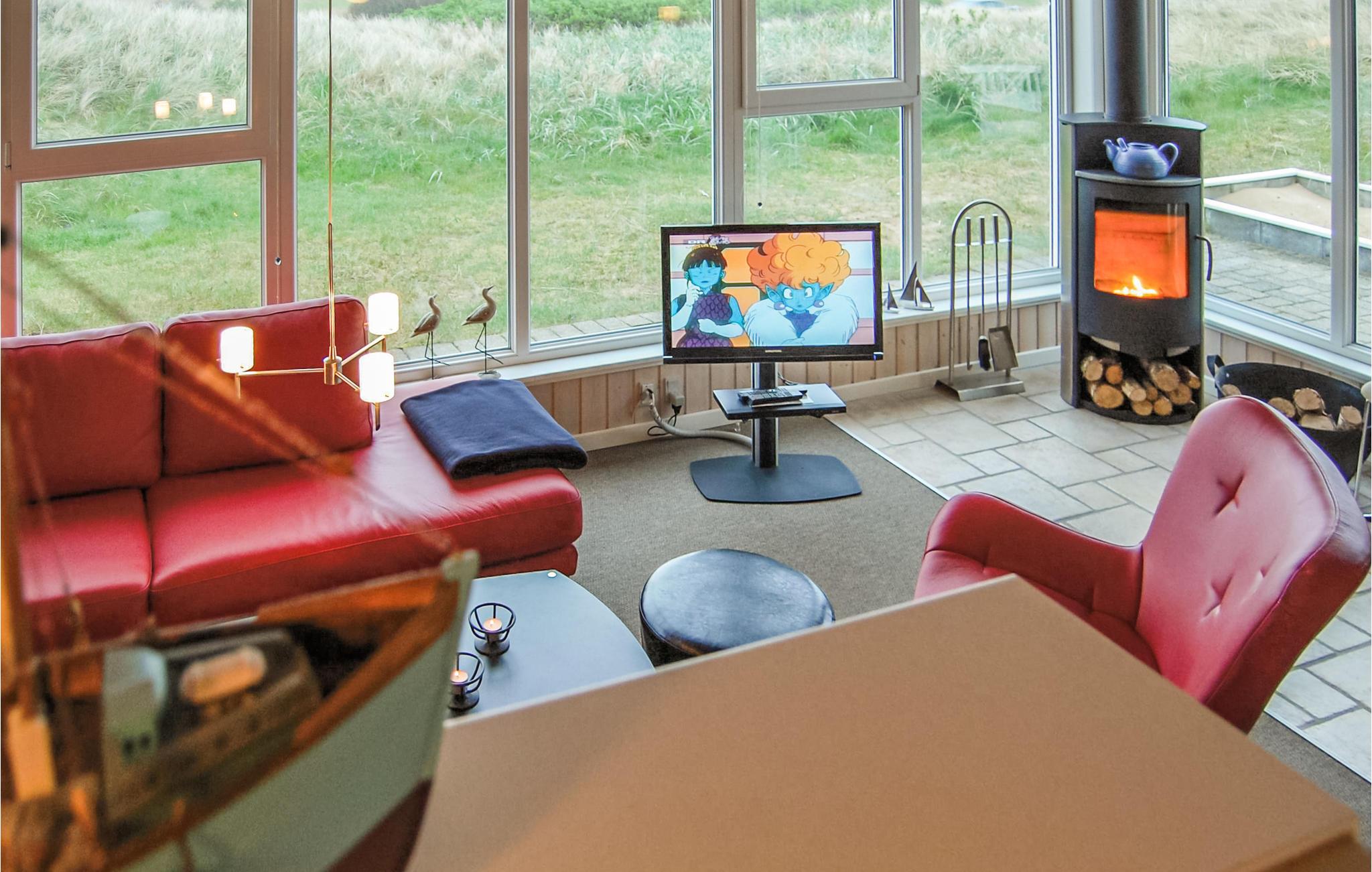 Dette dejlige feriehus ligger højt i klitterne, og fra stuen er der en storslået udsigt over Ringkøbing Fjord, som ligger kun 100 m fra huset. Det er bygget i forskudt plan og de indvendige vægge står rå. Det flotte køkken er moderne og stilfuldt og udstyret med alle faciliteter. Der er delvis klinkegulve og faste tæpper i huset. I kan boltre jer i den 17 m² store pool, som opvarmes af en miljøvenlig og energibesparende varmepumpe. Nyde bobler og brus i det 2 pers. spabad hvor I efterfølgende kan blive grundigt opvarmet i den lækre sauna, der har en unik udsigt over fjorden. Fra terrasserne mod syd og øst har I udsigt til fjorden. Mod vest er der en delvist overdækket terrasse, hvor I kan nyde aftensolen. Området byder på rigtig gode surfmuligheder.