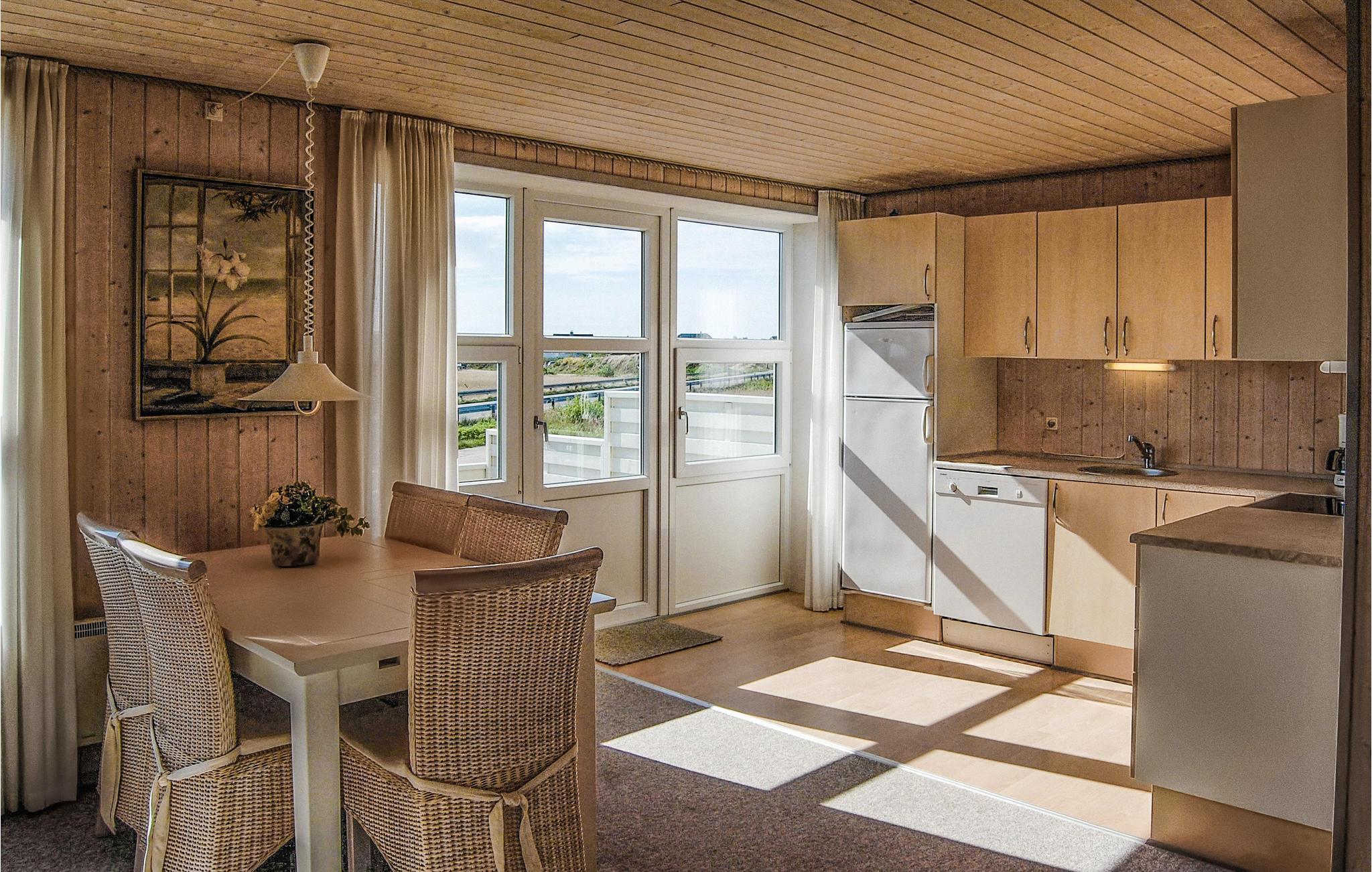 Vil I gerne holde ferie i overskuelige rammer, der byder på fantastiske oplevelser for krop og sind, så er dette ferierækkehus lige noget for jer. Her bydes I nemlig velkommen til et kønt, lyst og velindrettet rækkehus med panoramaudsigt over Ringkøbing Fjord fra stue og køkken såvel som den østvendte terrasse. Aftensolen kan nydes på husets vestterrasse, og området Skodbjerge har store, fredede klitområder, der er velegnede til vandreture hele året. I området kan der også prøves kræfter med diverse vandsportsaktiviteter - tag eksempelvis et minikursus i windsurfing, eller kast jer ud i en tur på vandski-kabelbanen.