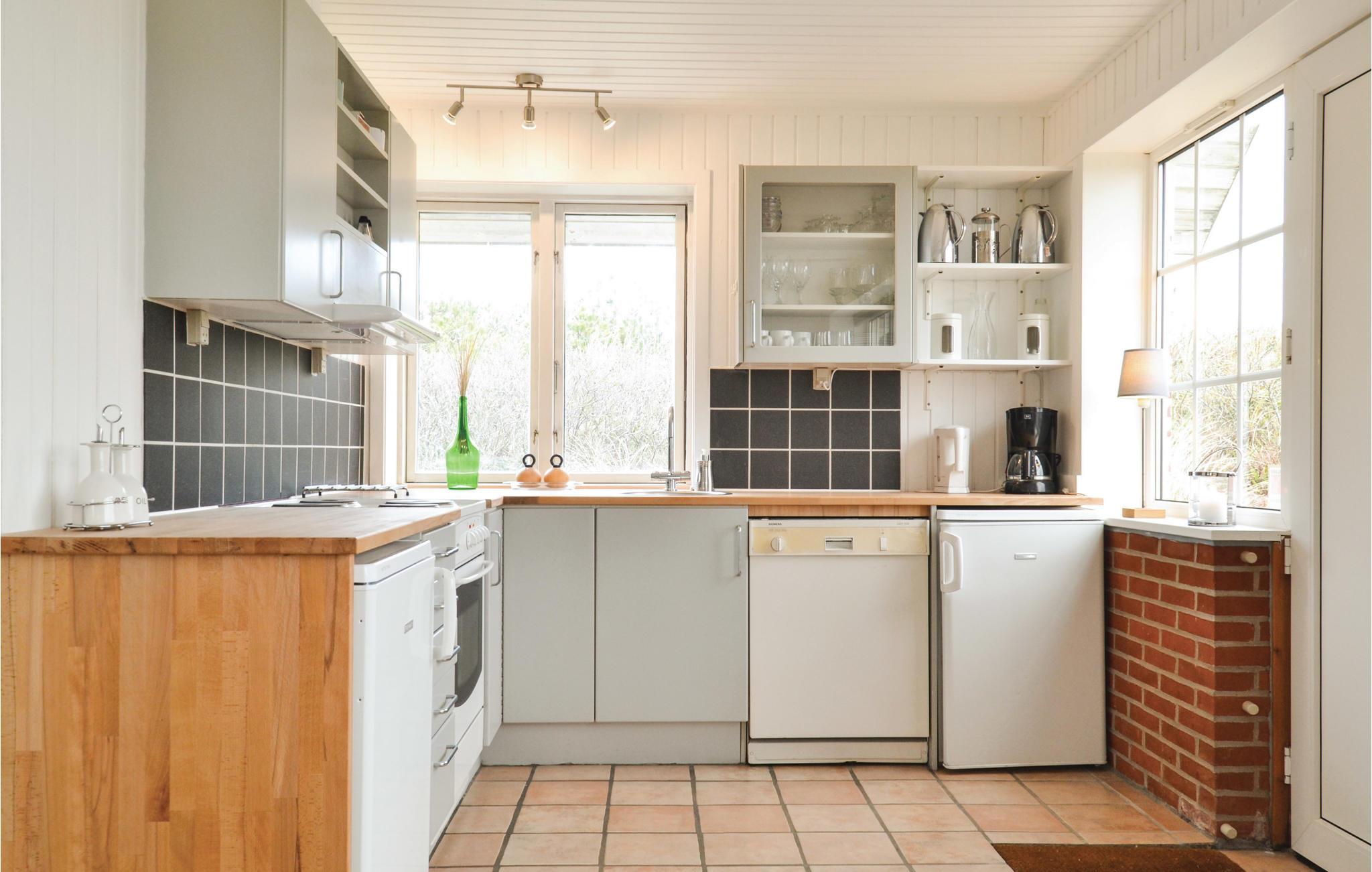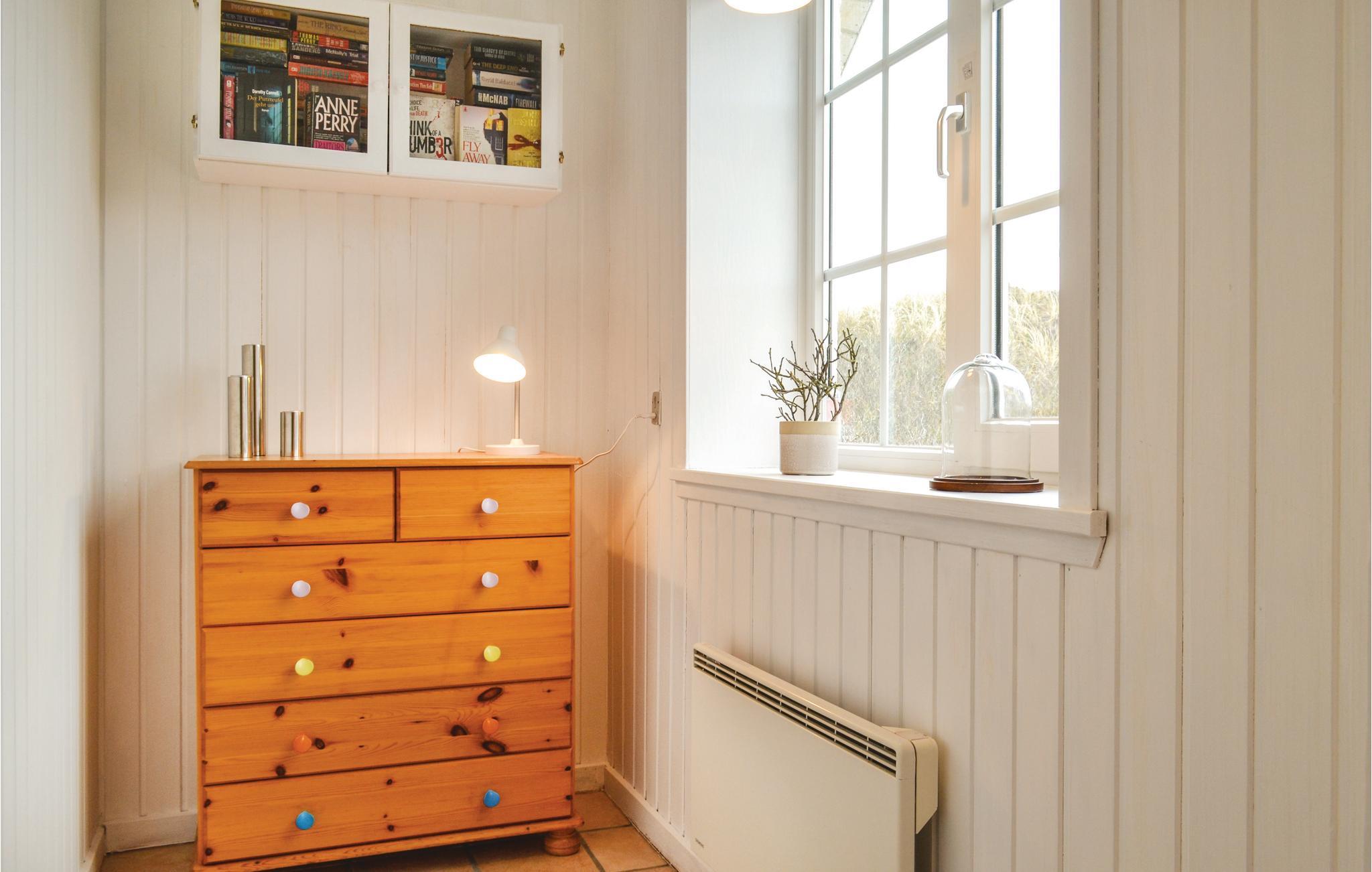Charmerende sommerhus beliggende på toppen af en klit med en fantastisk udsigt over Ringkøbing Fjord. Nyd morgenkaffen og solopgangen fra den skønne spisekrog - udsigten bliver ikke bedre. Huset er lyst og hyggeligt indrettet med køkken og stue i sammenhæng med hinanden, her nydes gode måltider eller afslapning foran pejsens knitren. De to dejlige soveværelser er hyggeligt indrettet og i badeværelset er vaskemaskinen installeret. Desuden et ekstra lille depotrum til fodtøj og overtøj. Sommerdagene nydes fra terrassen, hvor der er en forrygende udsigt over fjorden, klitter og landskabet. Huset ligger på en klittop, og I skal via en trappe, for at komme op til huset - bilen kan parkeres nedenfor trappen.