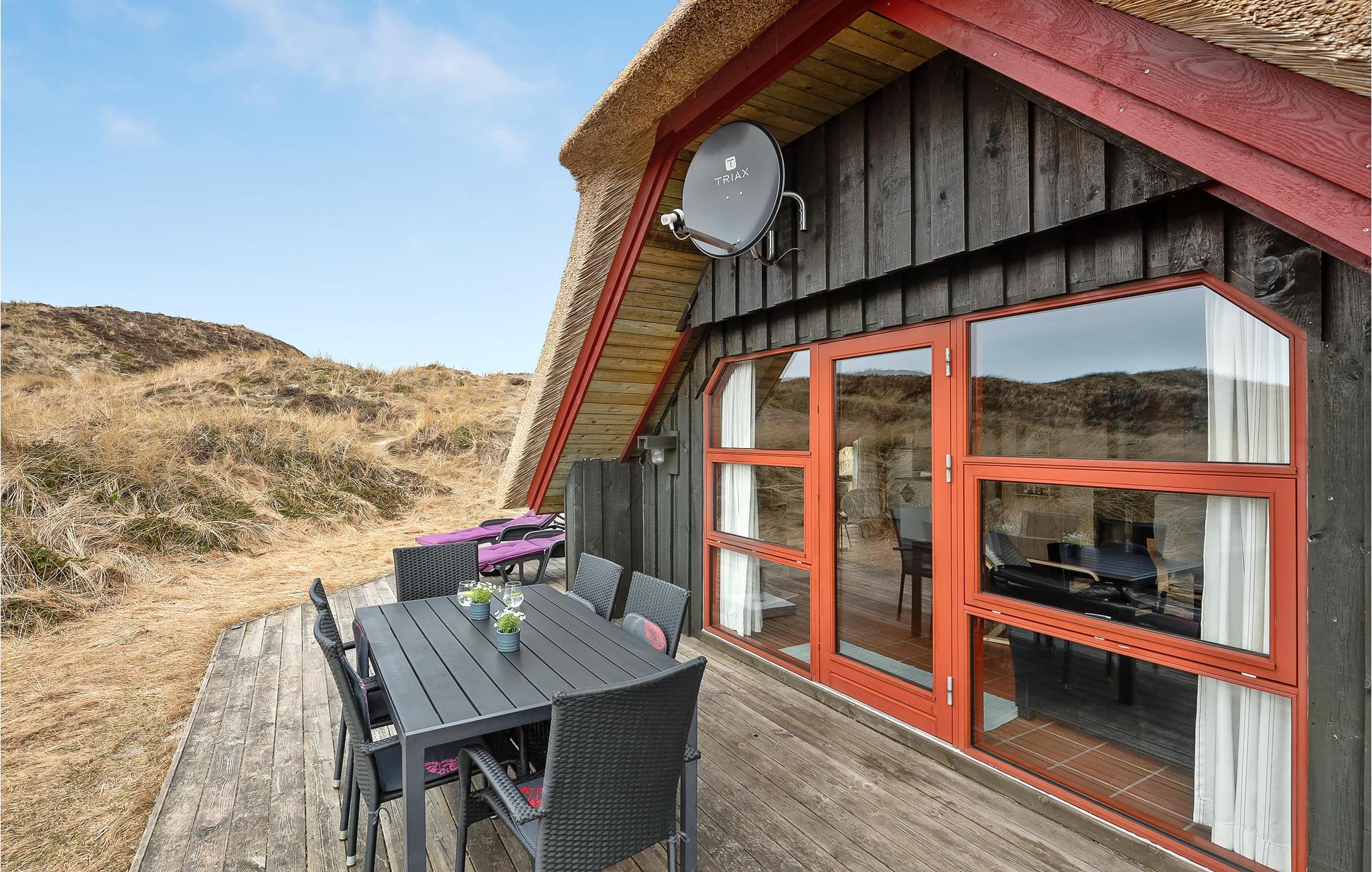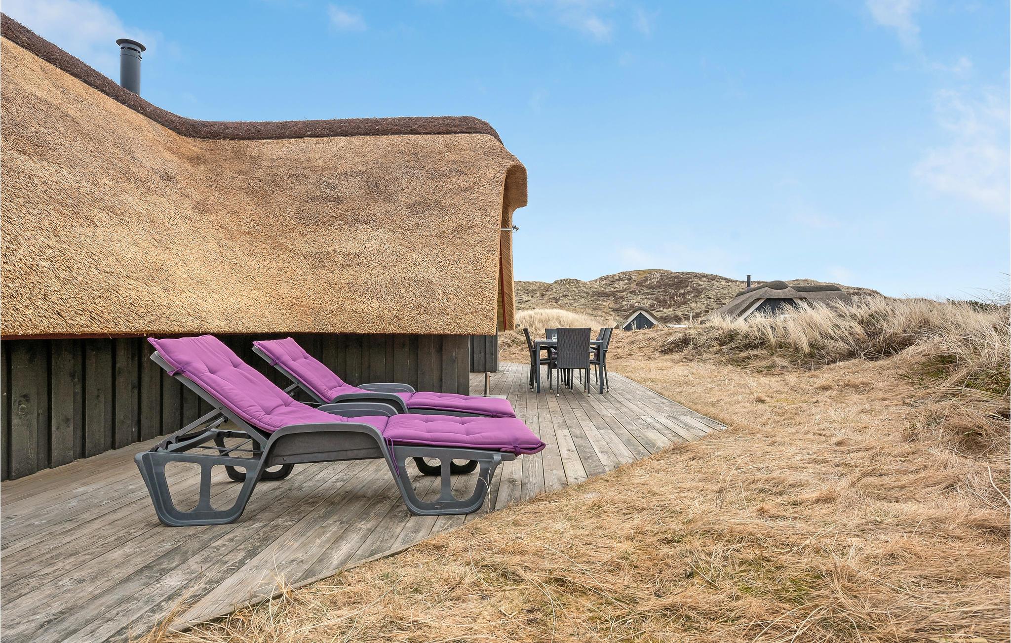 Fritidshus ved Vesterhavet og Ringkøbing Fjord med sauna, brændeovn og stor terrasse, perfekt til familieferie.