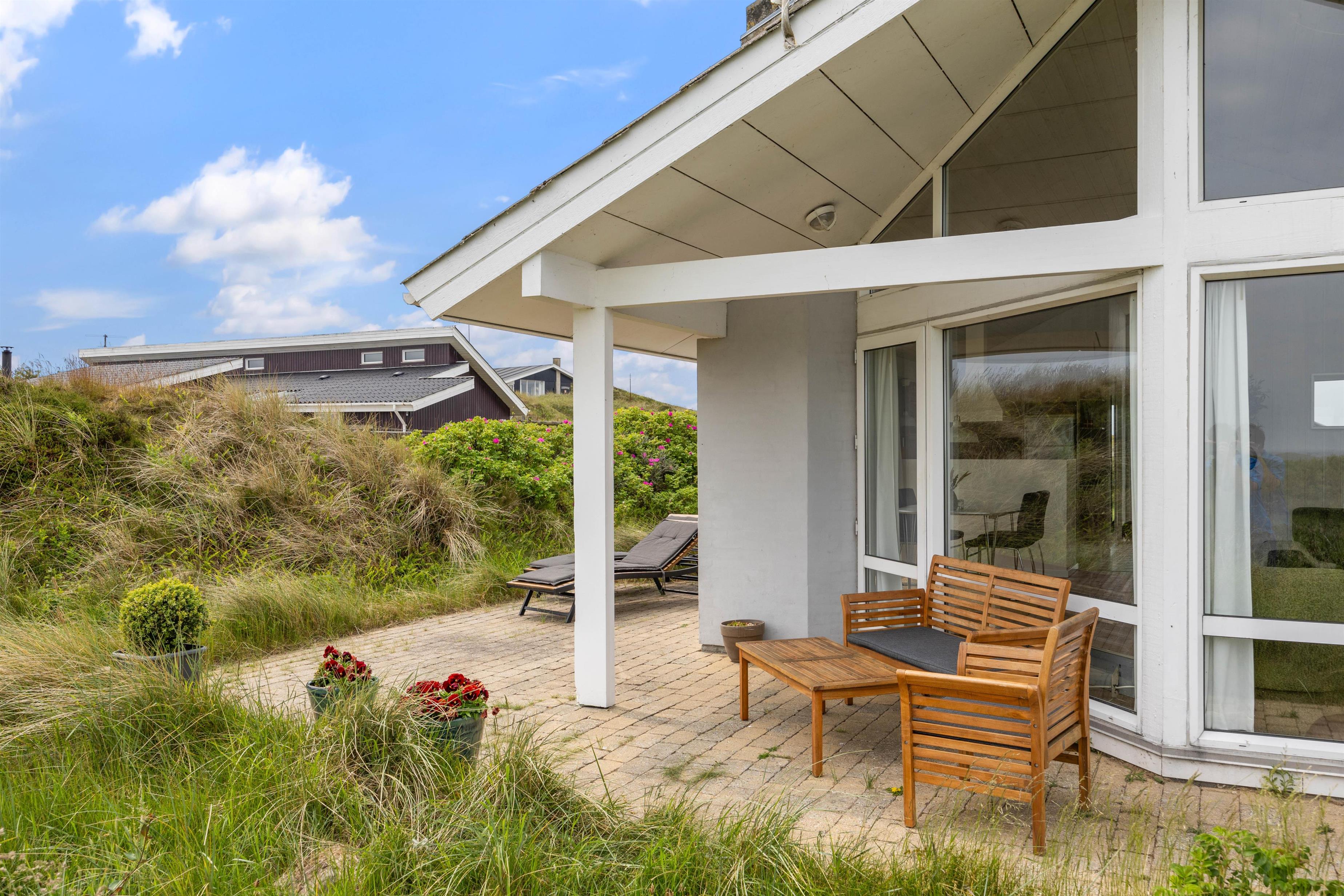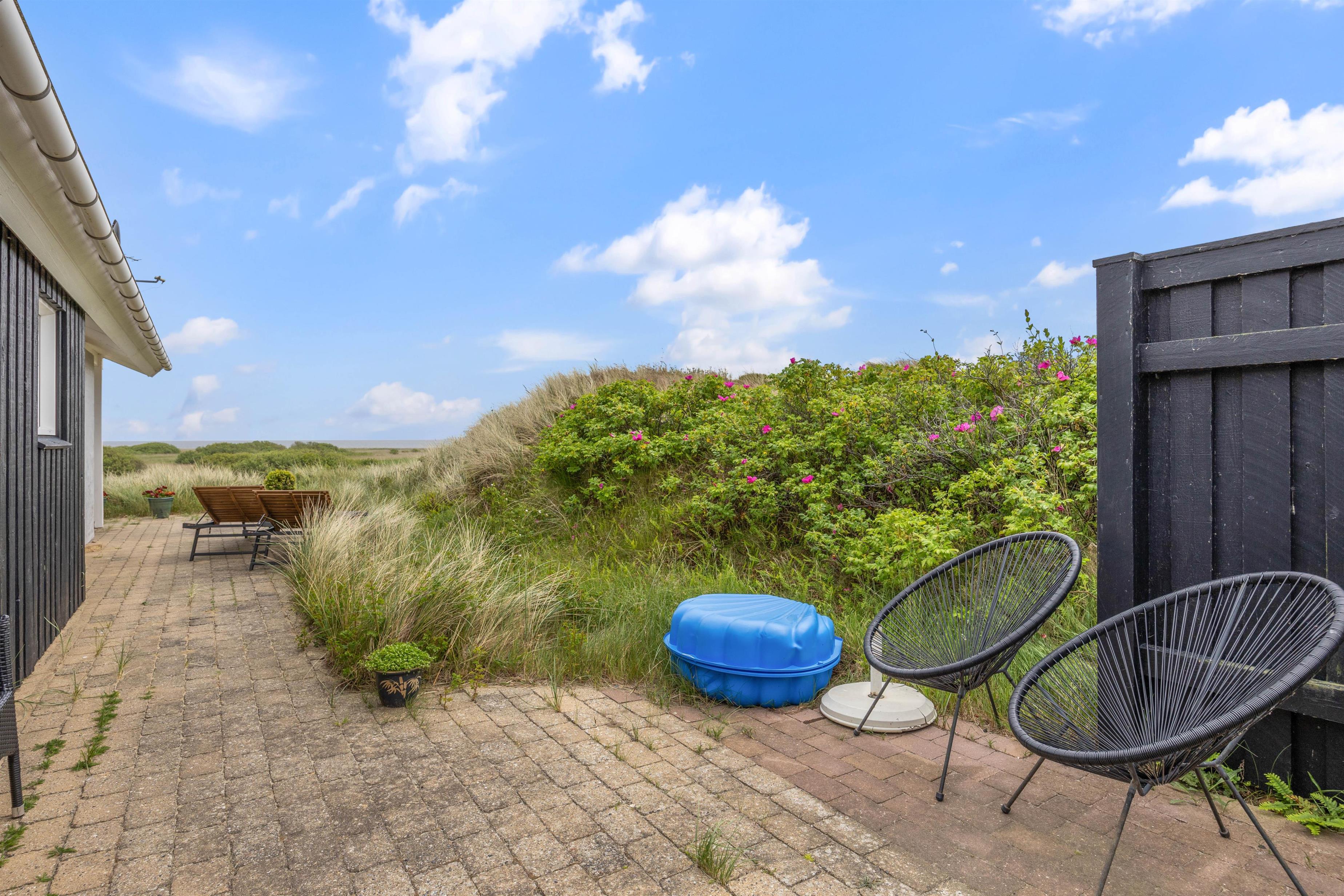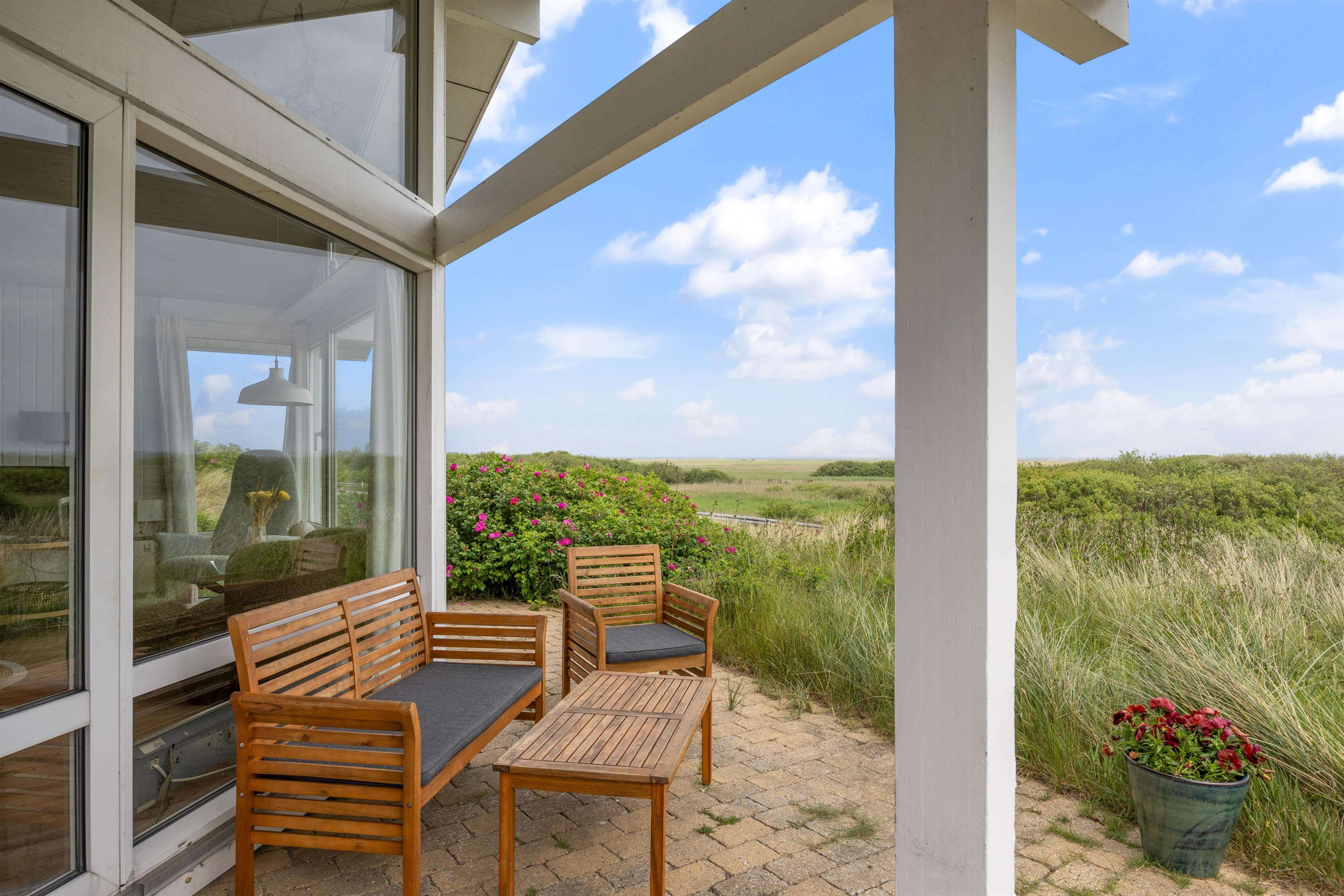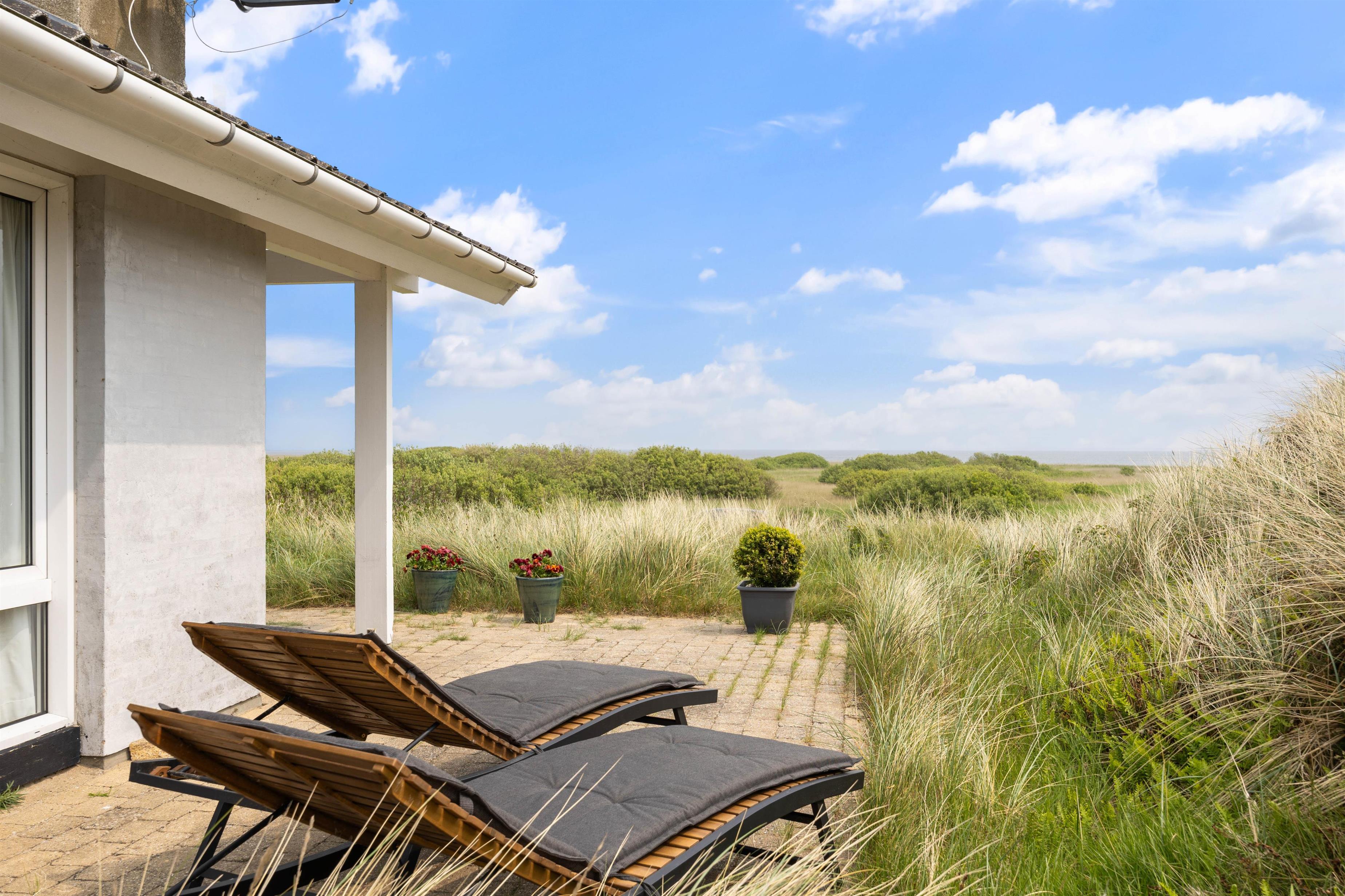 Sommerhuset har en fantastisk belligenhed på en skøn klitgrund med udsigt til fjorden. Fra stuen har i direkte udgang til den dejlige terrasse, som strækker sig fra øst- til vestsiden af feriehuset. En del af terrassen er afskærmet, så I kan sidde i læ for vinden. Dagen kan afsluttes med et lækkert grillmåltid, mens solen går ned i baggrunden.