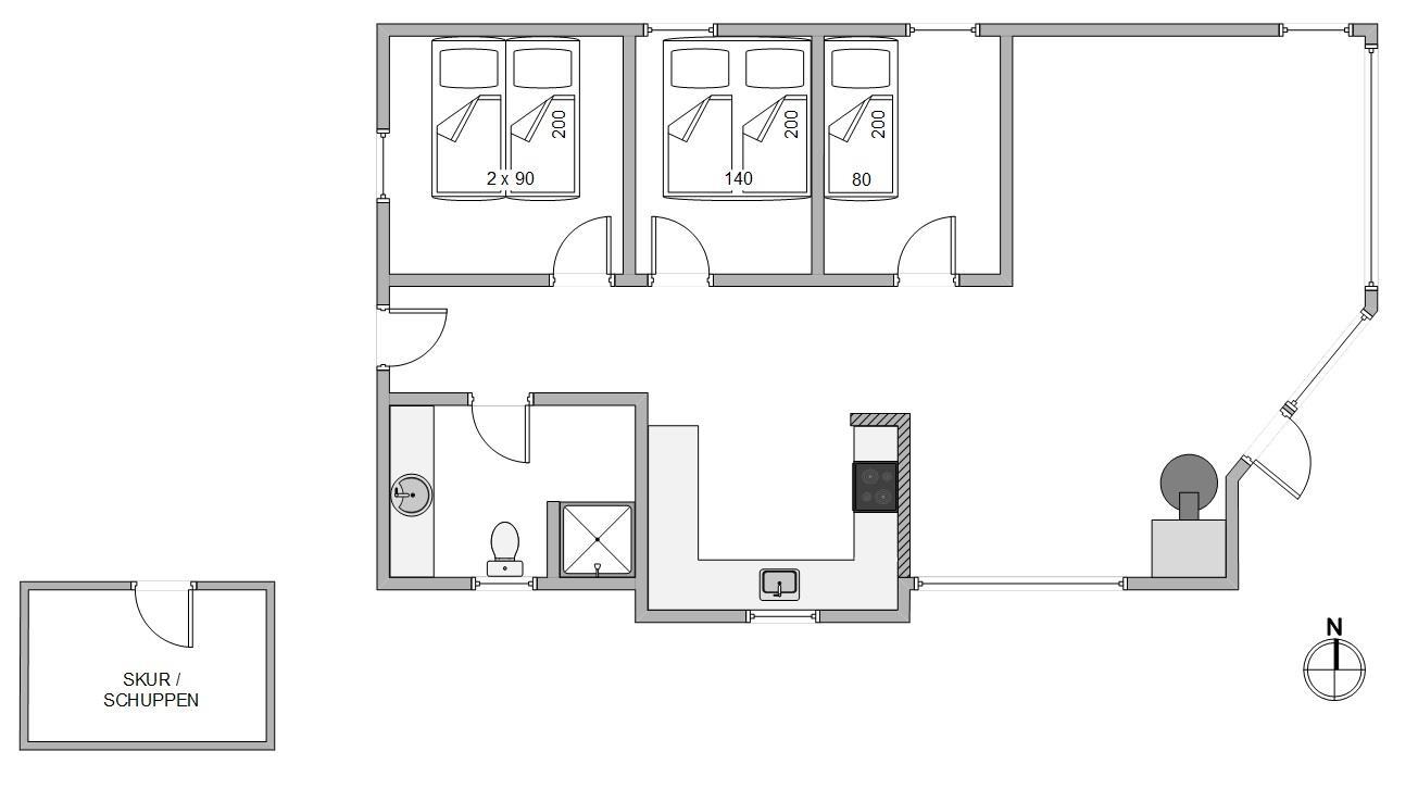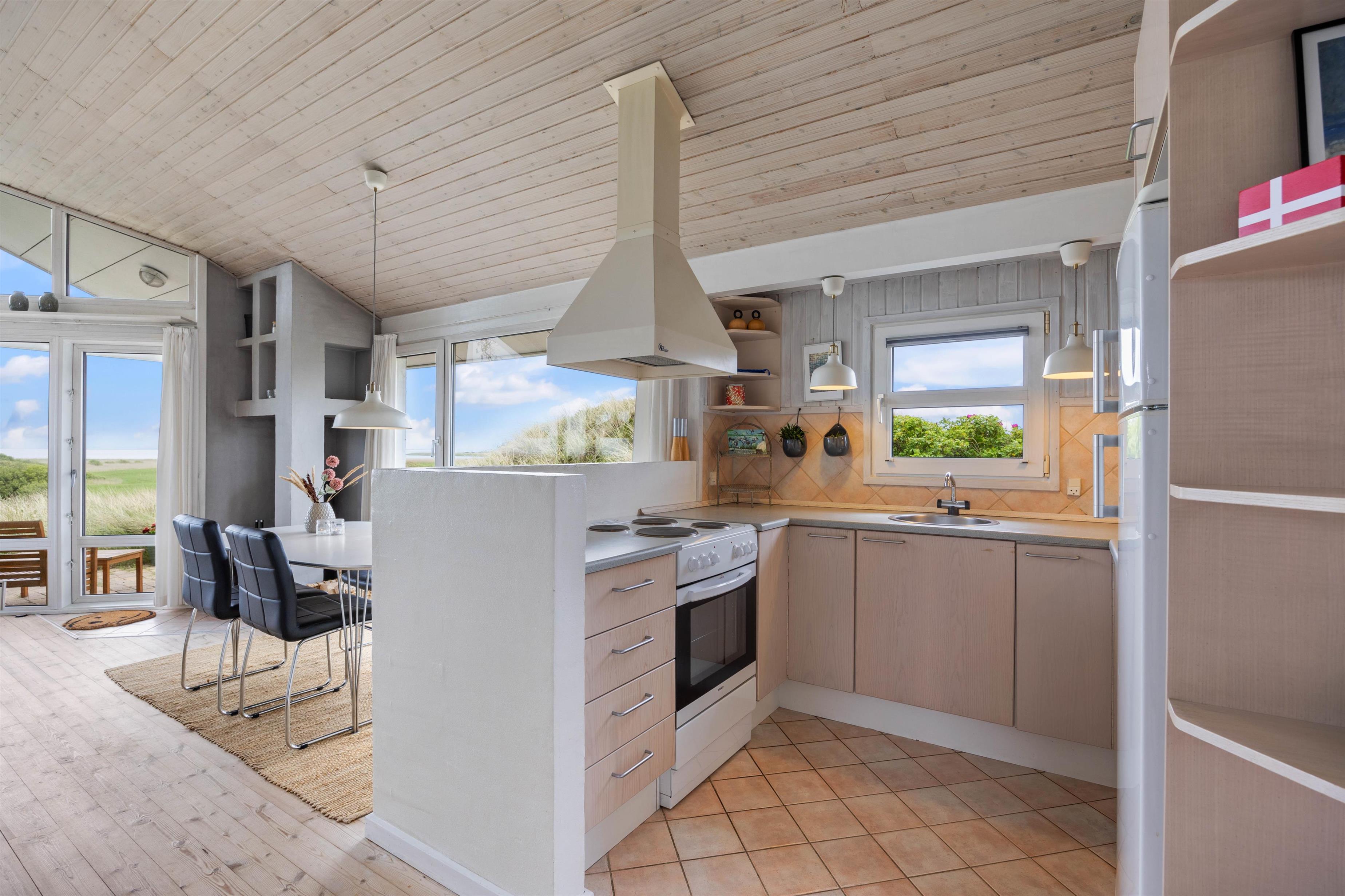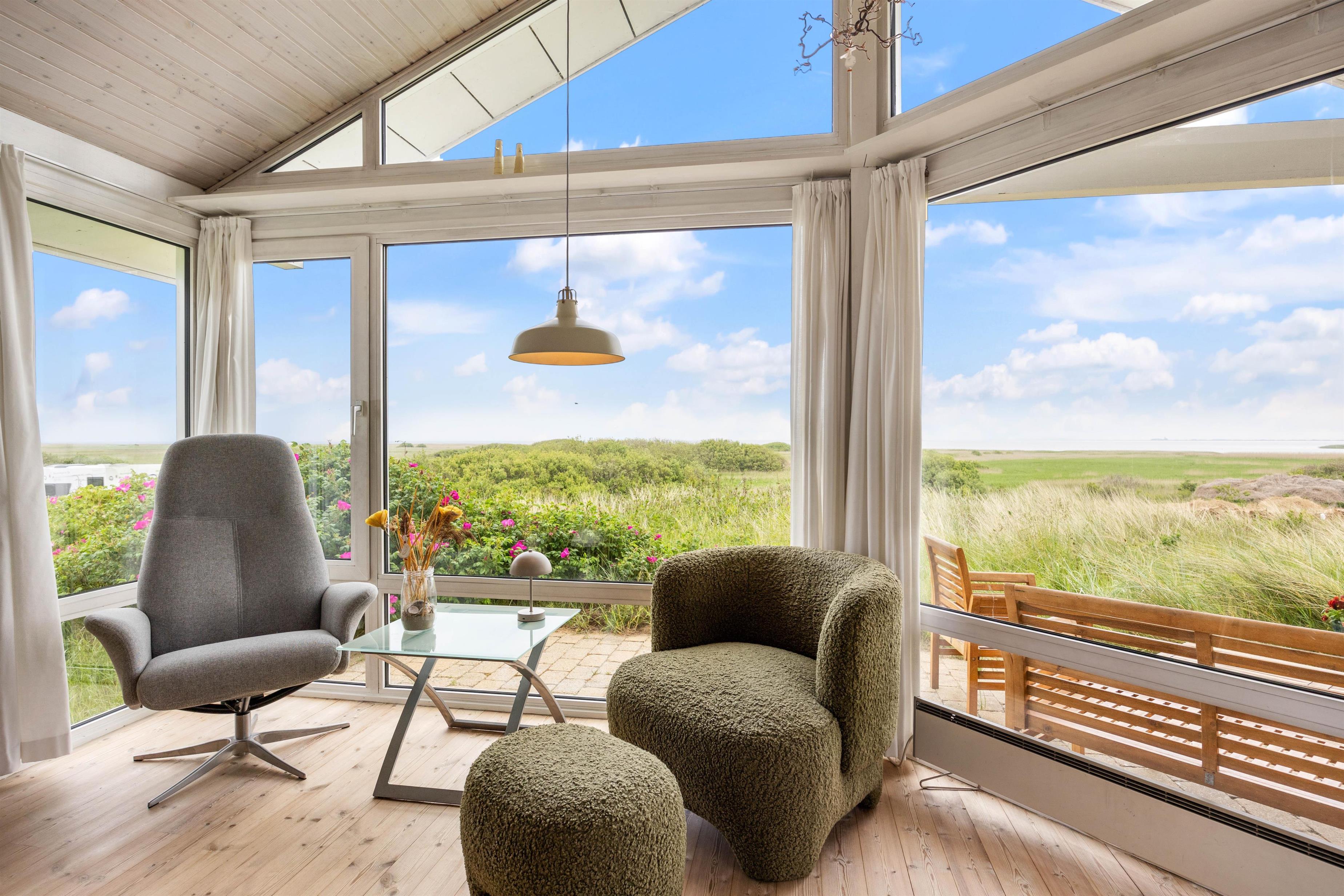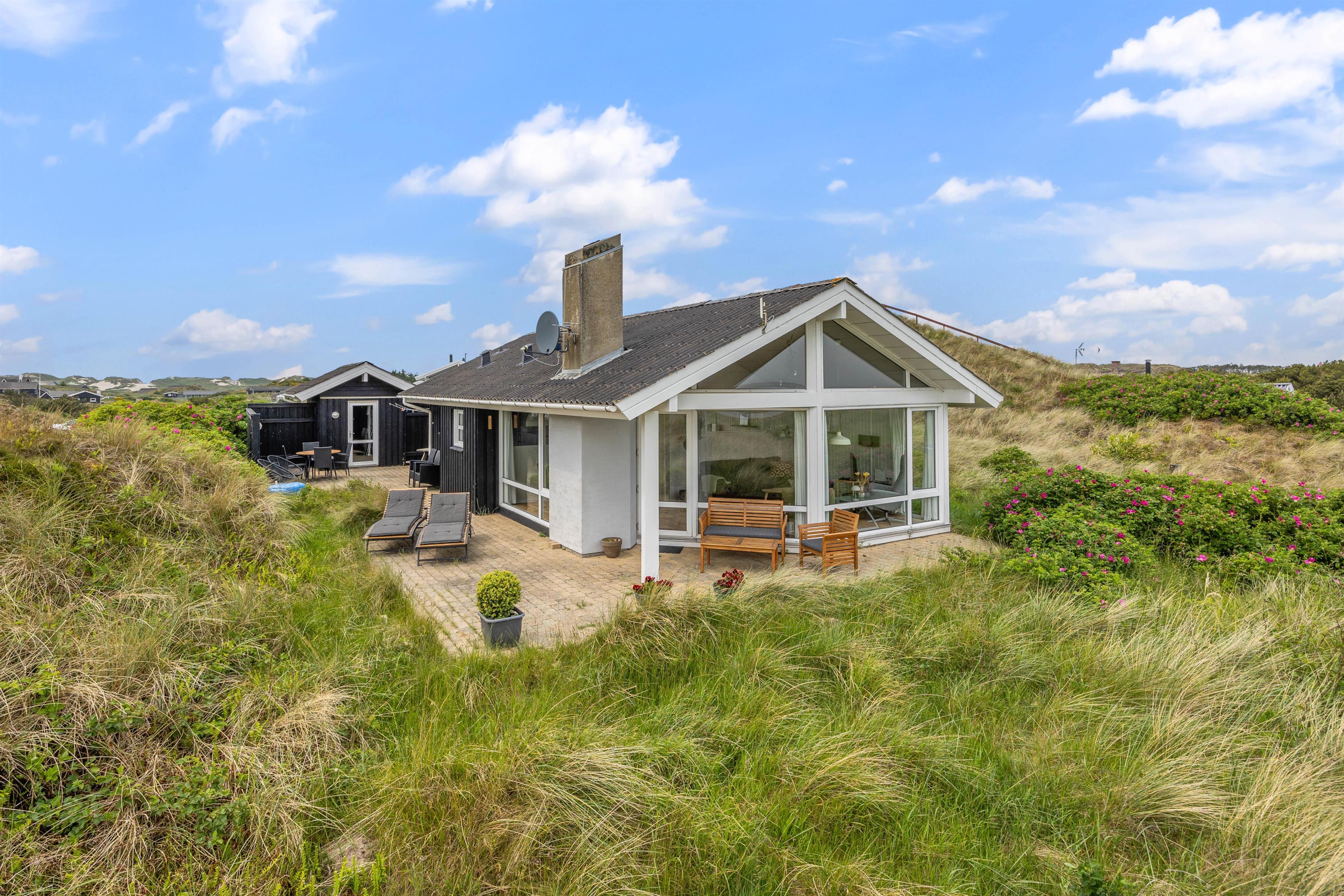 Sommerhuset har en fantastisk belligenhed på en skøn klitgrund med udsigt til fjorden. Fra stuen har i direkte udgang til den dejlige terrasse, som strækker sig fra øst- til vestsiden af feriehuset. En del af terrassen er afskærmet, så I kan sidde i læ for vinden. Dagen kan afsluttes med et lækkert grillmåltid, mens solen går ned i baggrunden.