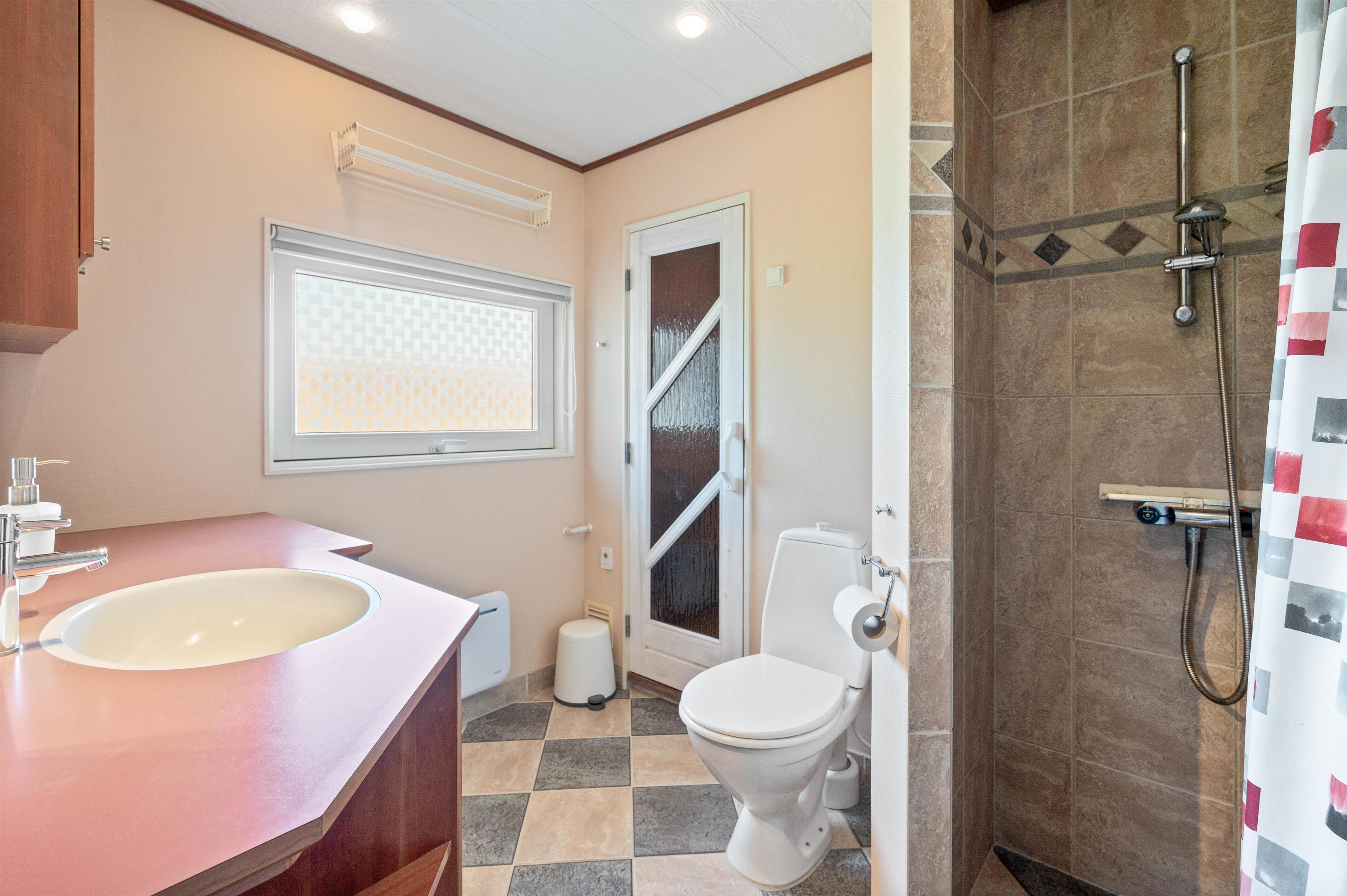 På badeværelset, som har gulvvarme, kan I slappe af i saunaen efter en lang gåtur ved stranden. Her er der også både vaskemaskine og tørretumbler, så I har mulighed for at have rene håndklæder til morgendagens strandtur.
