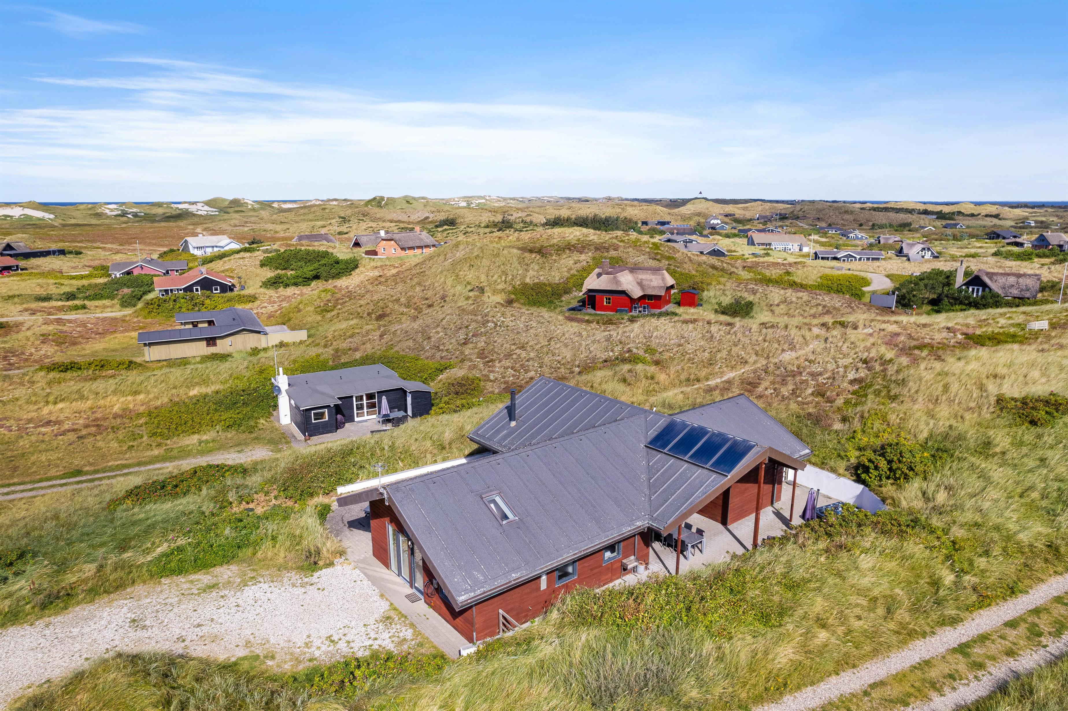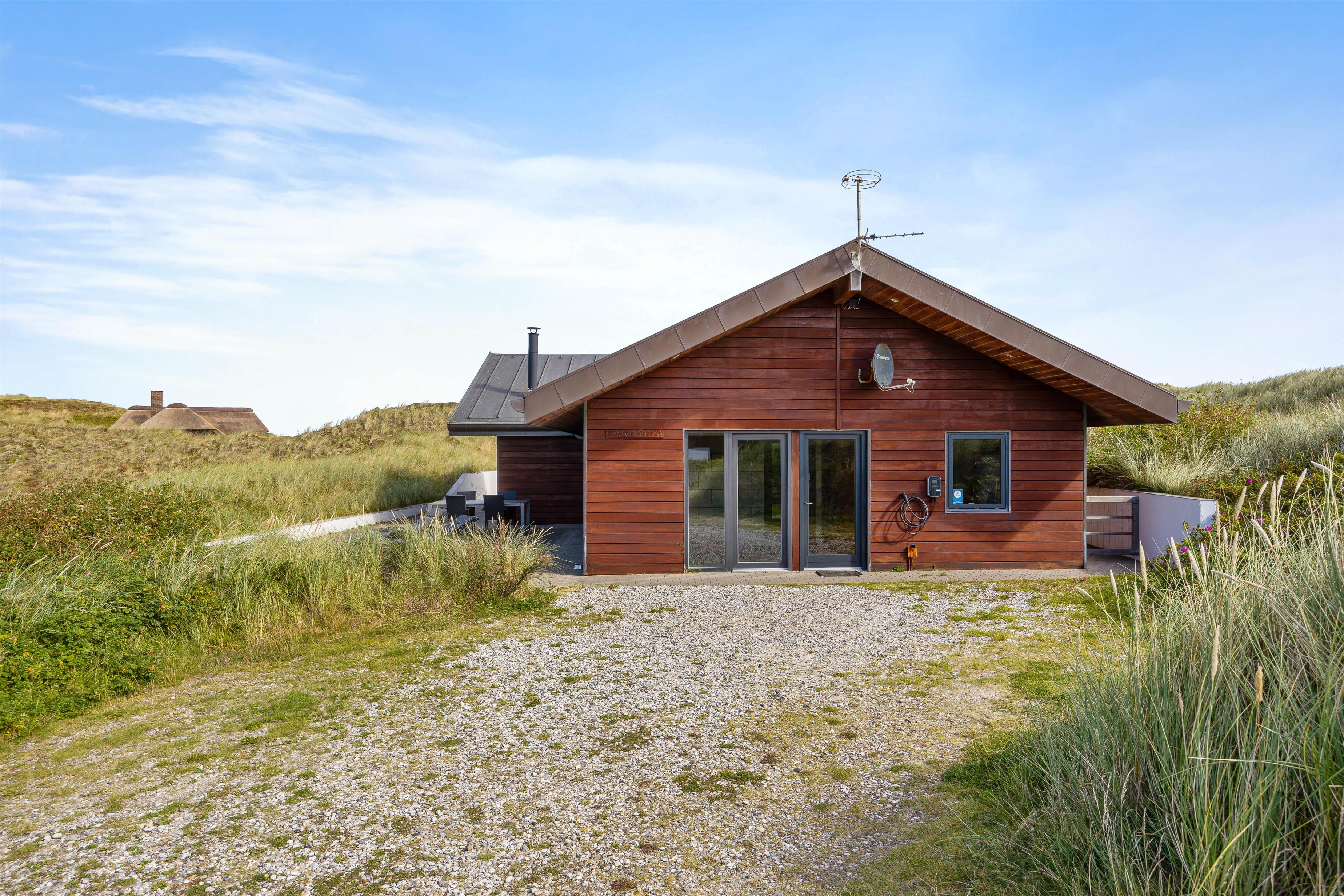 På Sommervej 28 i Skodbjerge byder det hyggelige sommerhus på plads til op til 8 personer, som kan nyde en ferie i nærkontakt med den vestjyske natur og med kun 400 meter til stranden. Hunden er også velkommen. Her er fokus på samvær og velvære, og I får blandt andet adgang til både sauna, spa og udespa, så det er oplagt at nyde vesterhavsferien i fulde drag med indlagte wellnessstunder ind imellem. Bemærk venligst, at katte ikke er tilladt i dette feriehus.