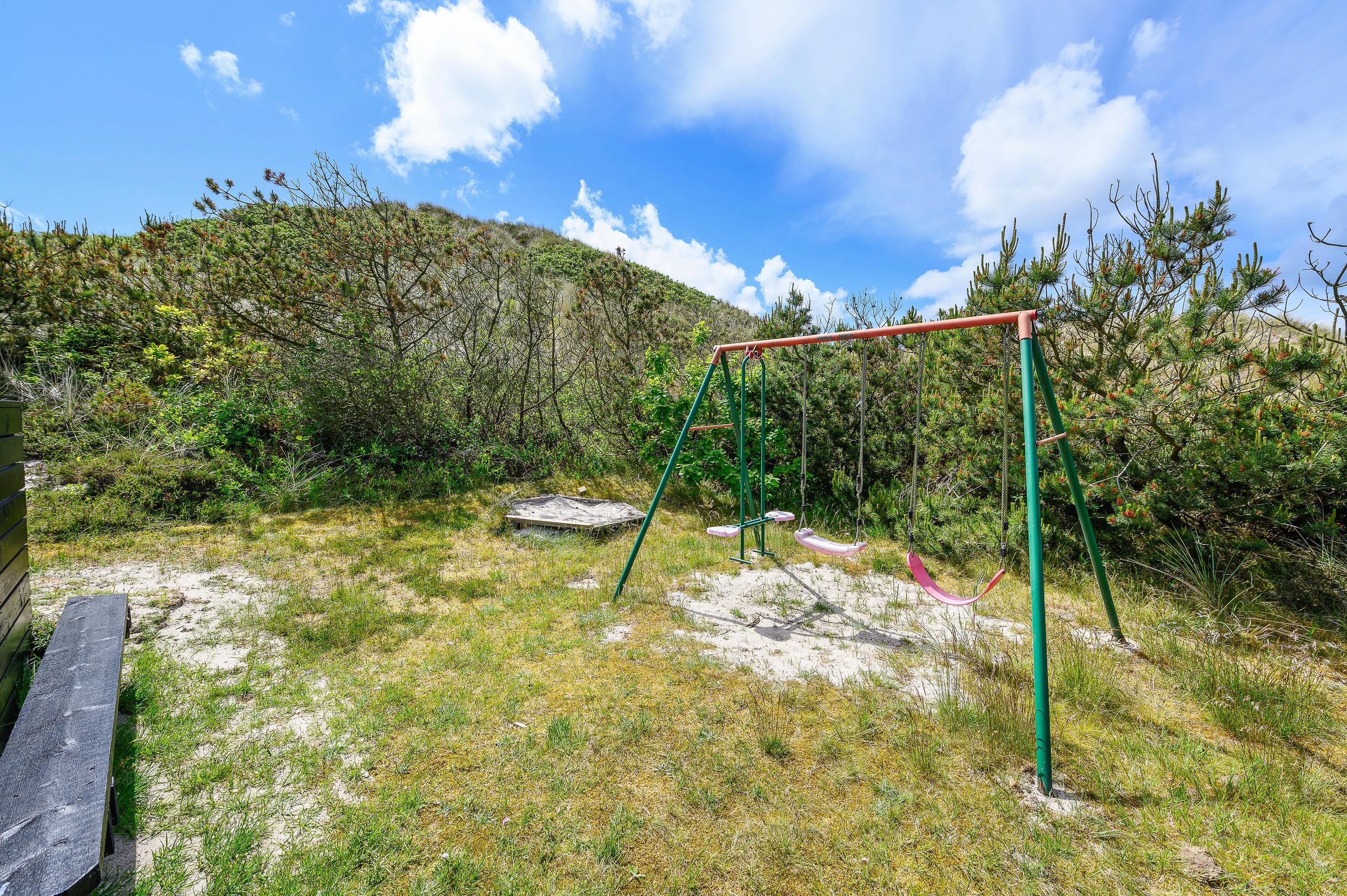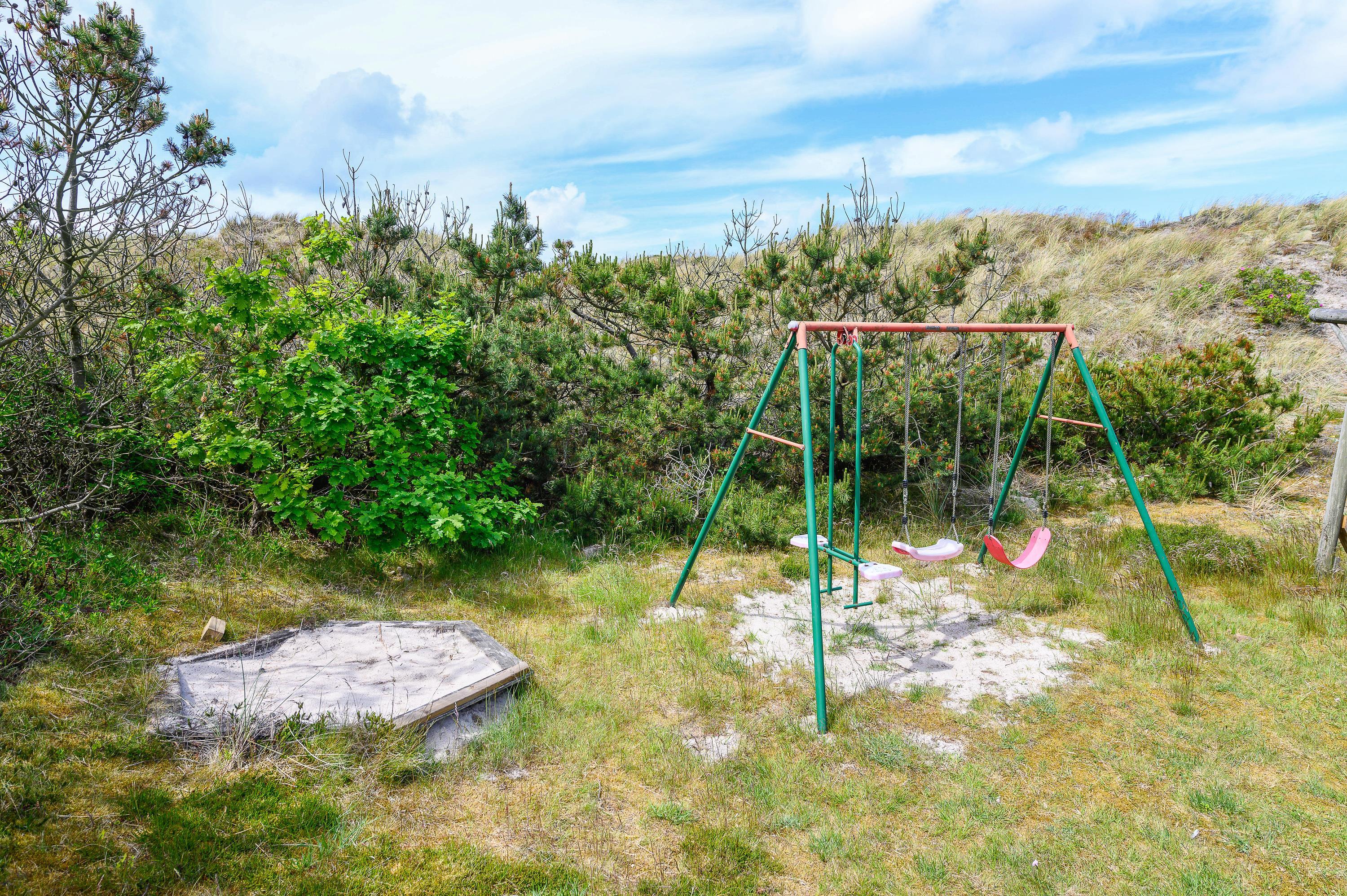 Feriehuset ligger på en dejlig stor naturgrund, hvor børnene har plads til at lege, og du kan nyde ferien i fred og ro. Sæt jer i de lækre havemøbler med en kop hjemmelavet kaffe og kig på børnene, som leger på naturgrunden. Lige ved siden af gyngerne befinder skuret sig - her kan I opbevare jeres medbragte cykler.